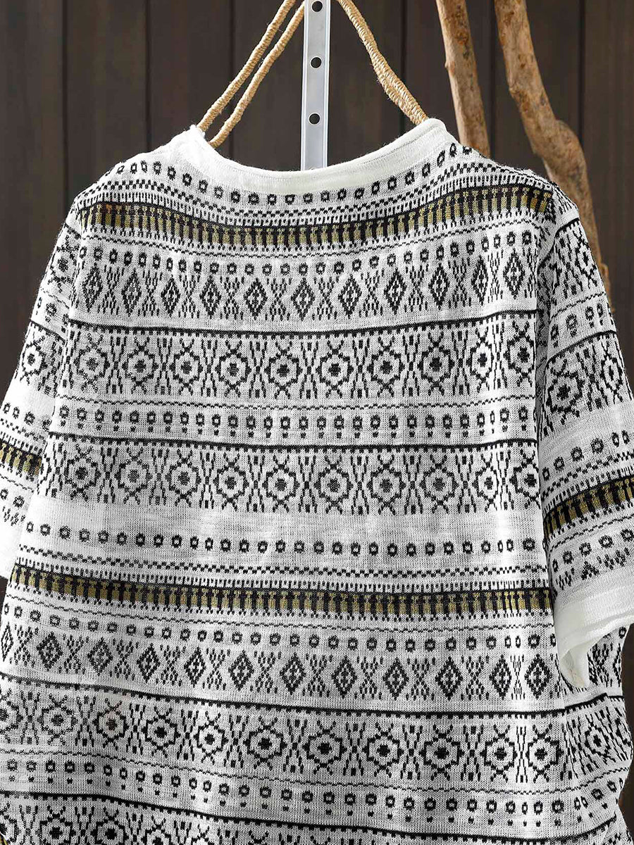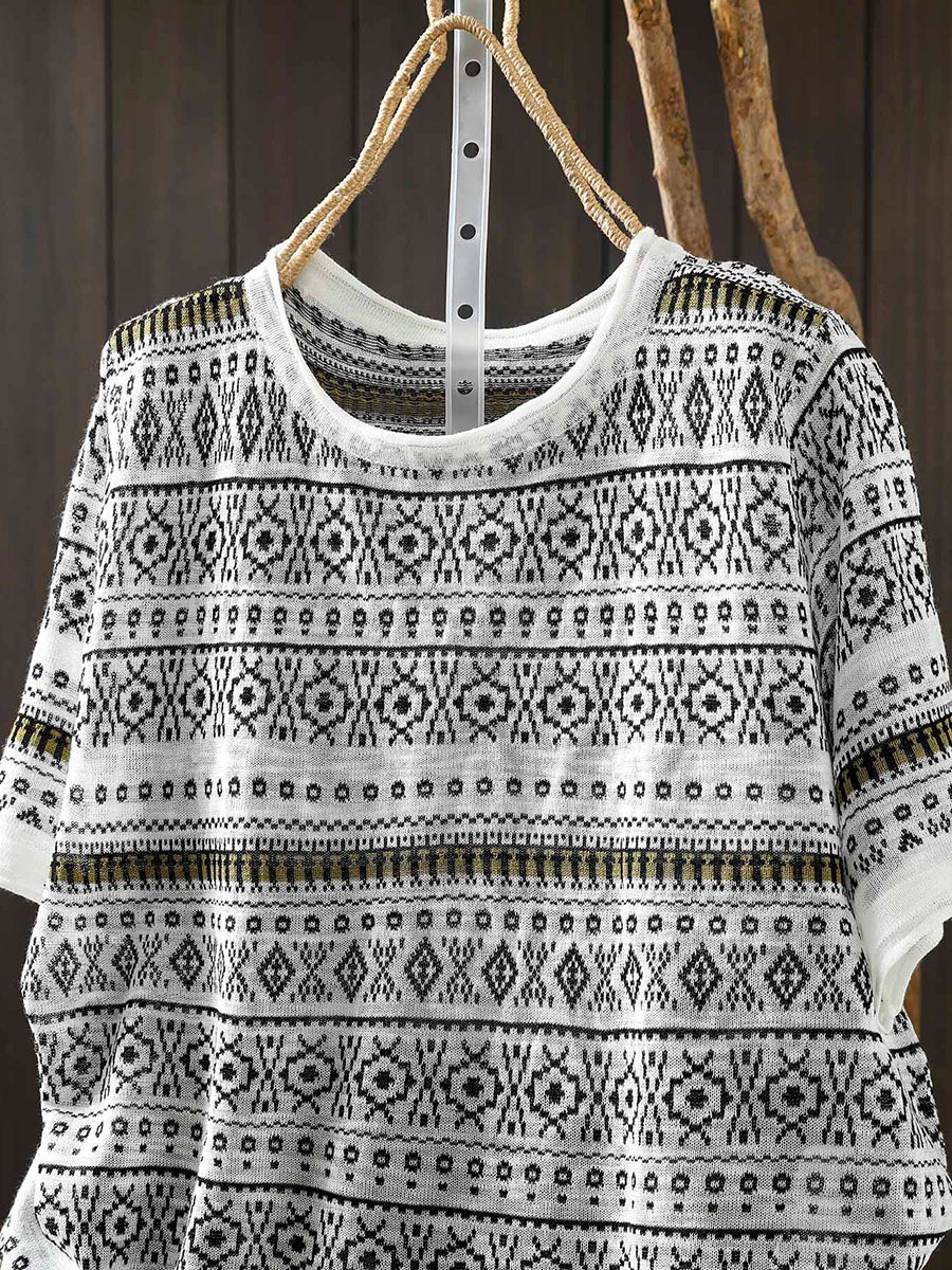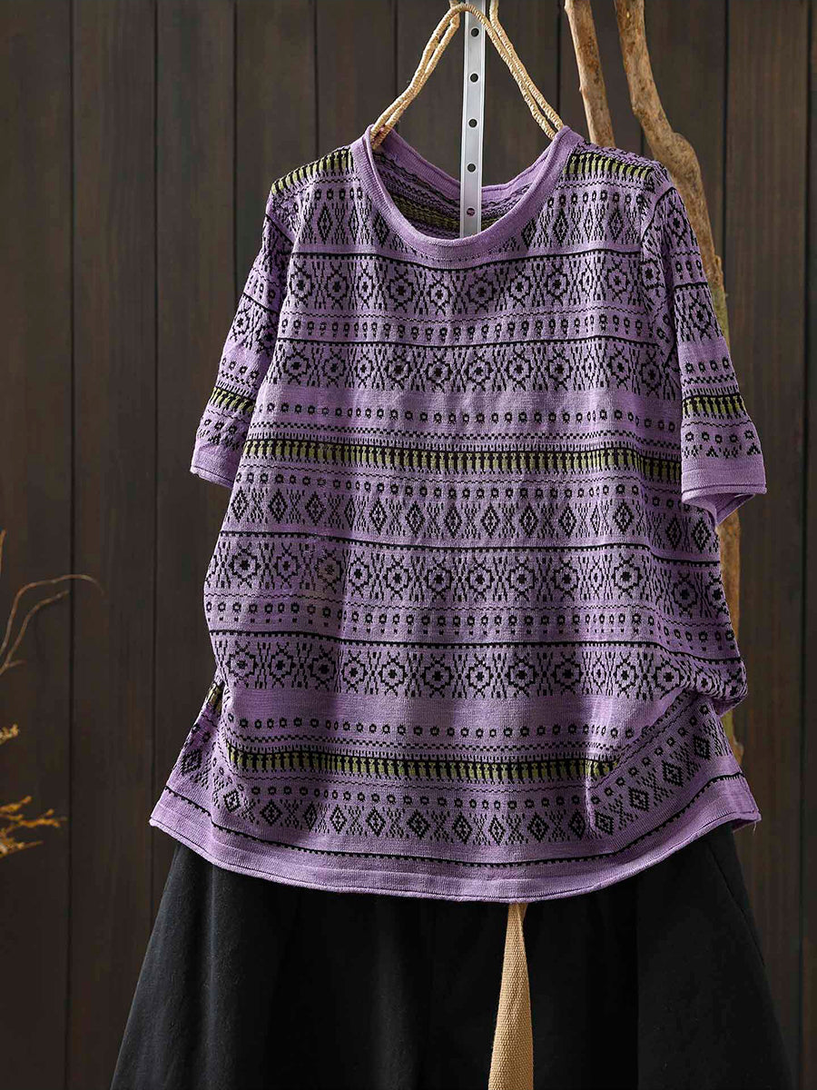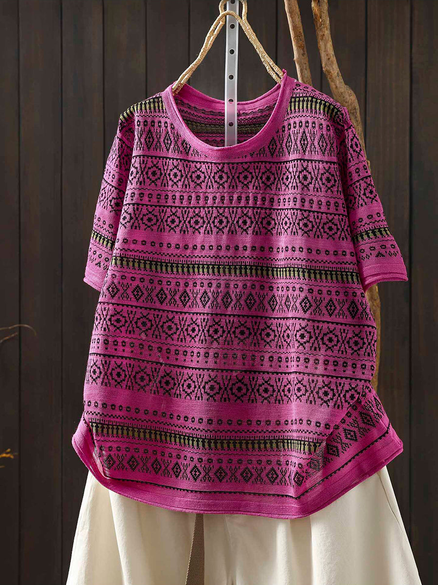 Women Summer Artsy Jacquard O-Neck T-Shirt