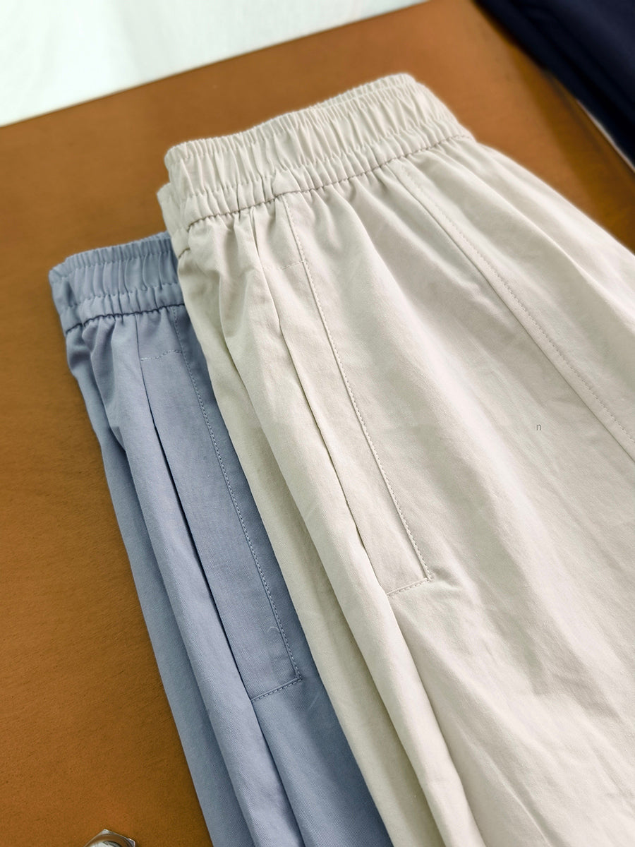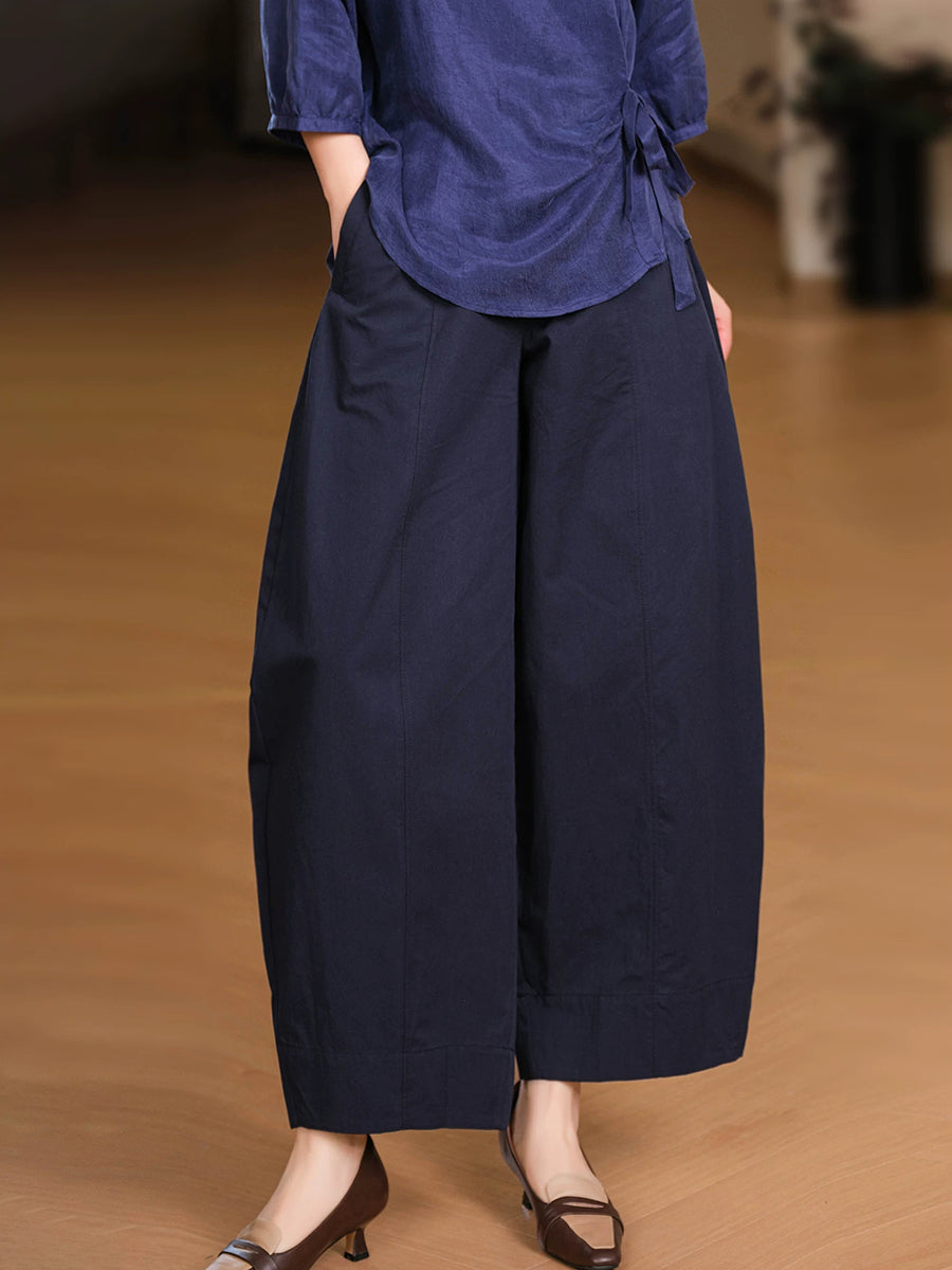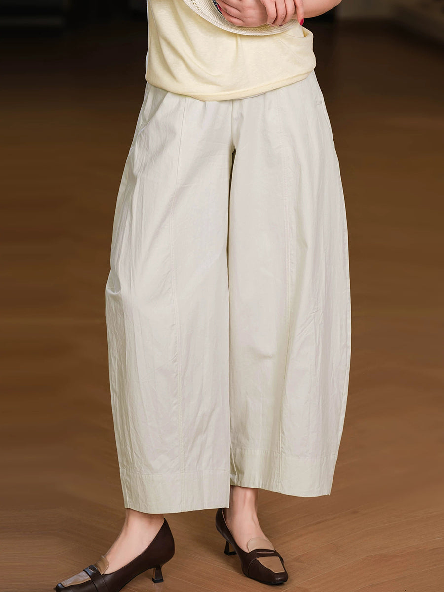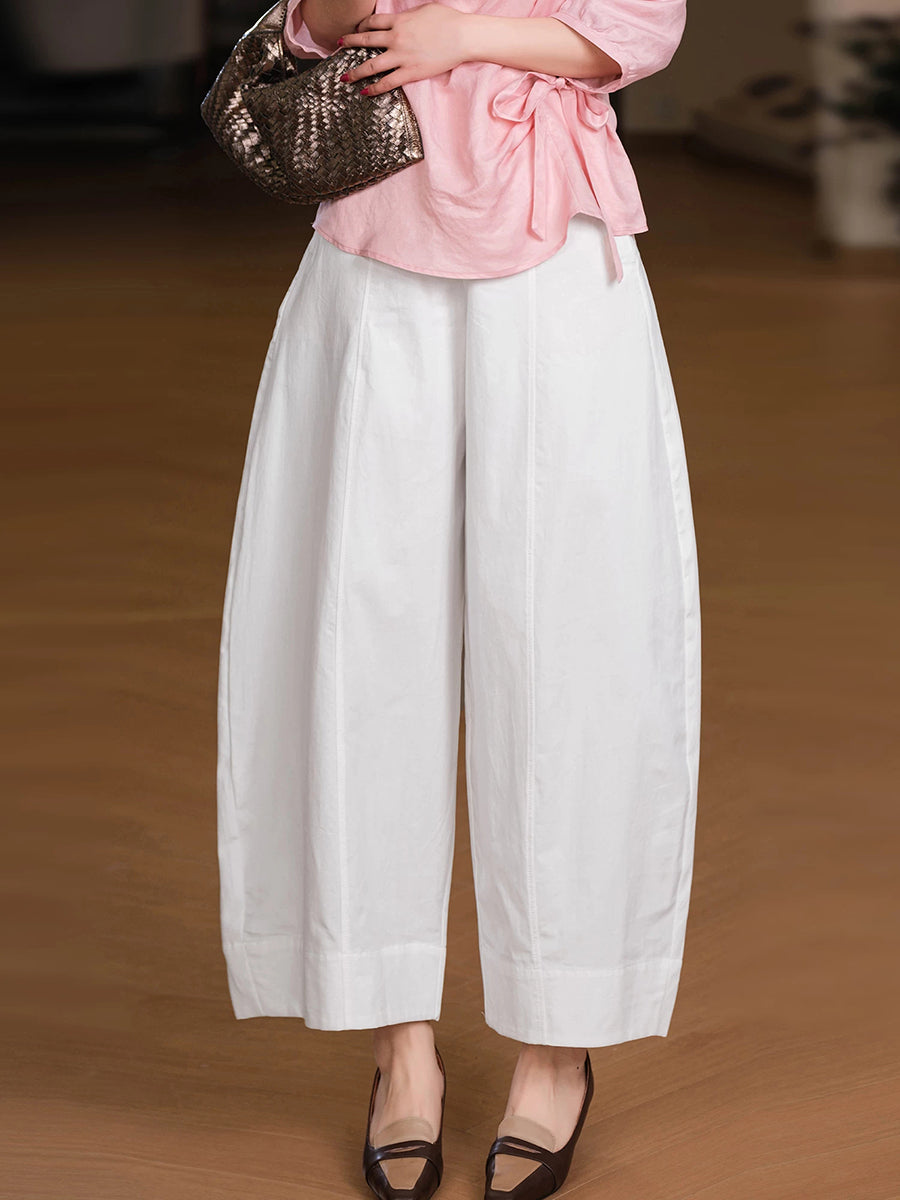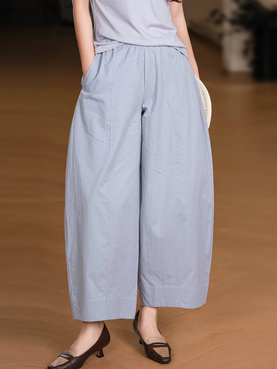 Women Summer Casual Pure Color 100%Cotton Wide-leg Pants