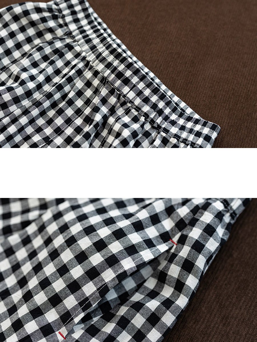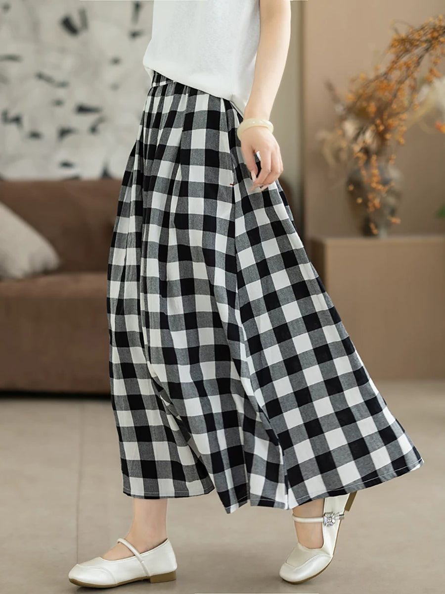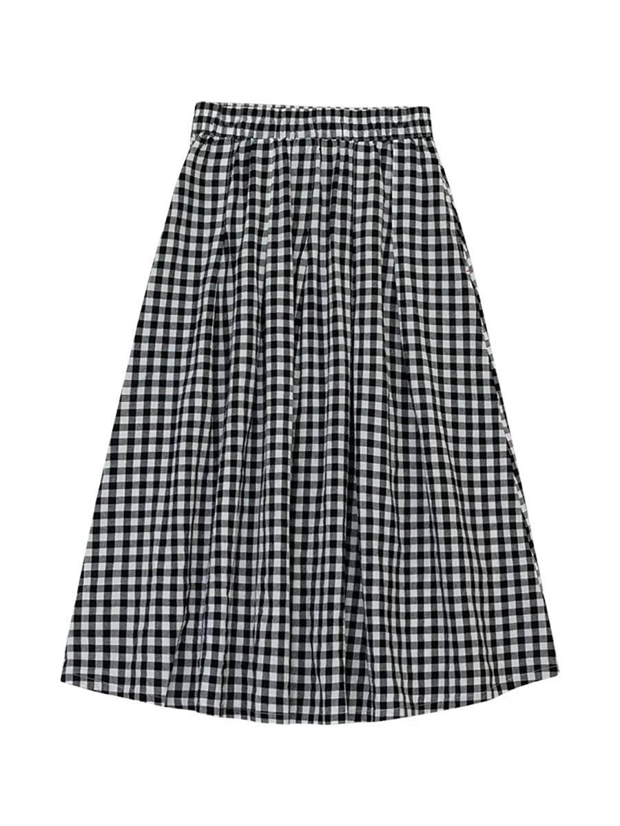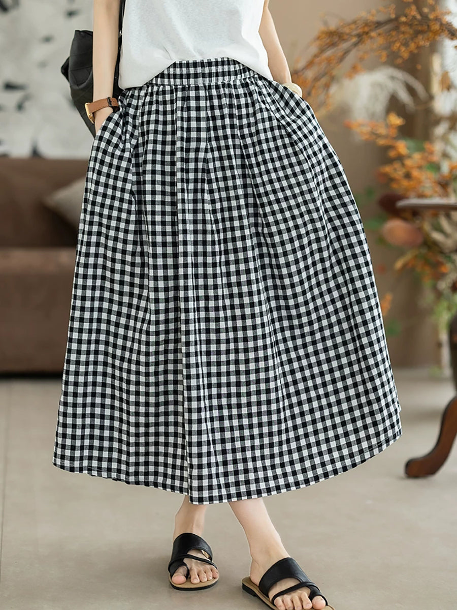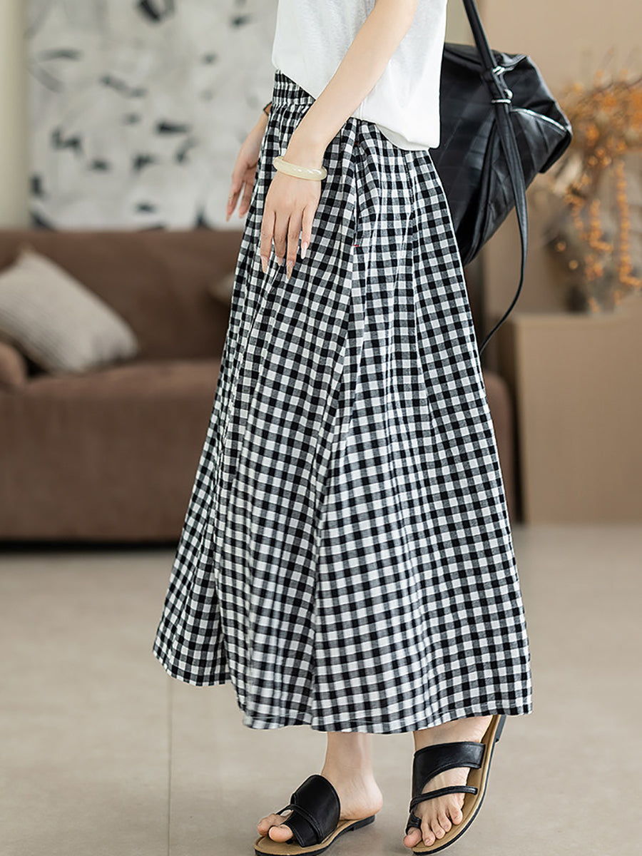 Women Summer Retro Plaid A-Shape 100%Cotton Skirt