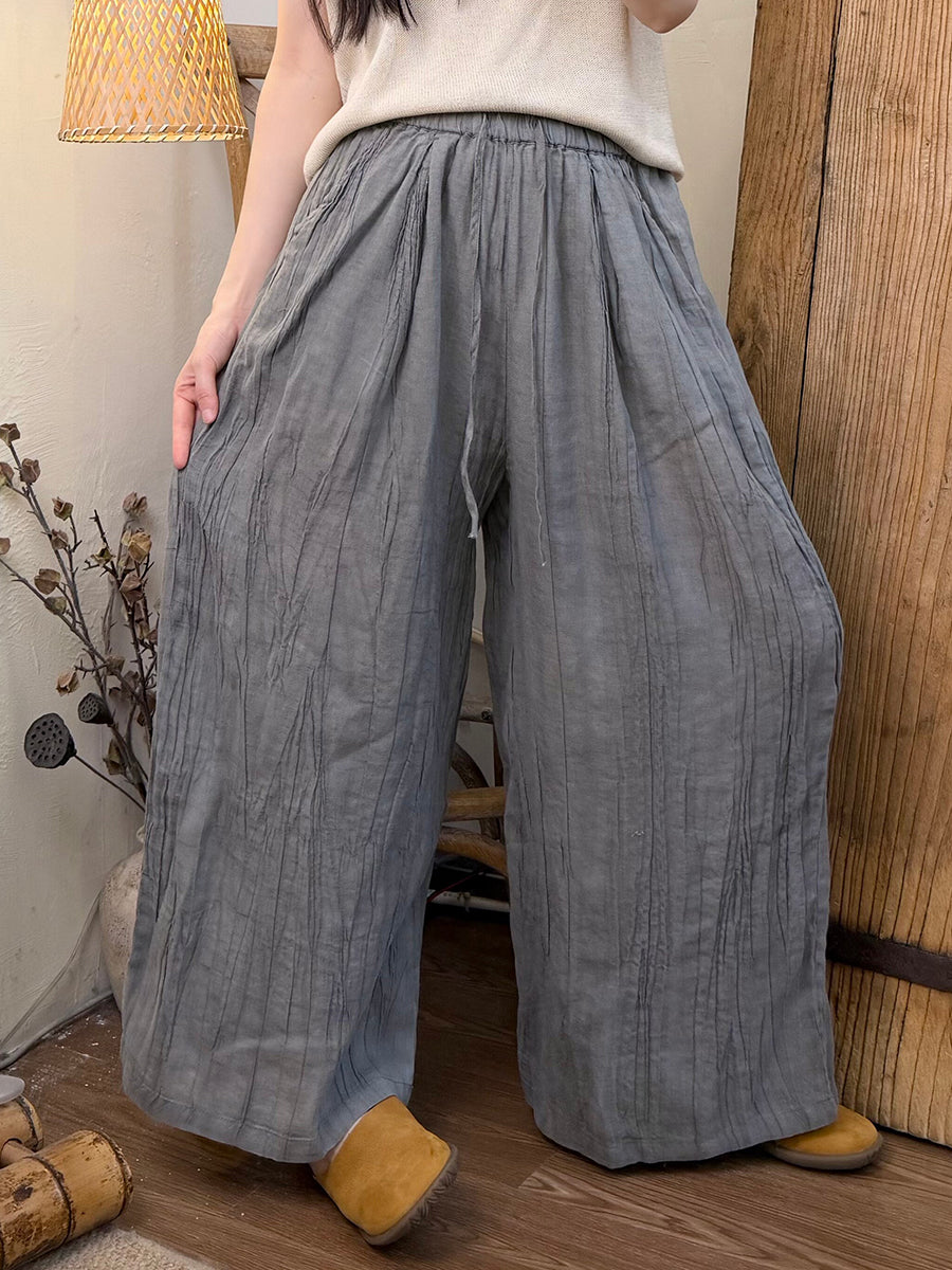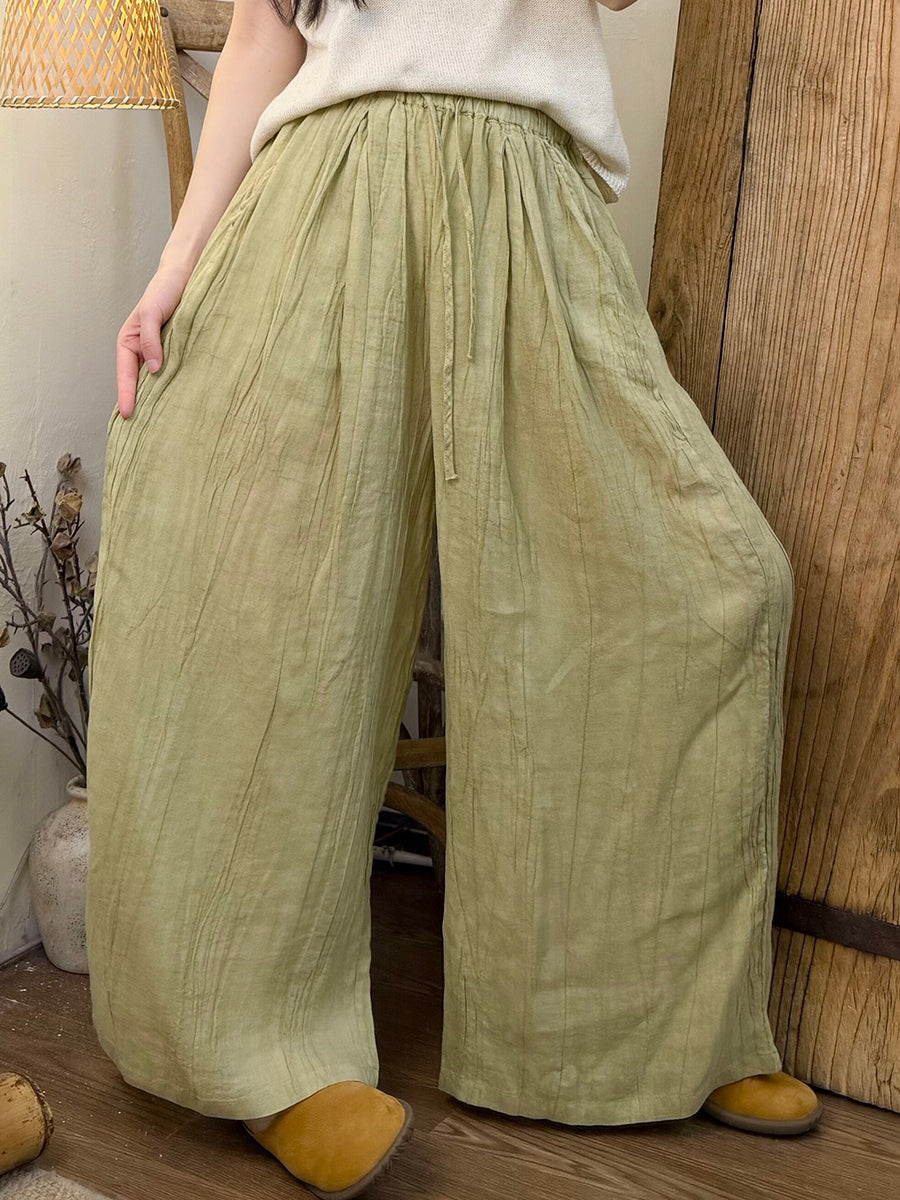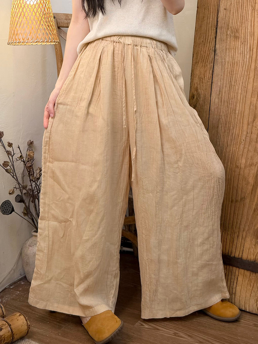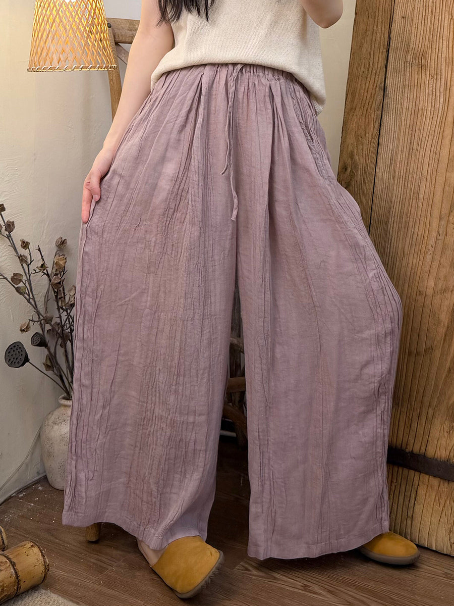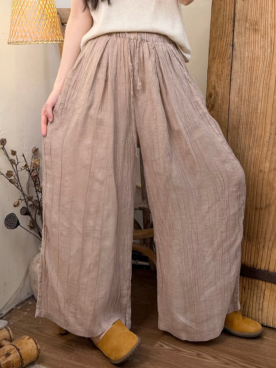 Women Summer Retro Pure Color Ramie Straight Pants