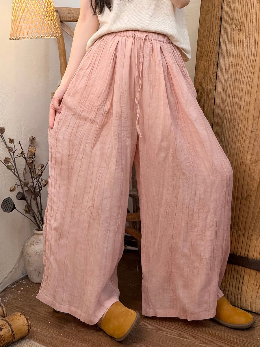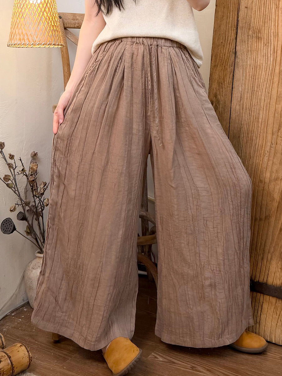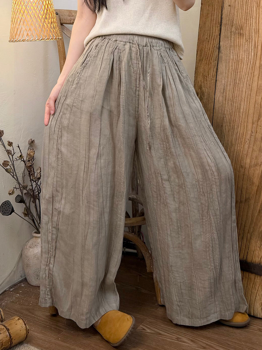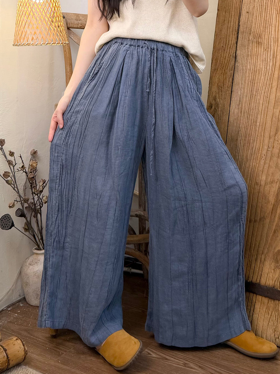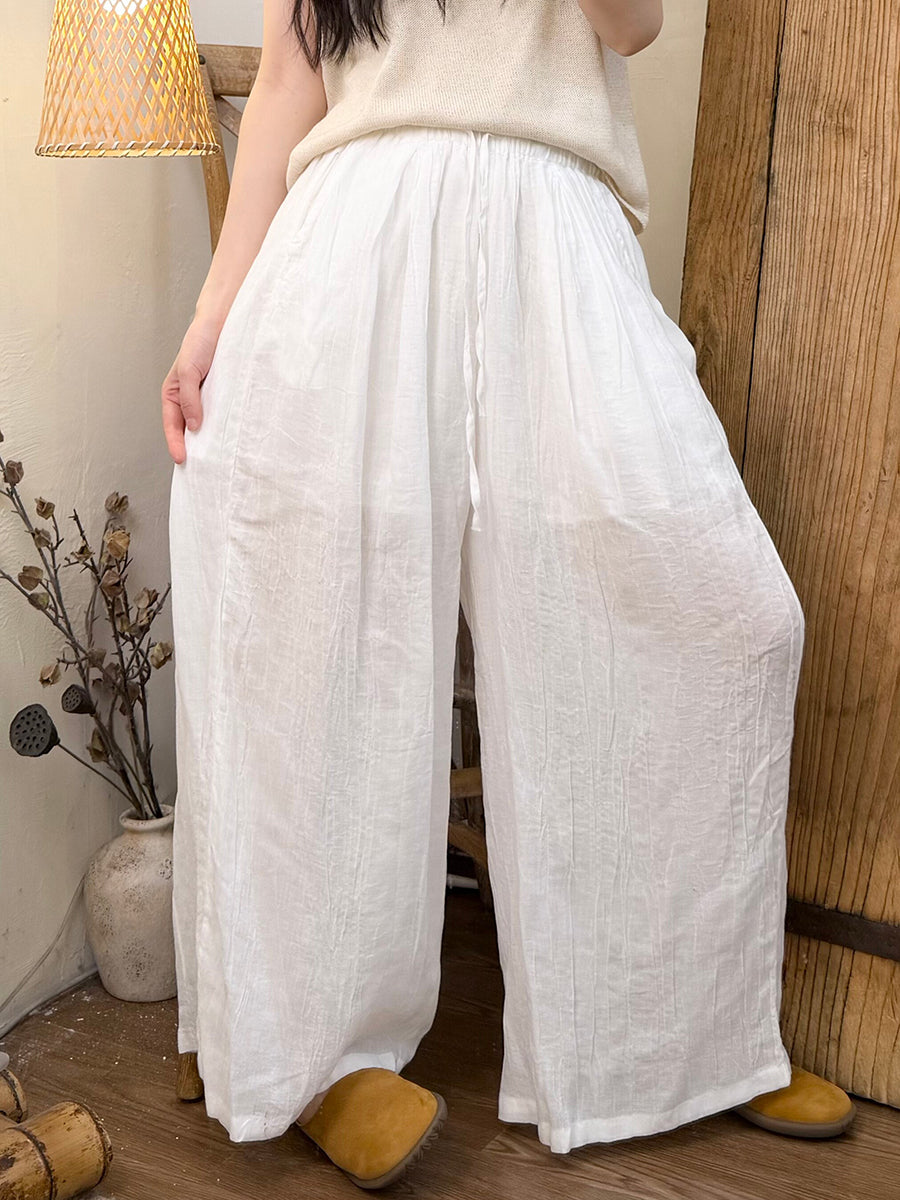 Women Summer Retro Pure Color Ramie Straight Pants