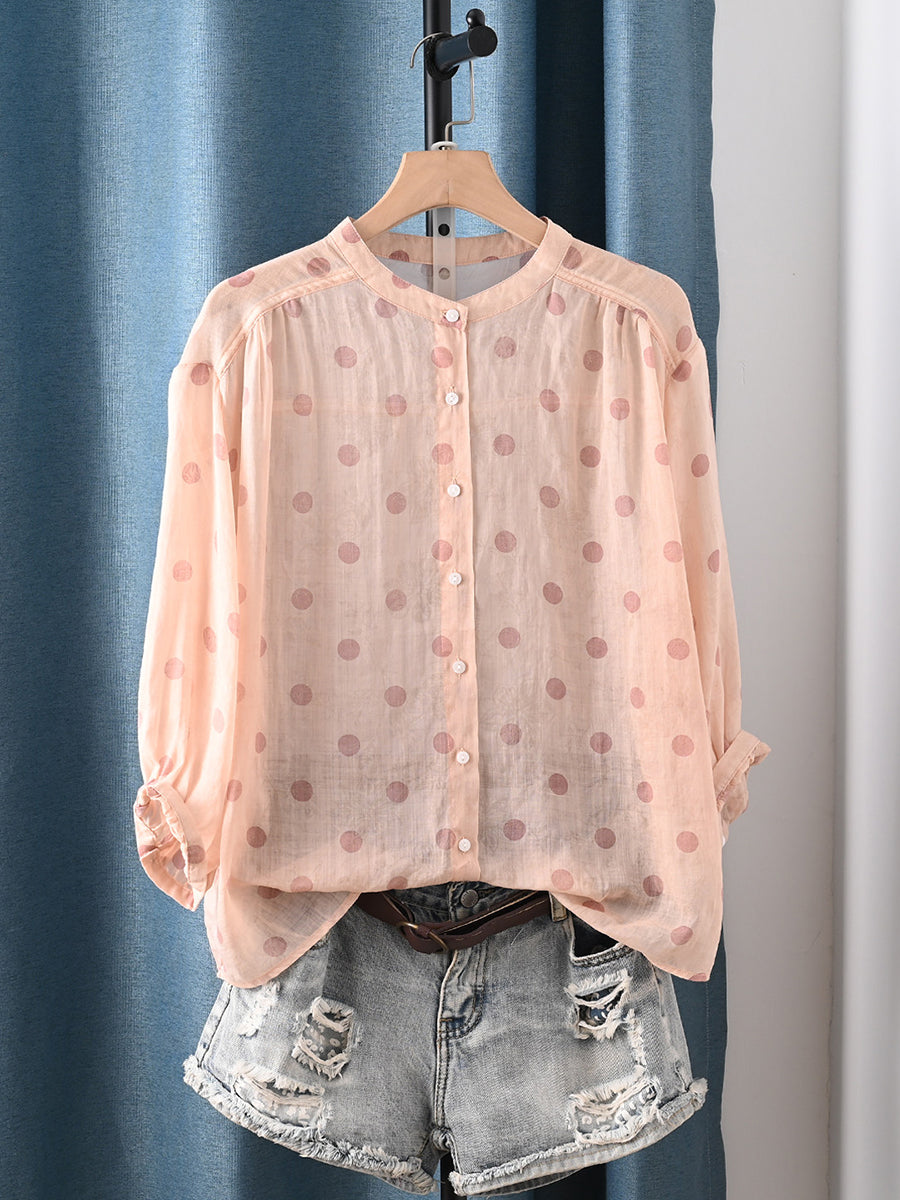 Women Summer Artsy Dot 100%Ramie O-Neck Blouse