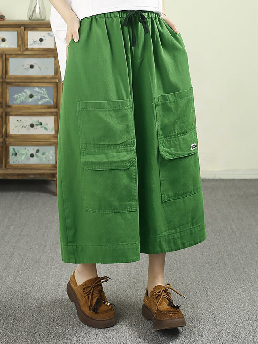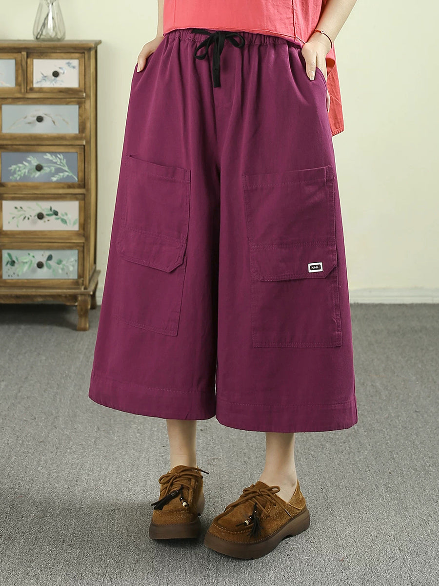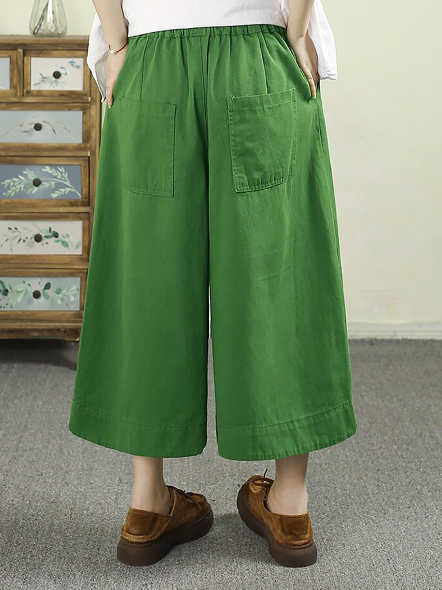 Women Summer Casual Pure Color Cotton Wide-leg Pants