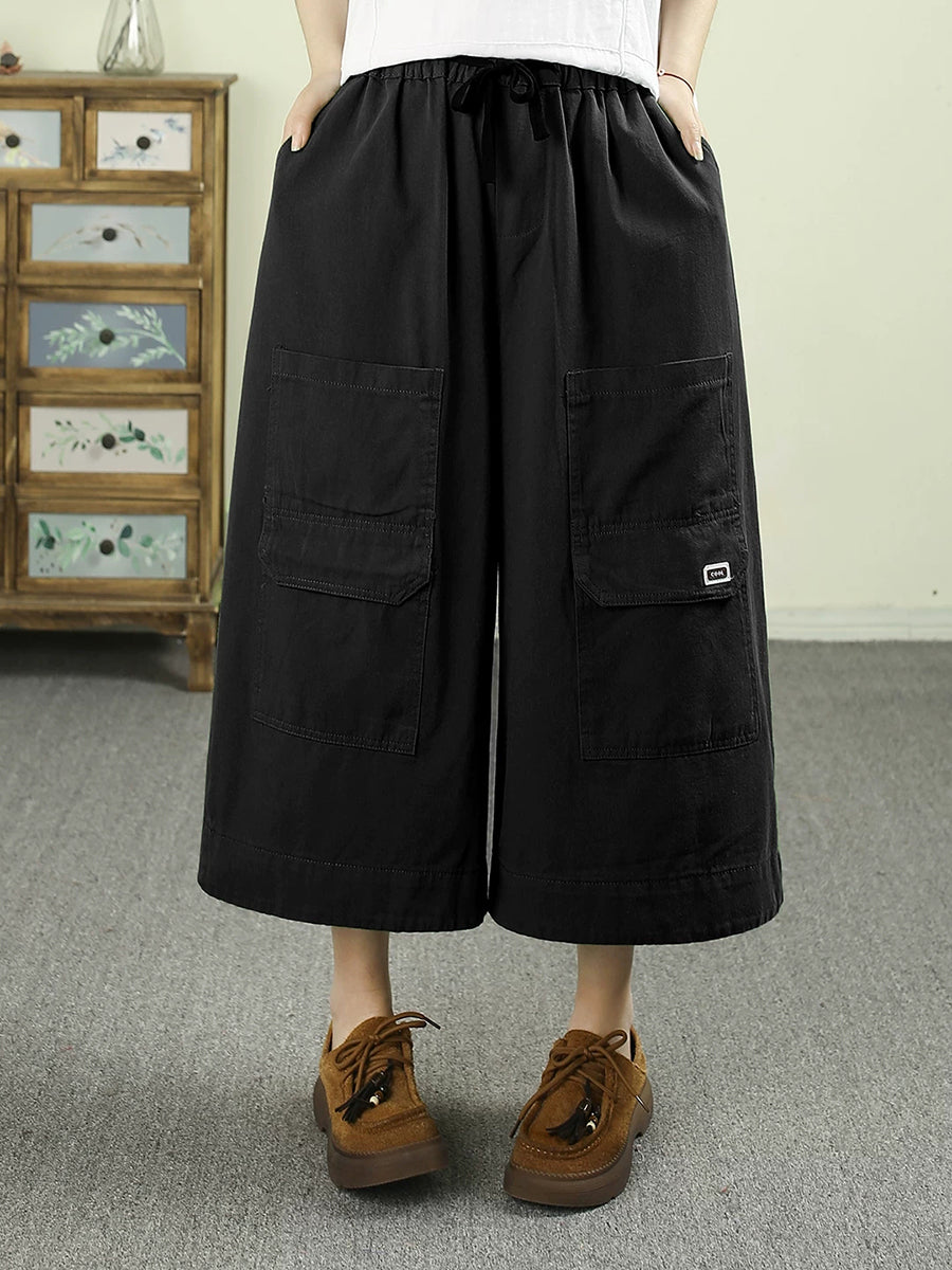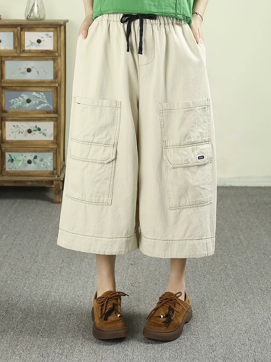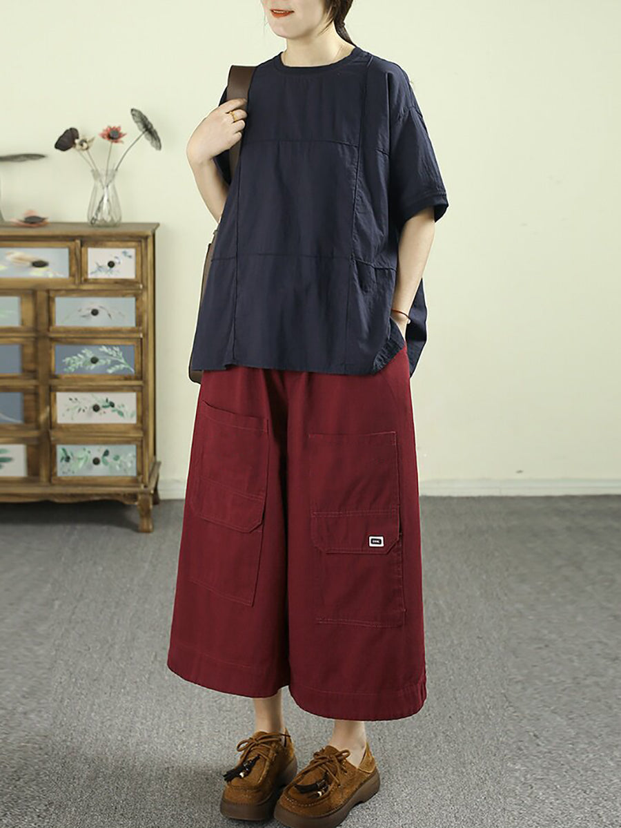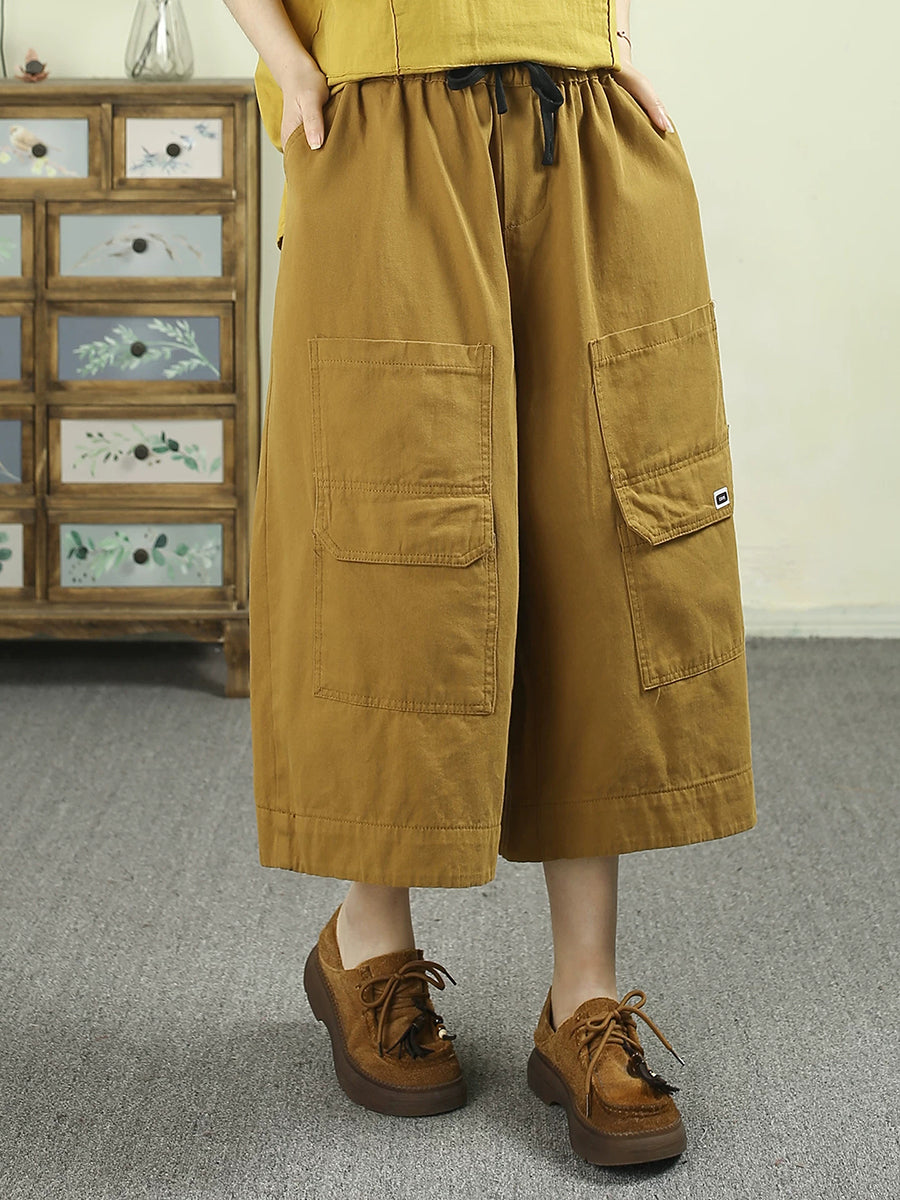 Women Summer Casual Pure Color Cotton Wide-leg Pants