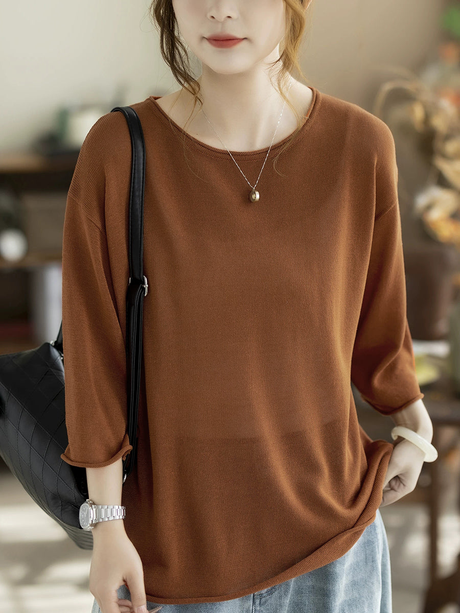 Women Summer Casual Pure Color Knitted Blouse