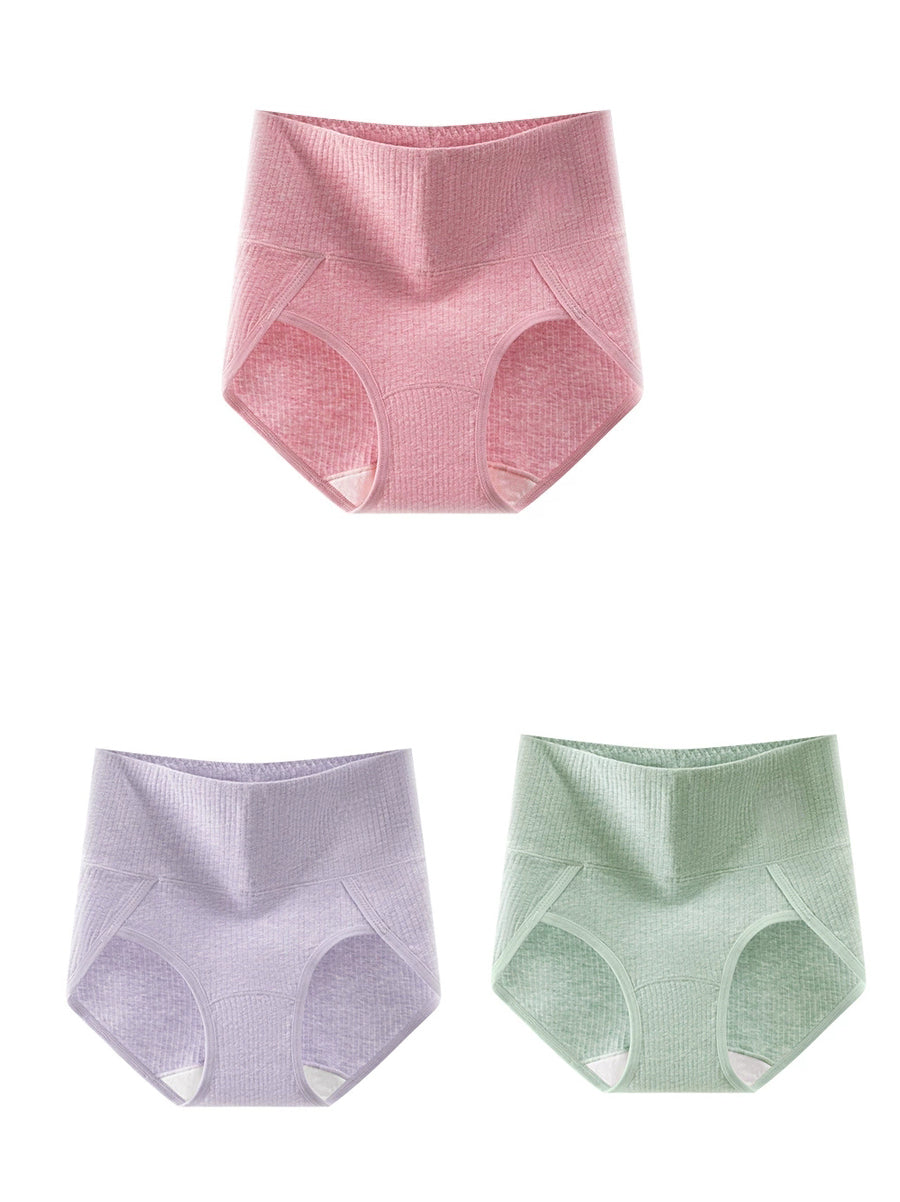3 Pieces Women Artsy Pure Color High Waist Underwear