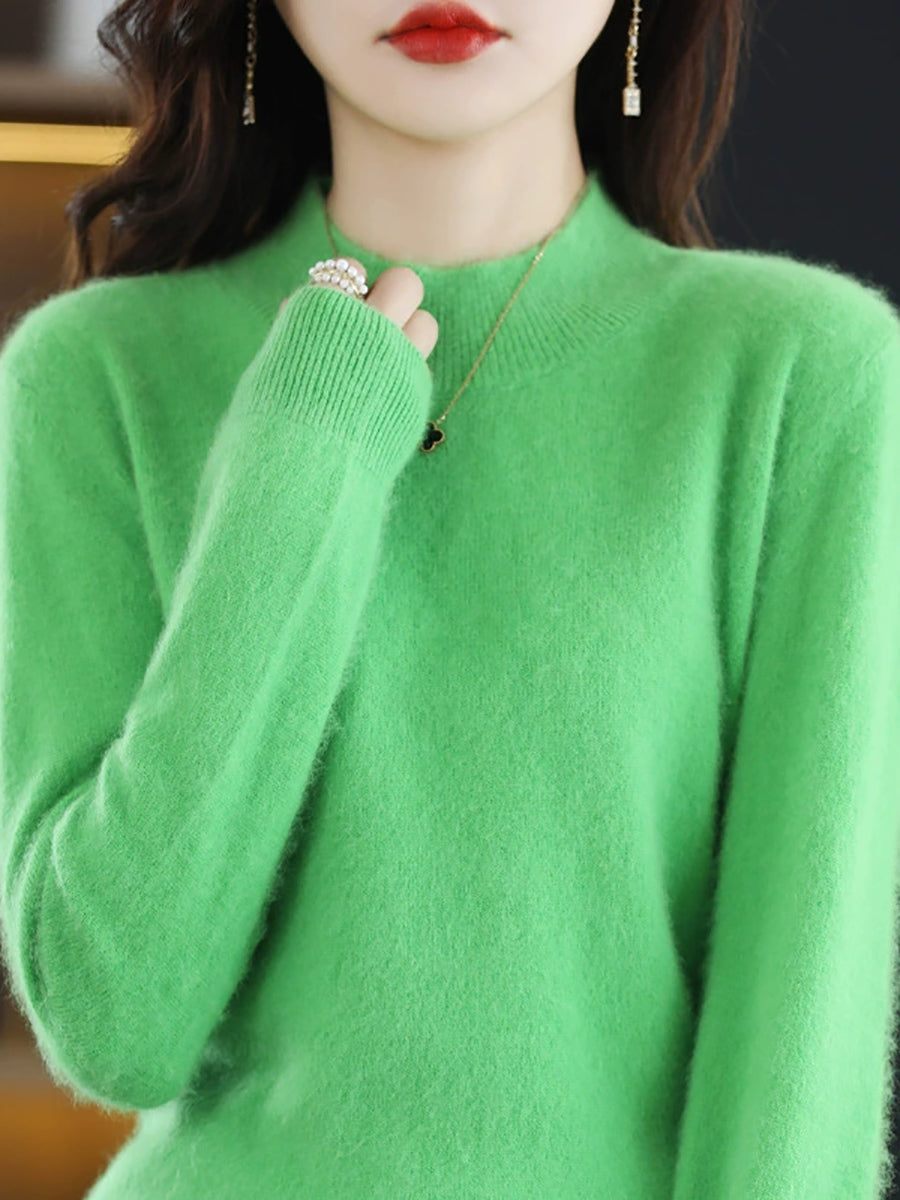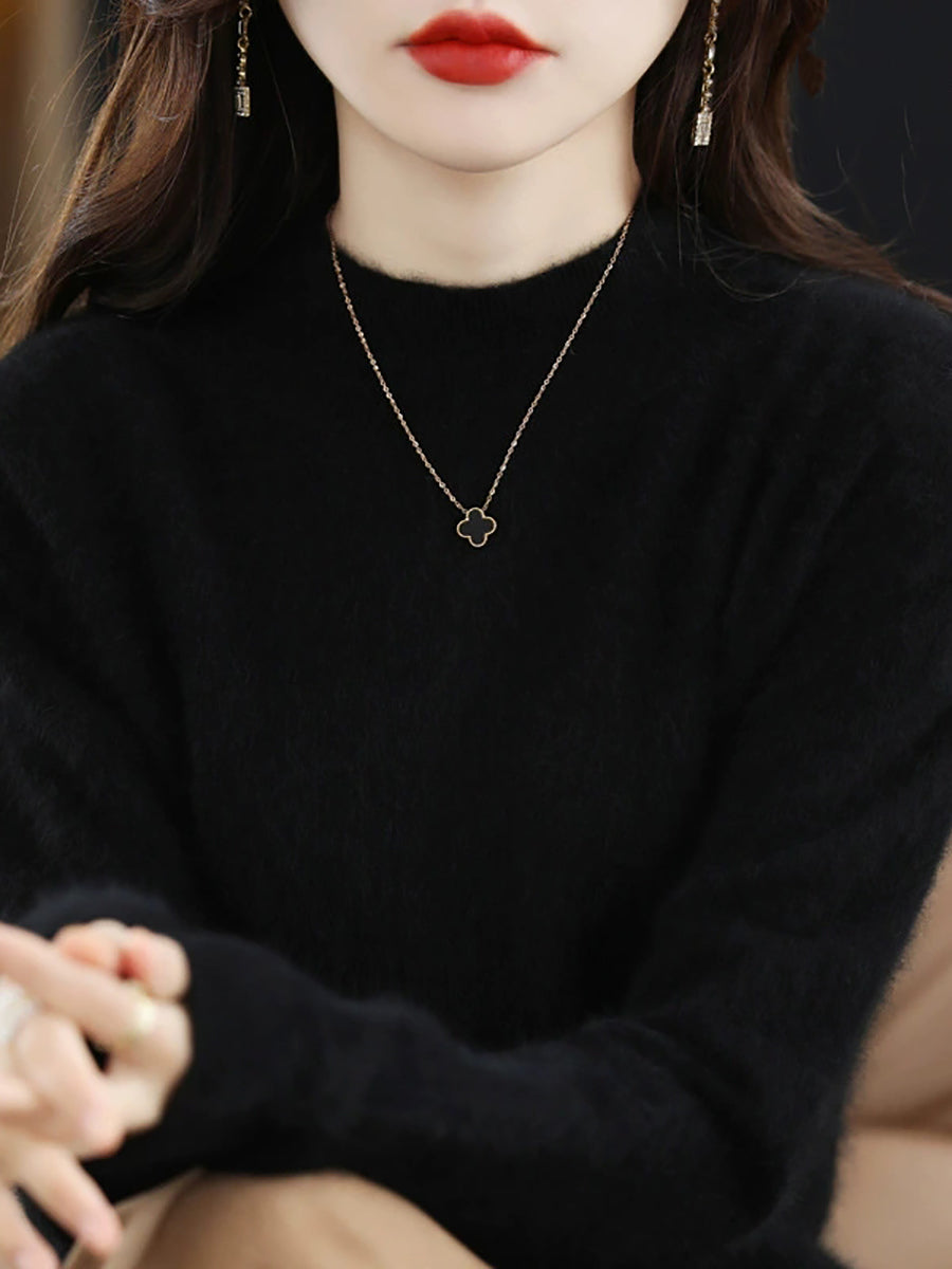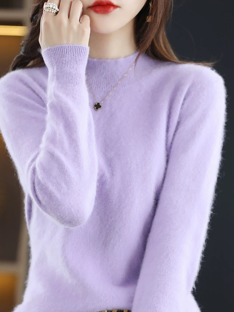Women Casual Spring Pure Color Half-turtleneck Sweater