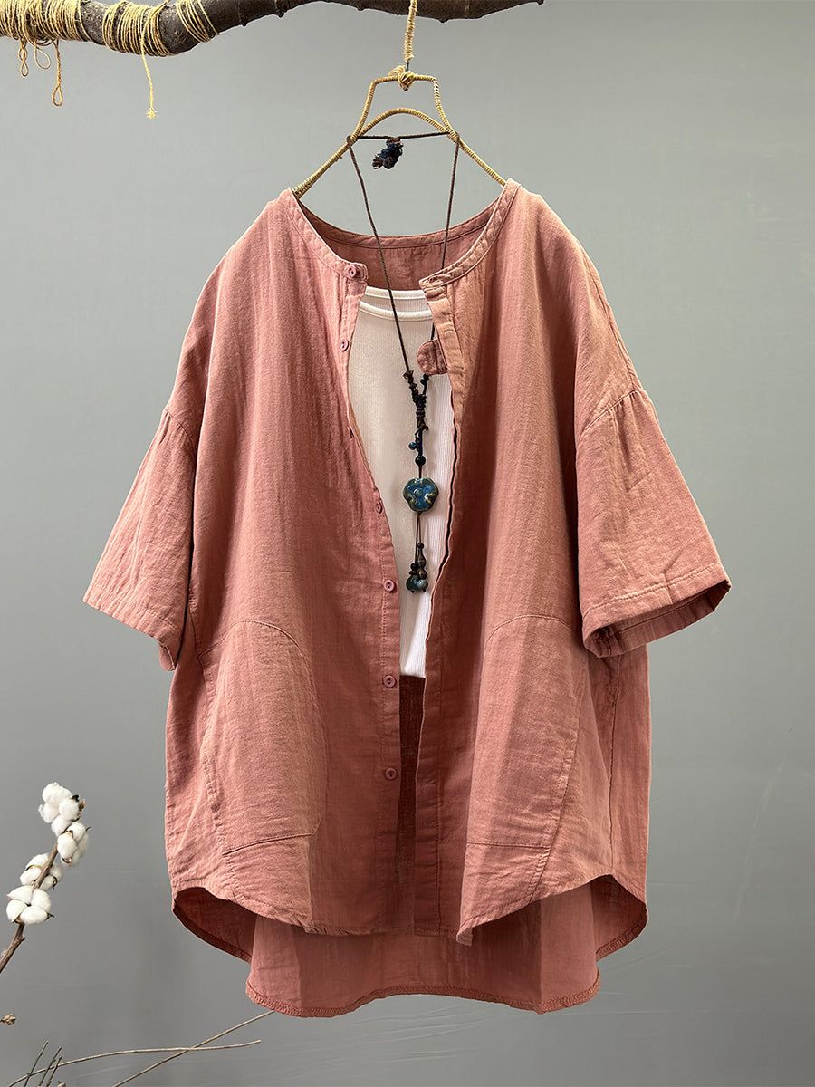 Women Summer Casual Pure Color 100%Cotton Shirt
