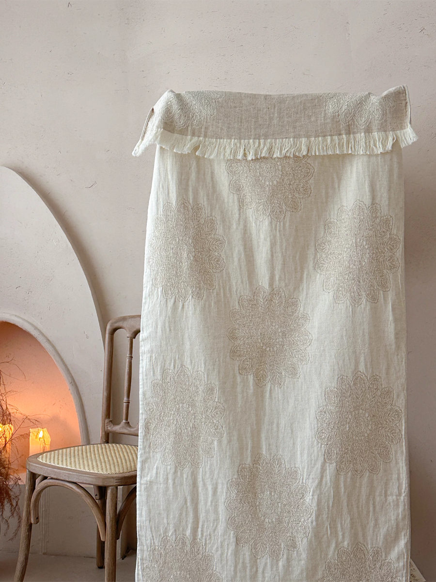 Floral Jacquard Tassel Linen Bath Towel