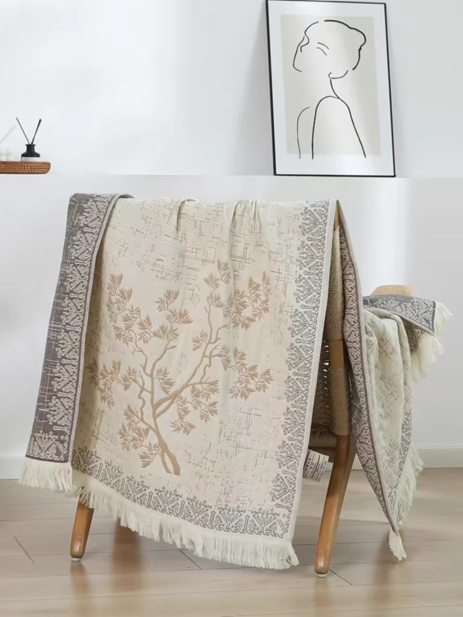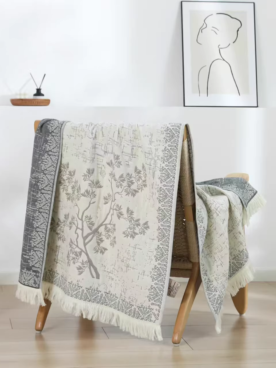 Jade Forest Jacquard Tassel Hemp Bath Towel