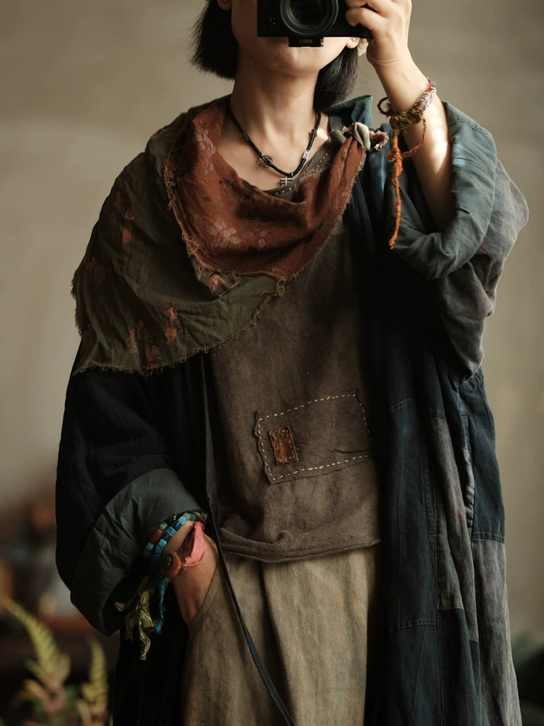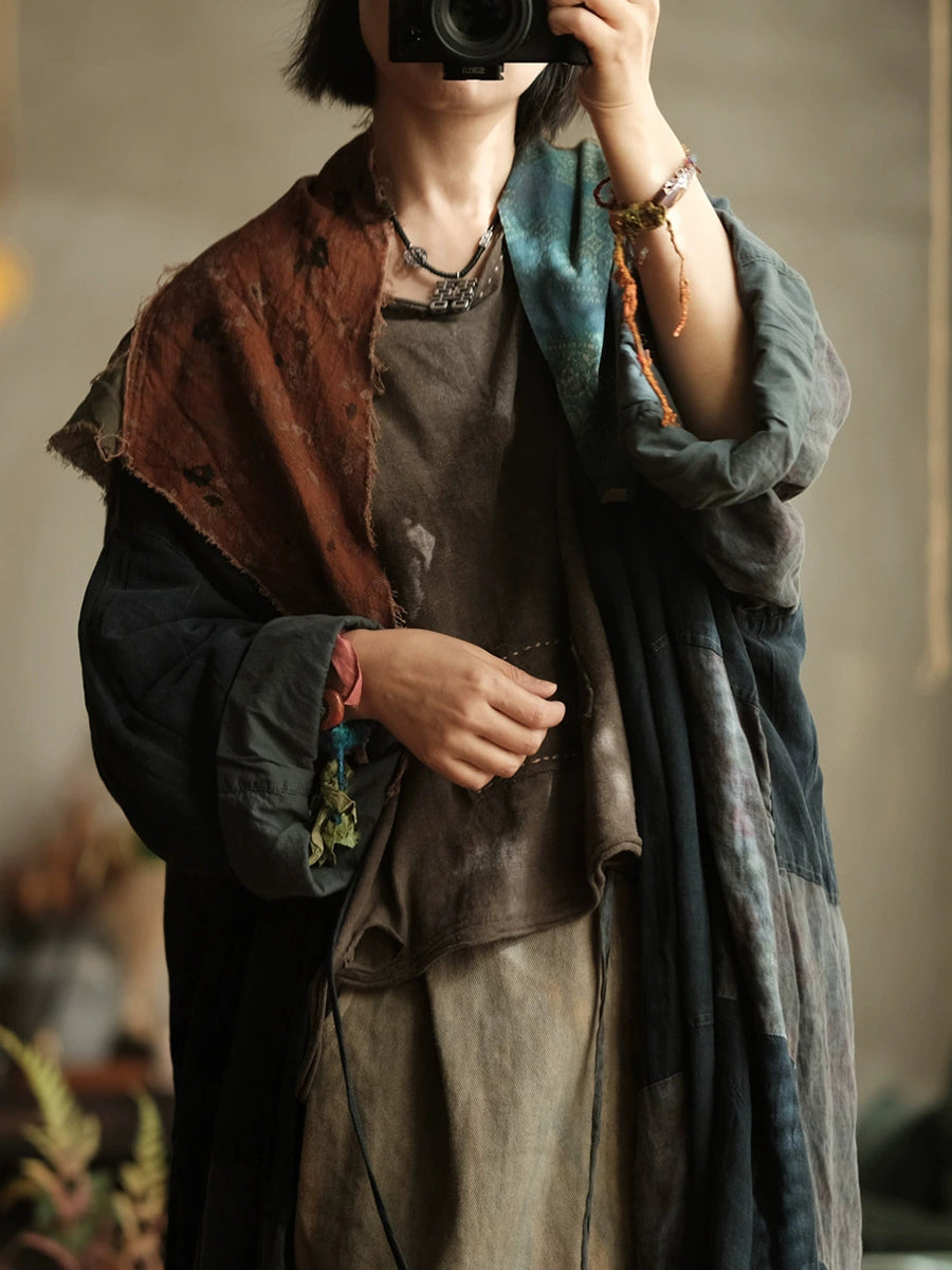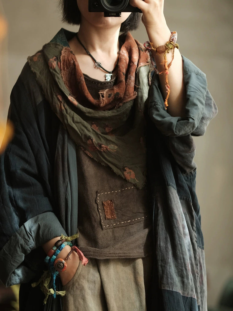 Women Ethnic Flower Spliced Triangle Scarf