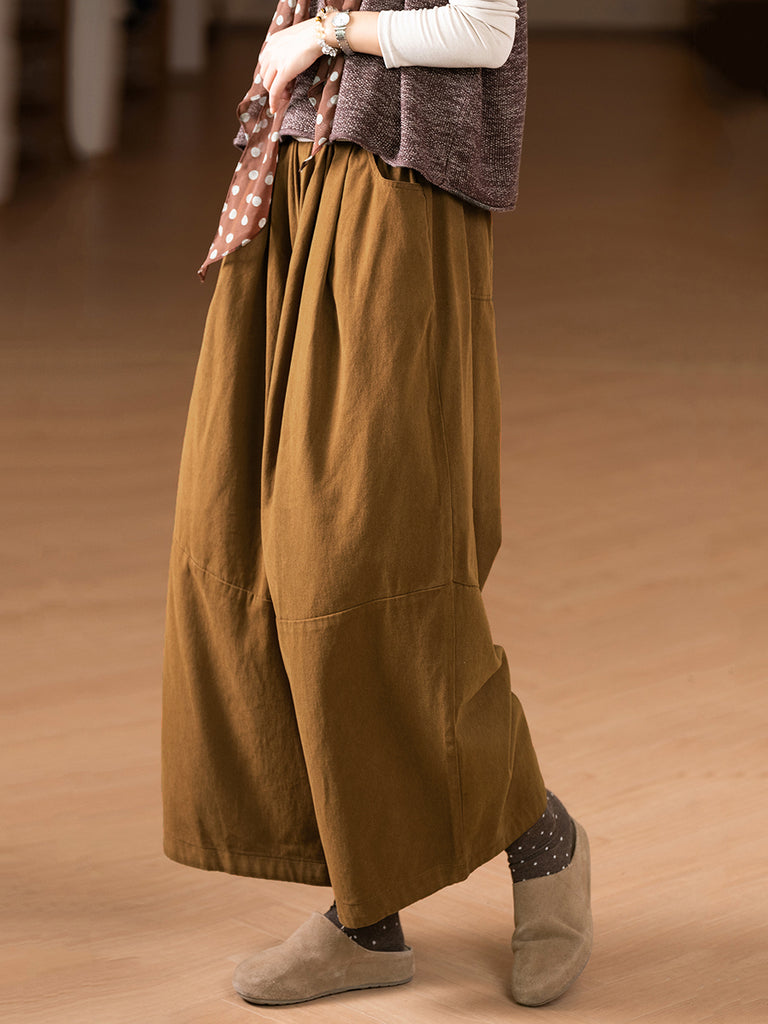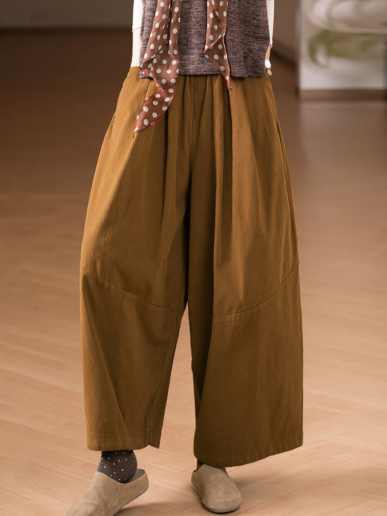 Women Autumn Casual Pure Color 100%Cotton Wide-leg Pants