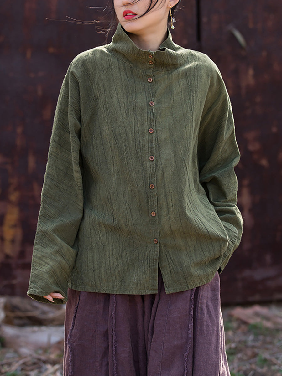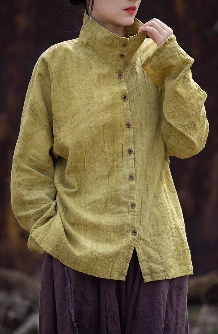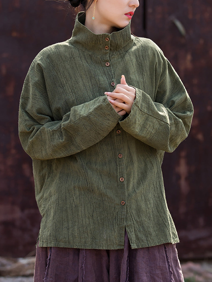 Women Spring Artsy Tie-dye Stand Collar Shirt