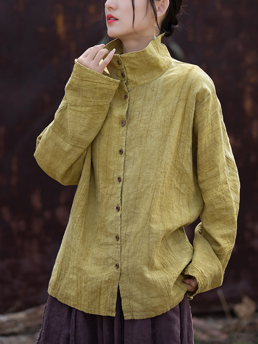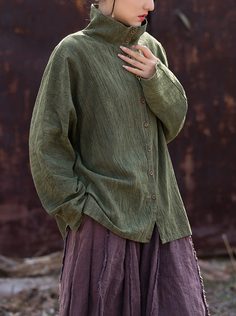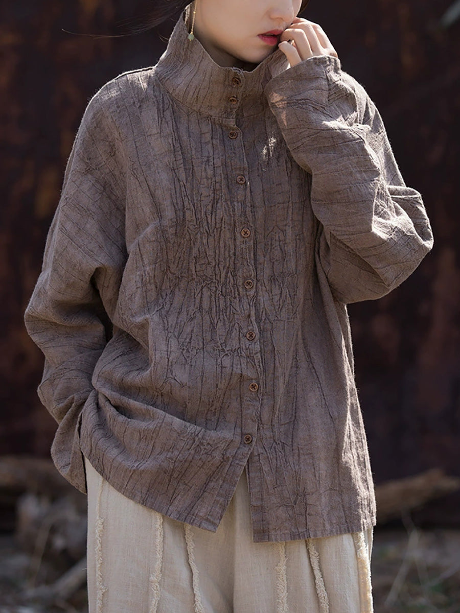 Women Spring Artsy Tie-dye Stand Collar Shirt