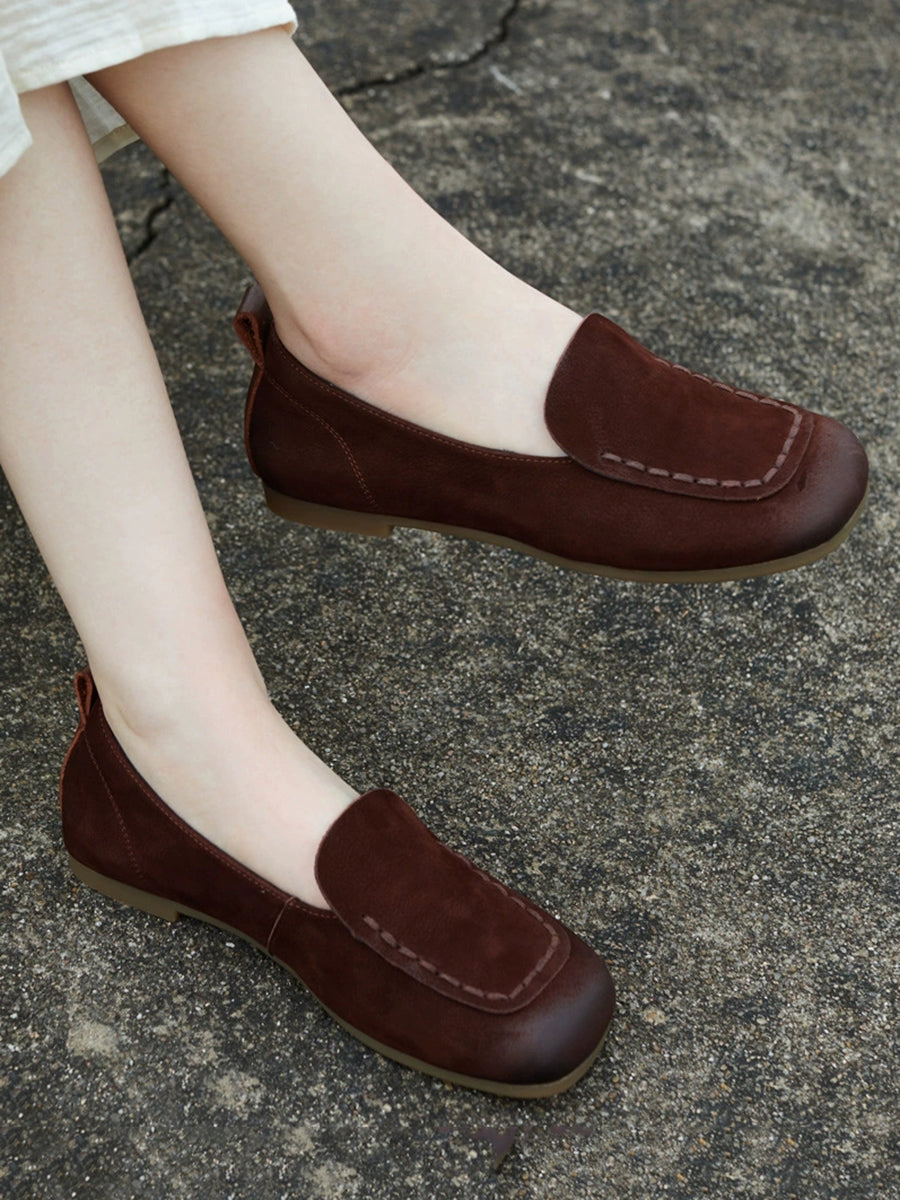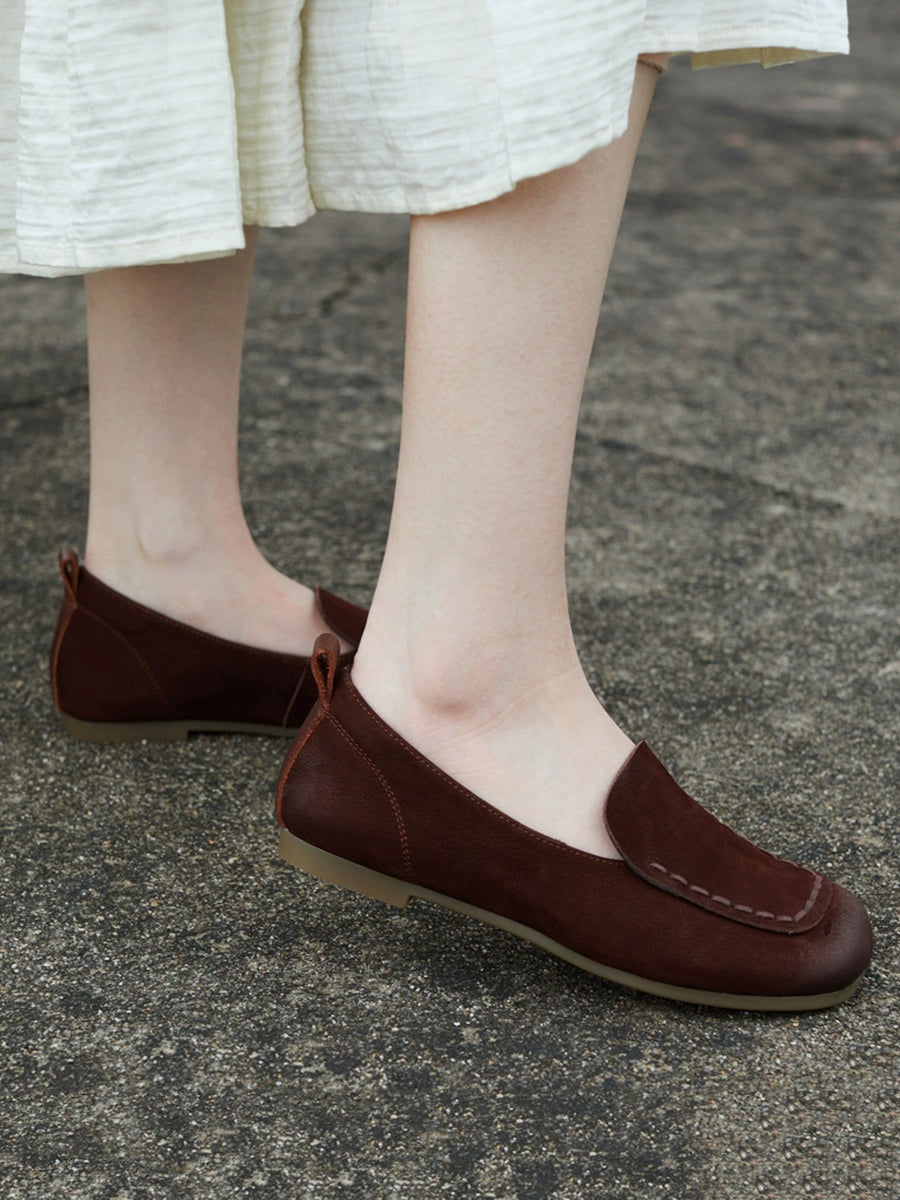 Women Spring Genuine Leather Square-Toe Shoes