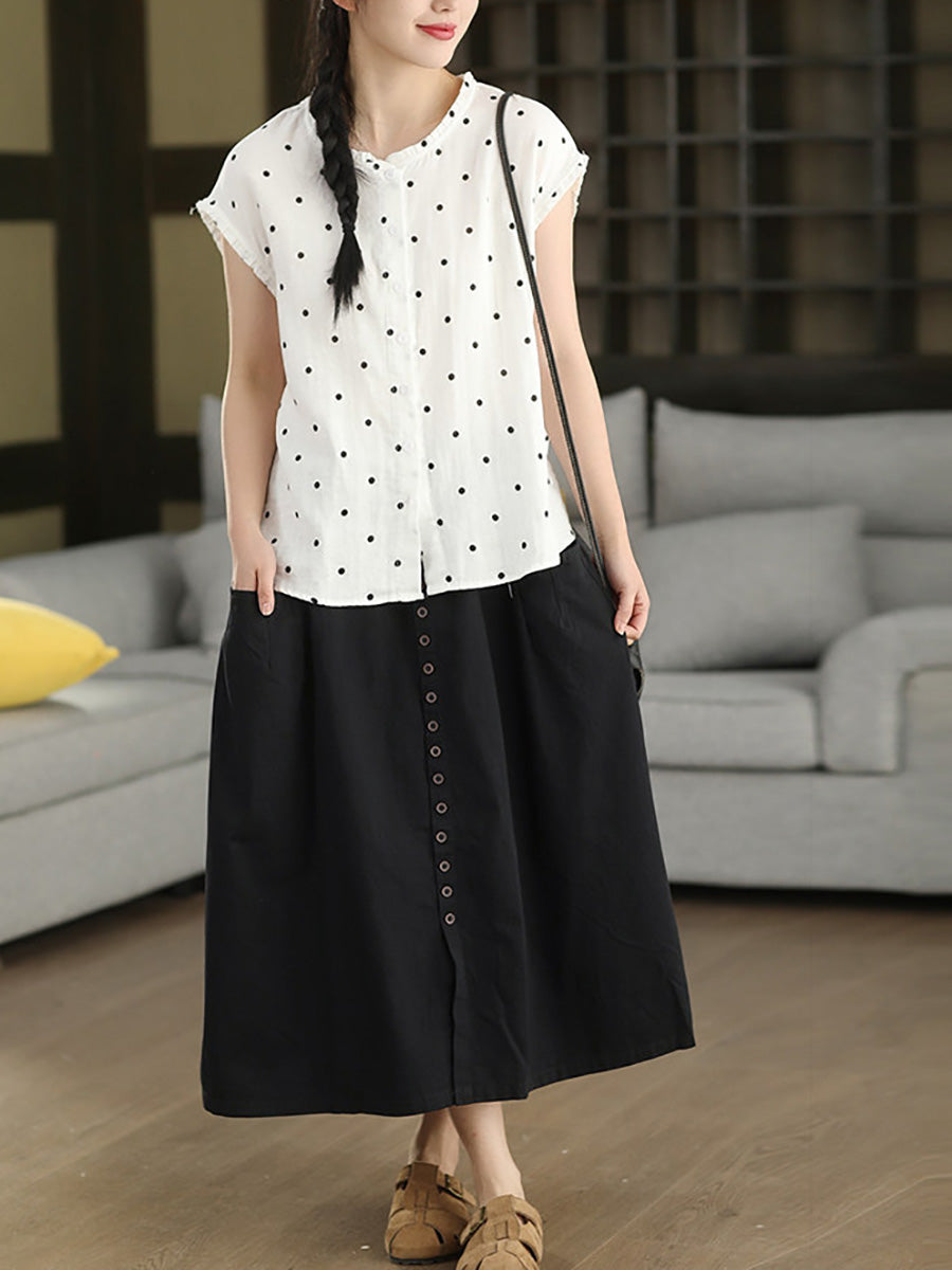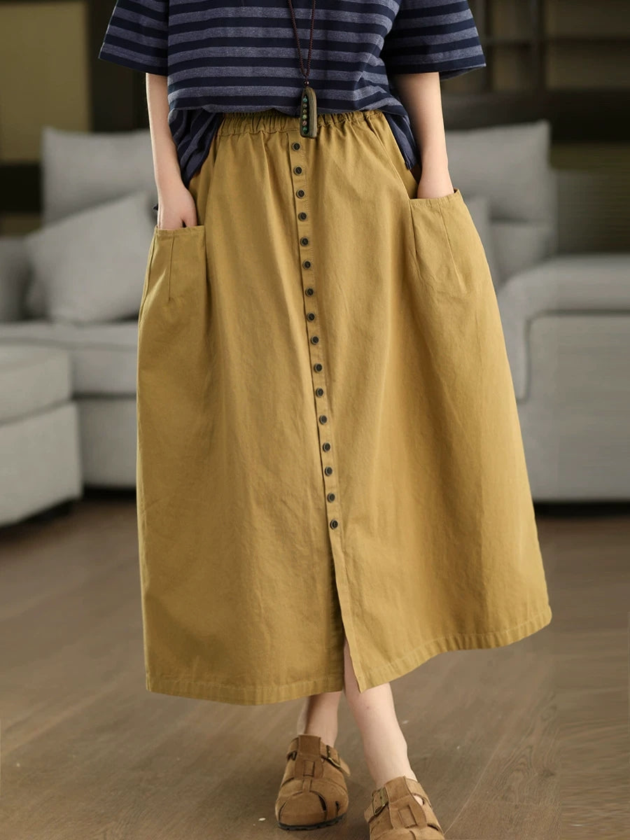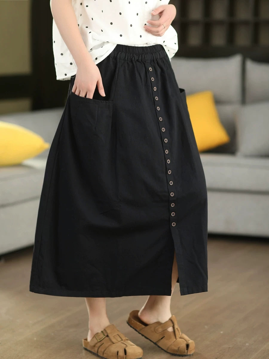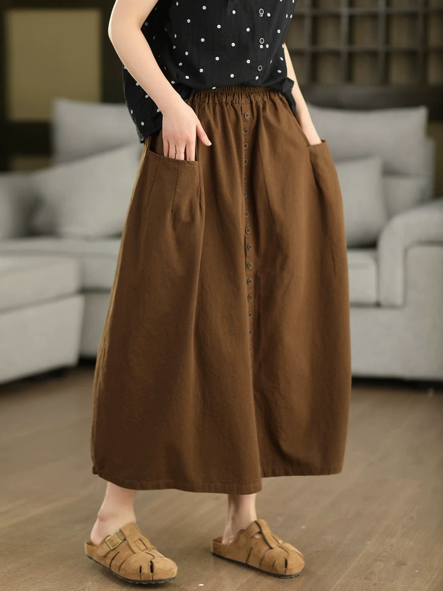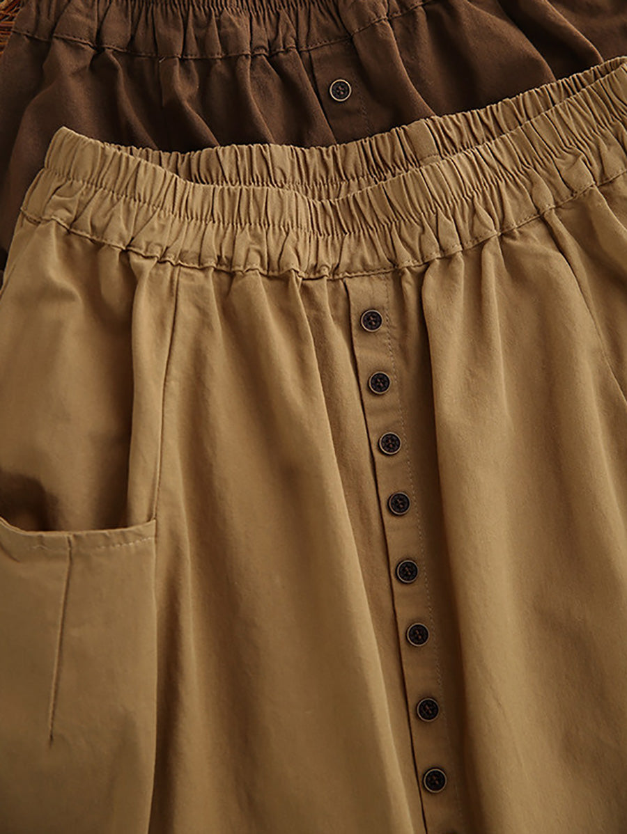 Women Summer Pure Color 100%Cotton Wide-leg Pants