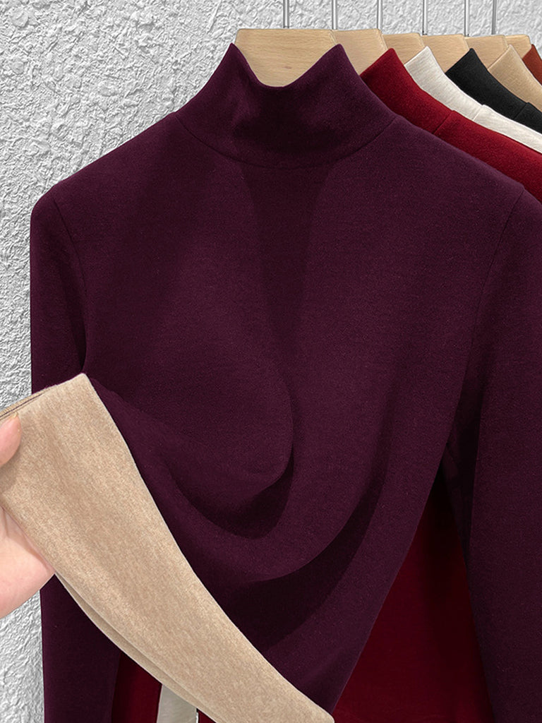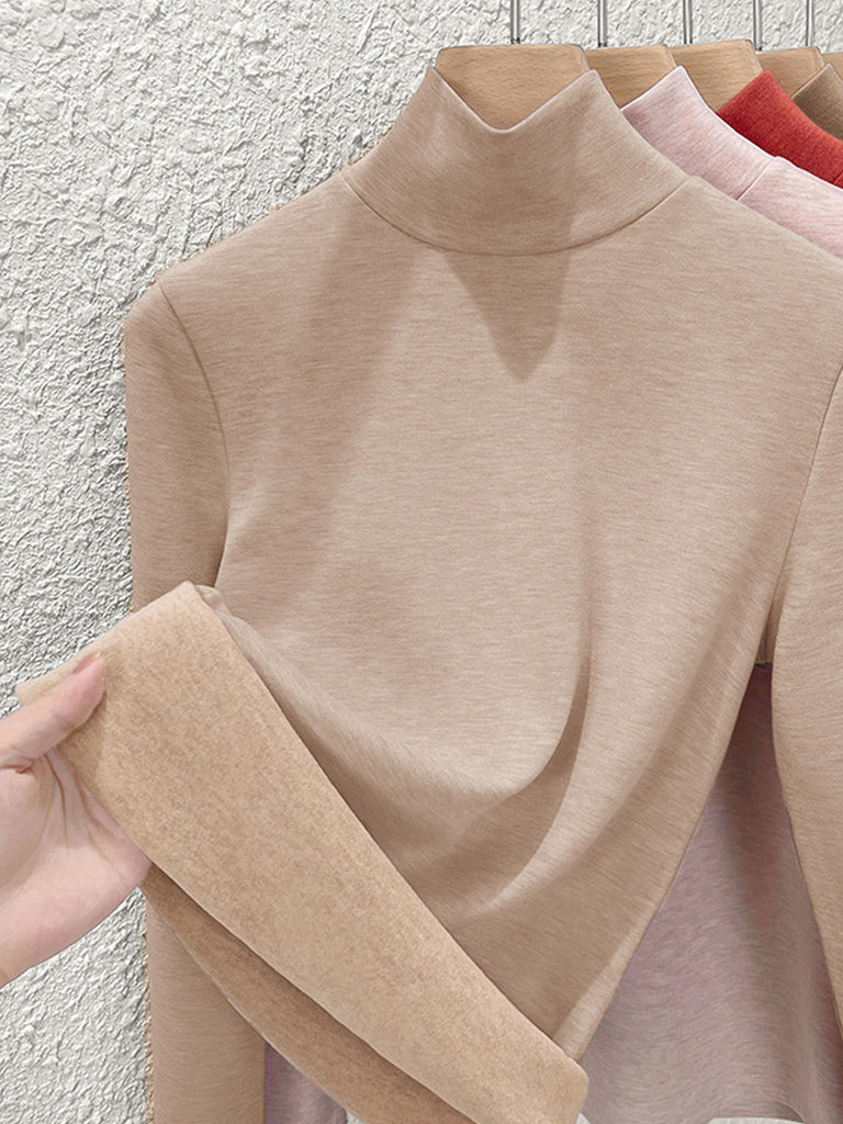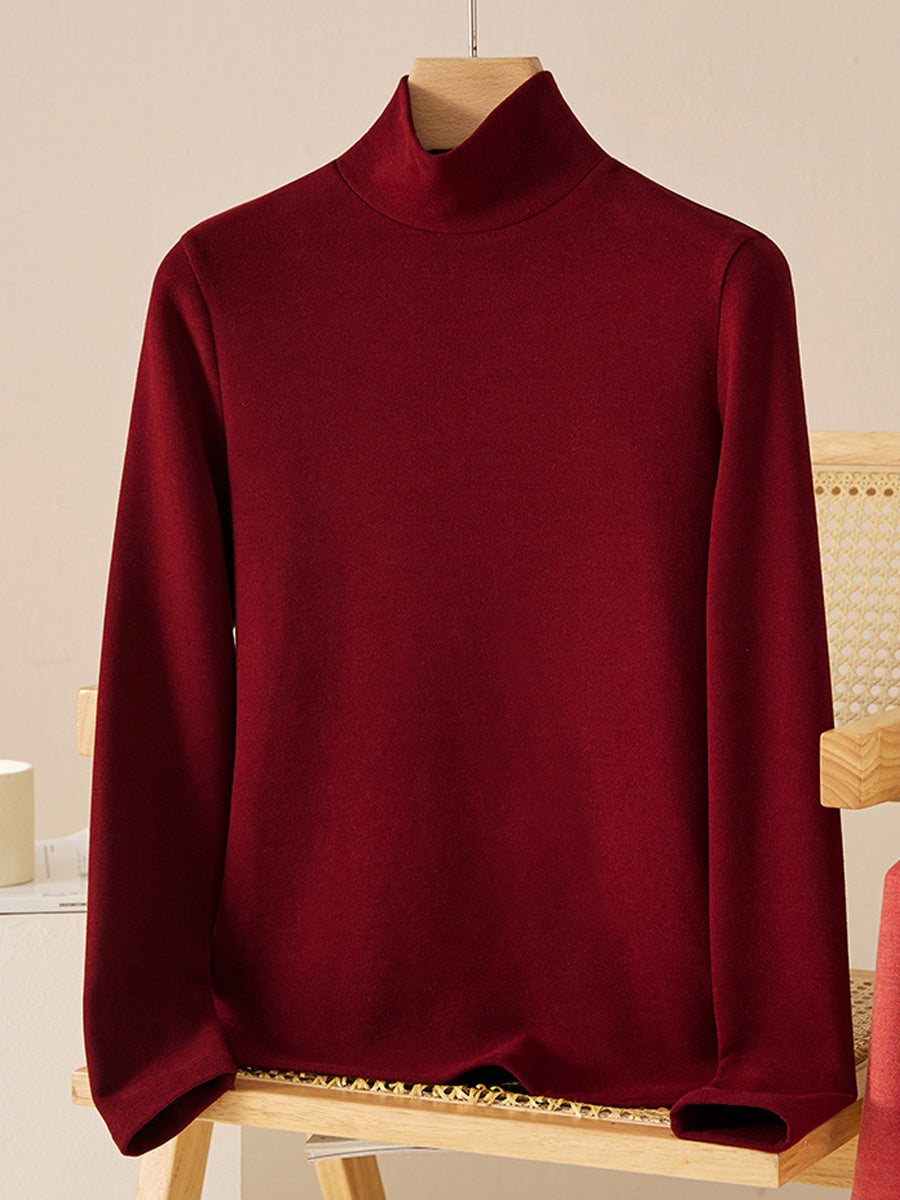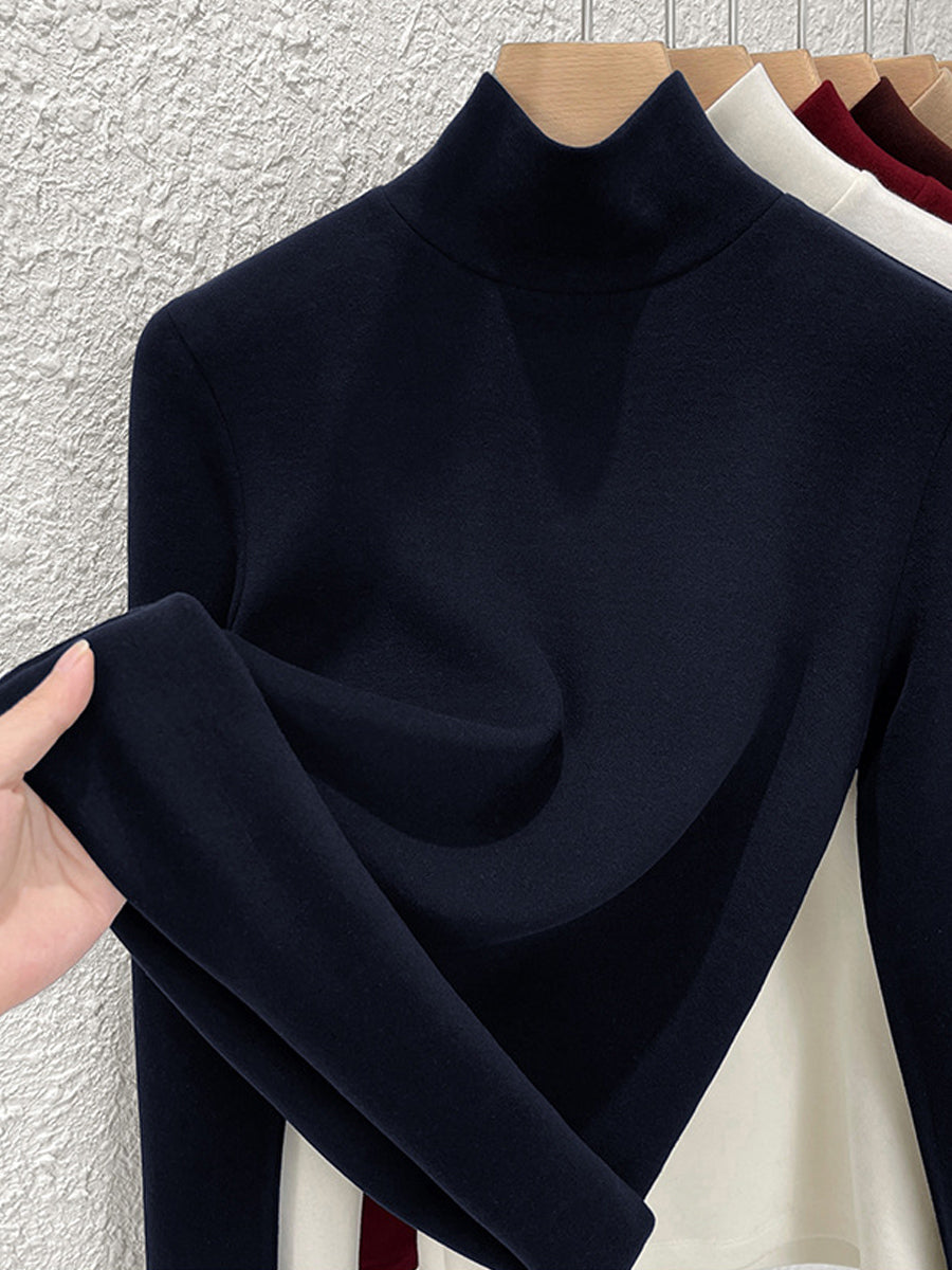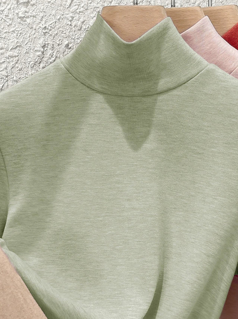 Women Winter Pure Color Turtleneck Bottom Blouse