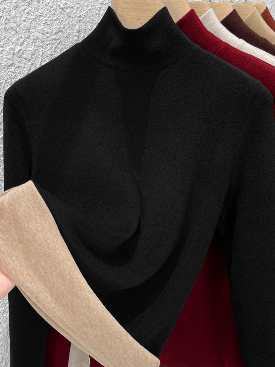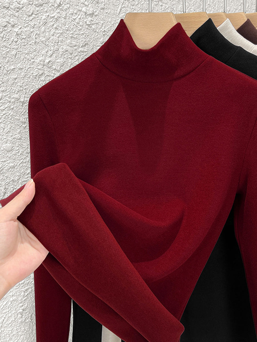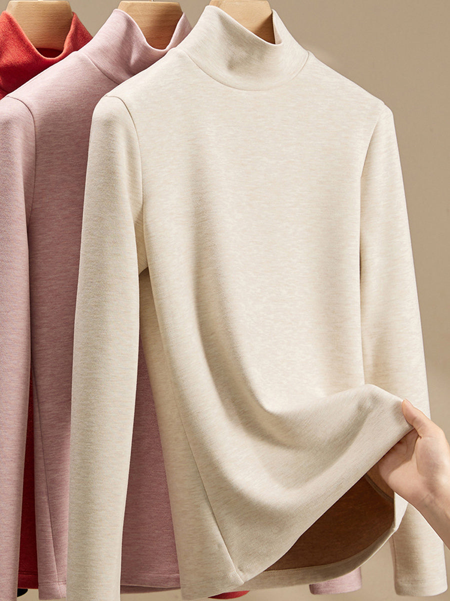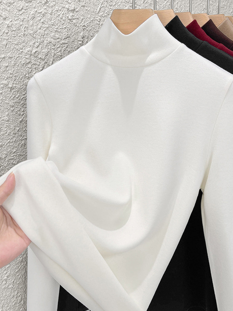 Women Winter Pure Color Turtleneck Bottom Blouse