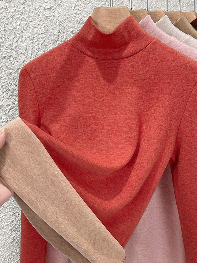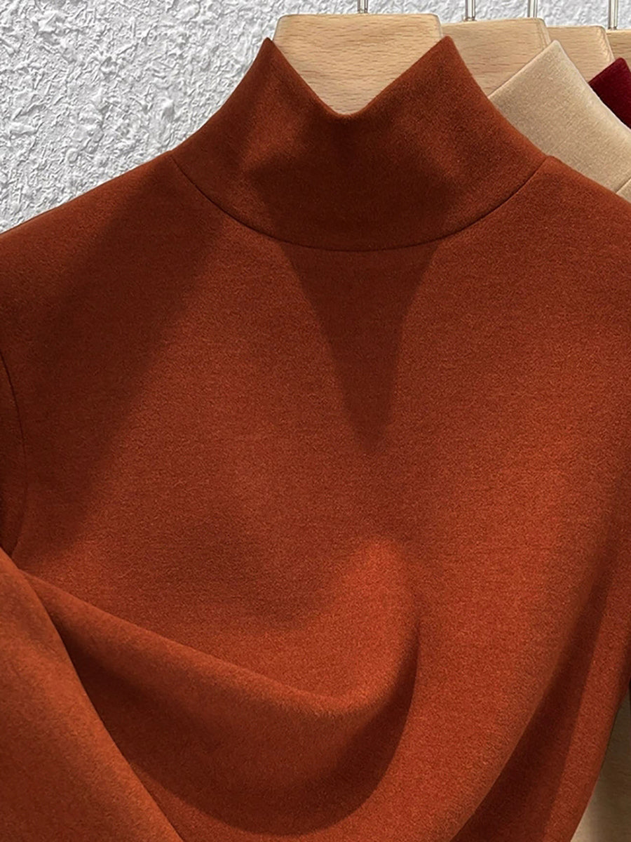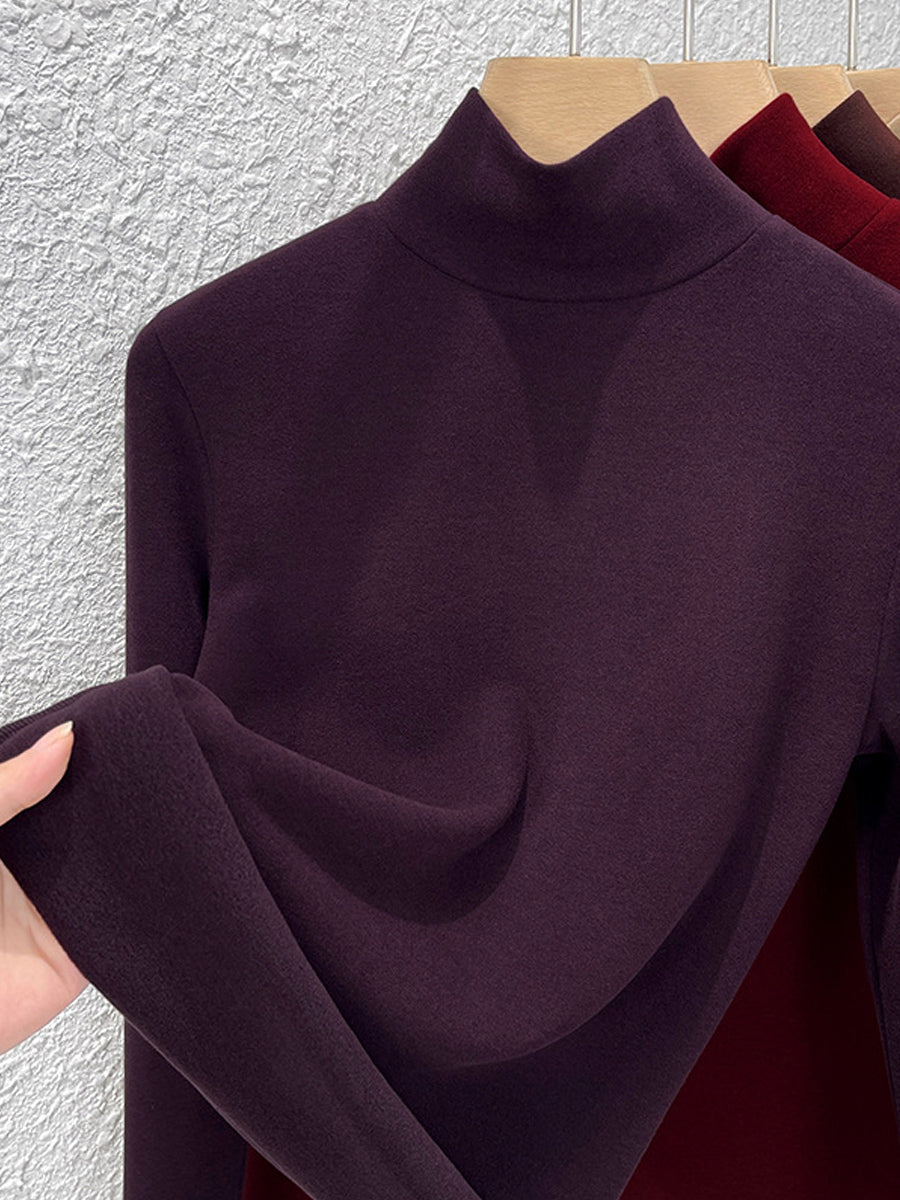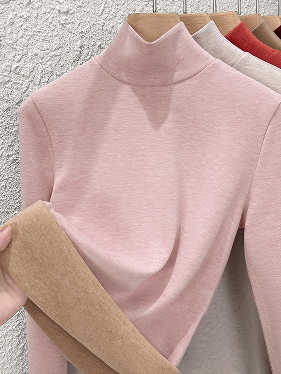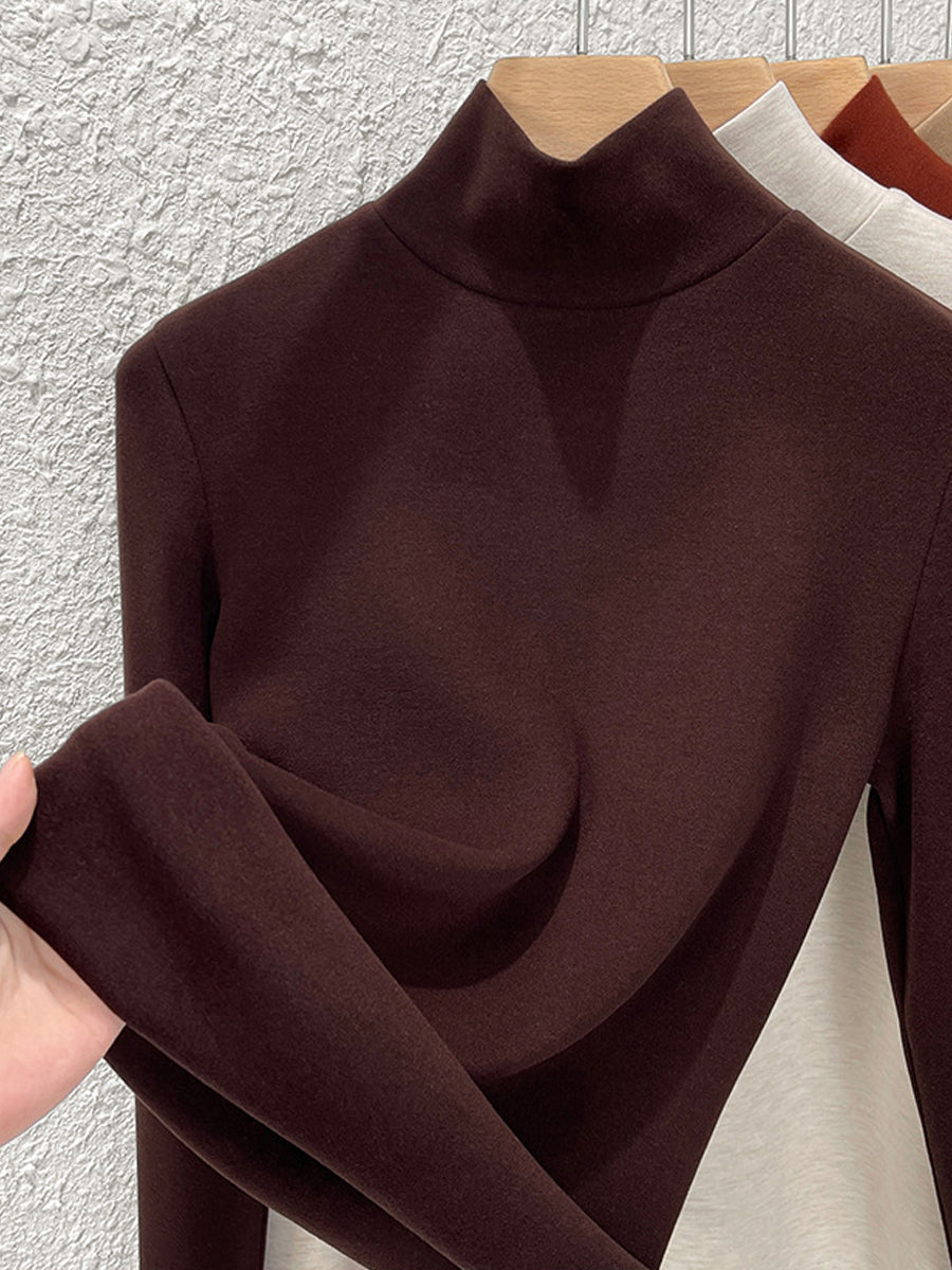 Women Winter Pure Color Turtleneck Bottom Blouse