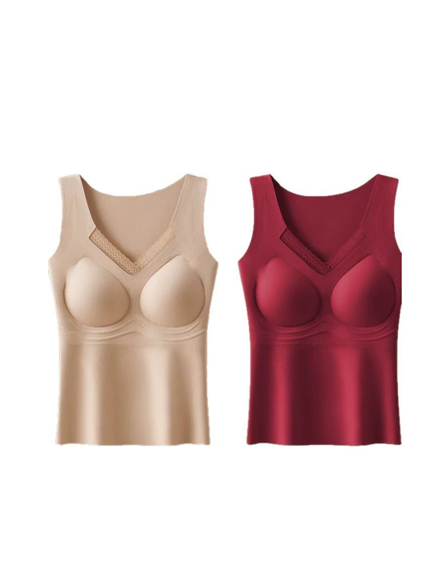 Women Winter Warm Pure Color With Bar Pads Base Vest