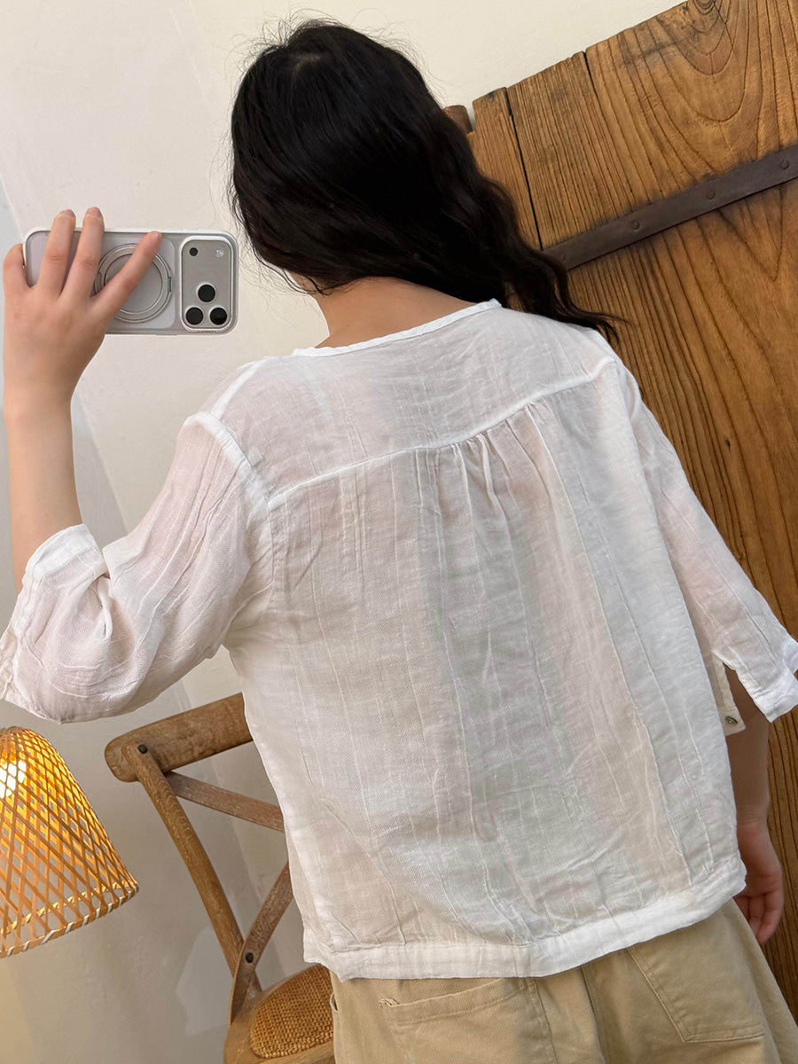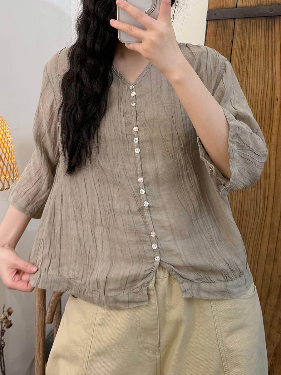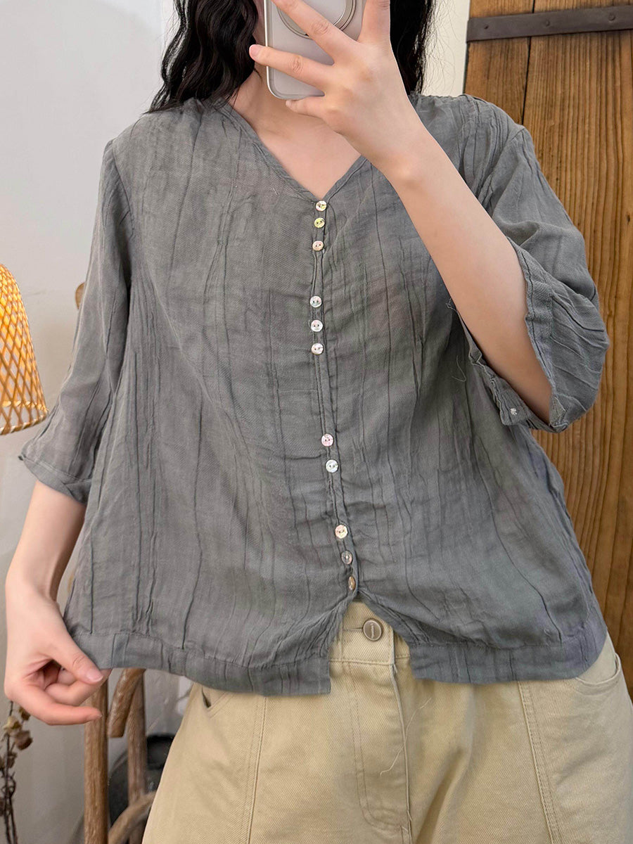 Women Summer Artsy Pure Color V-Neck Blouse