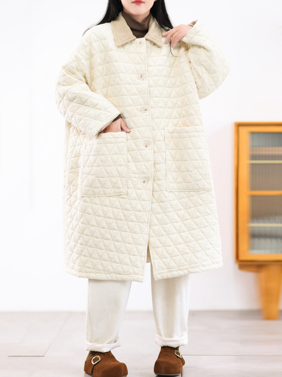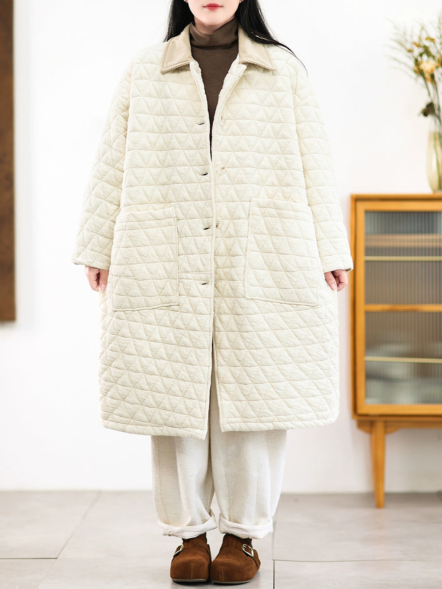 Women Winter Artsy Pure Color Padded Turn-down Collar Coat
