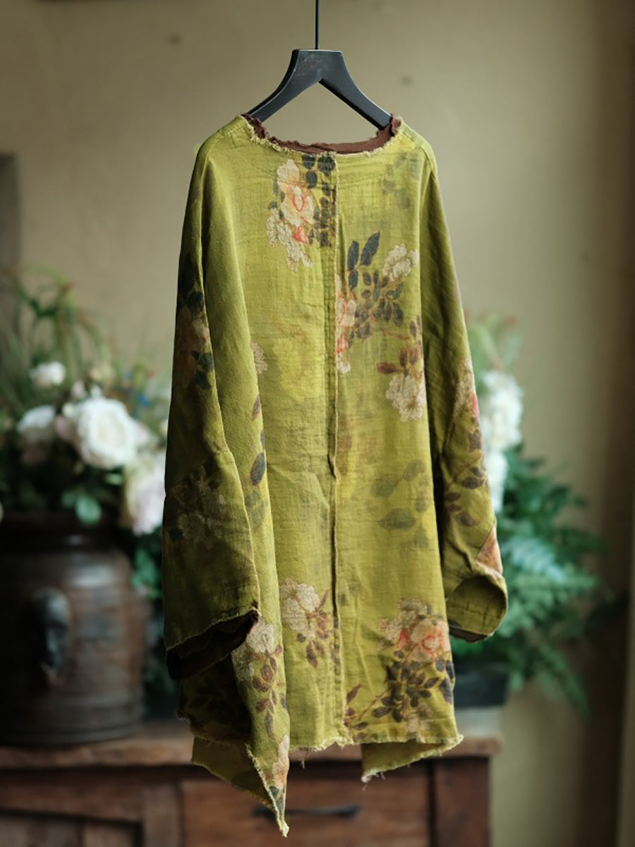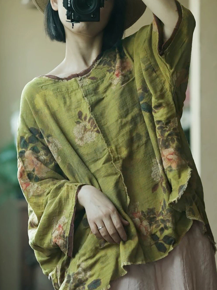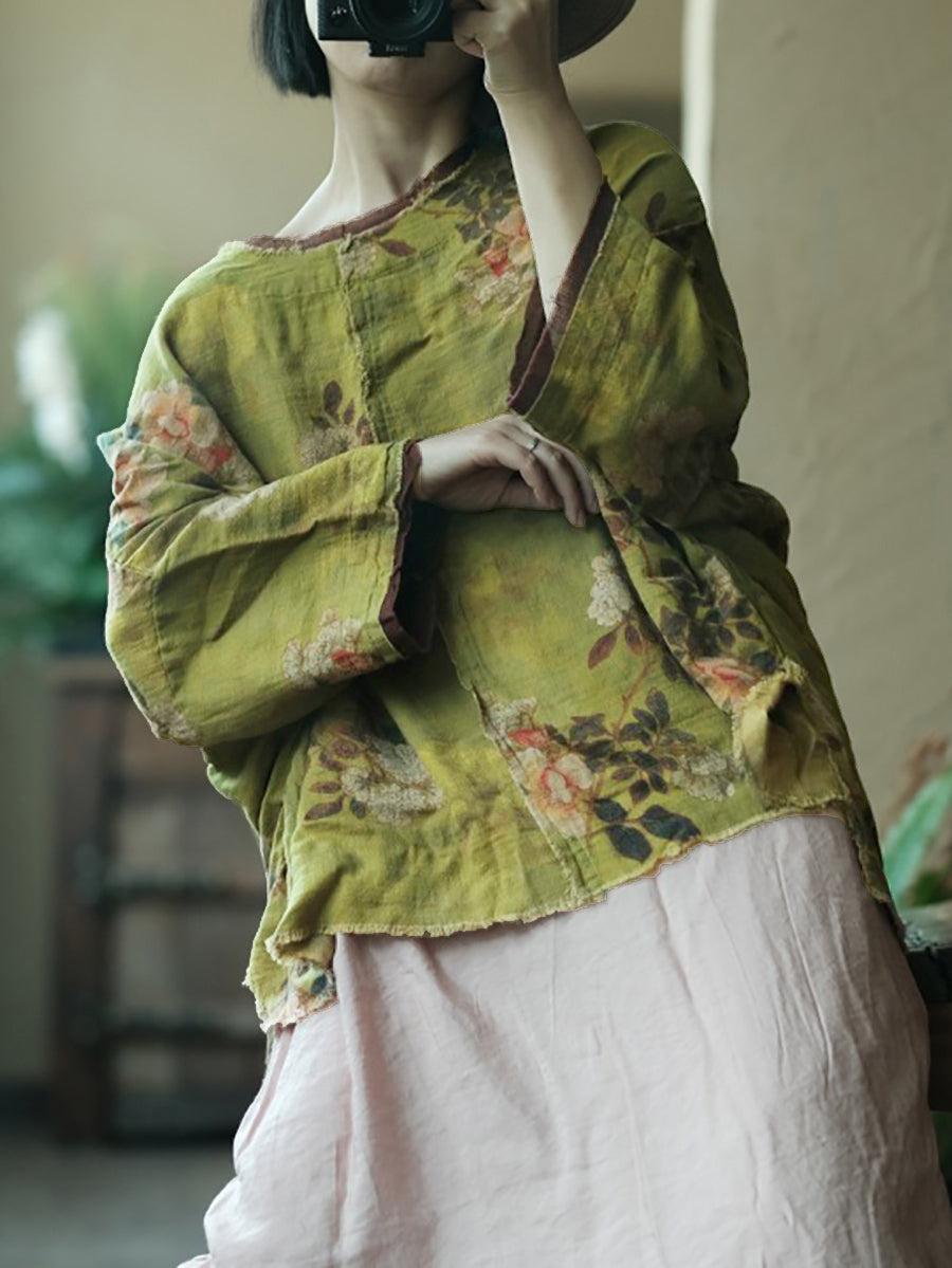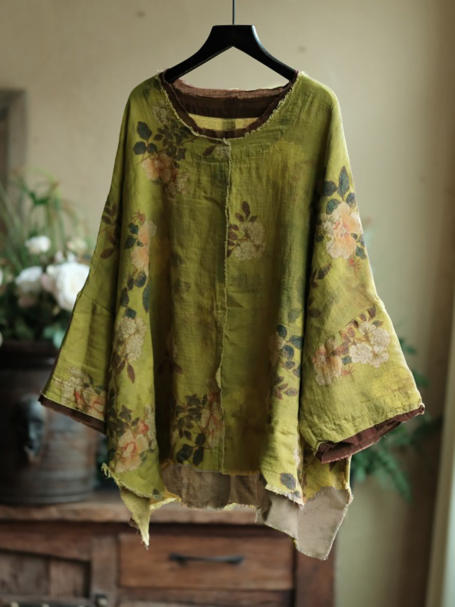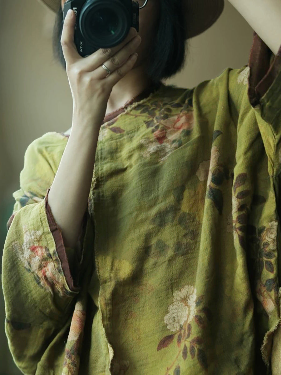 Plus Size Women Summer Flower Cotton O-Neck Blouse