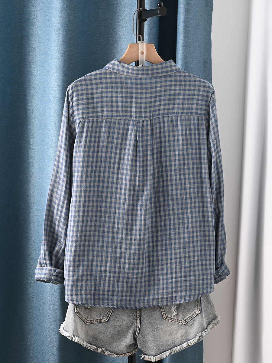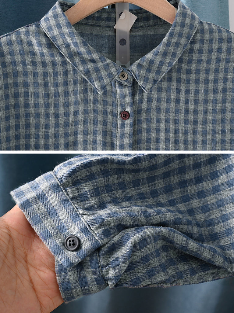 Plus Size Women Autumn Plaid Turn-down Collar 100%Cotton Shirt