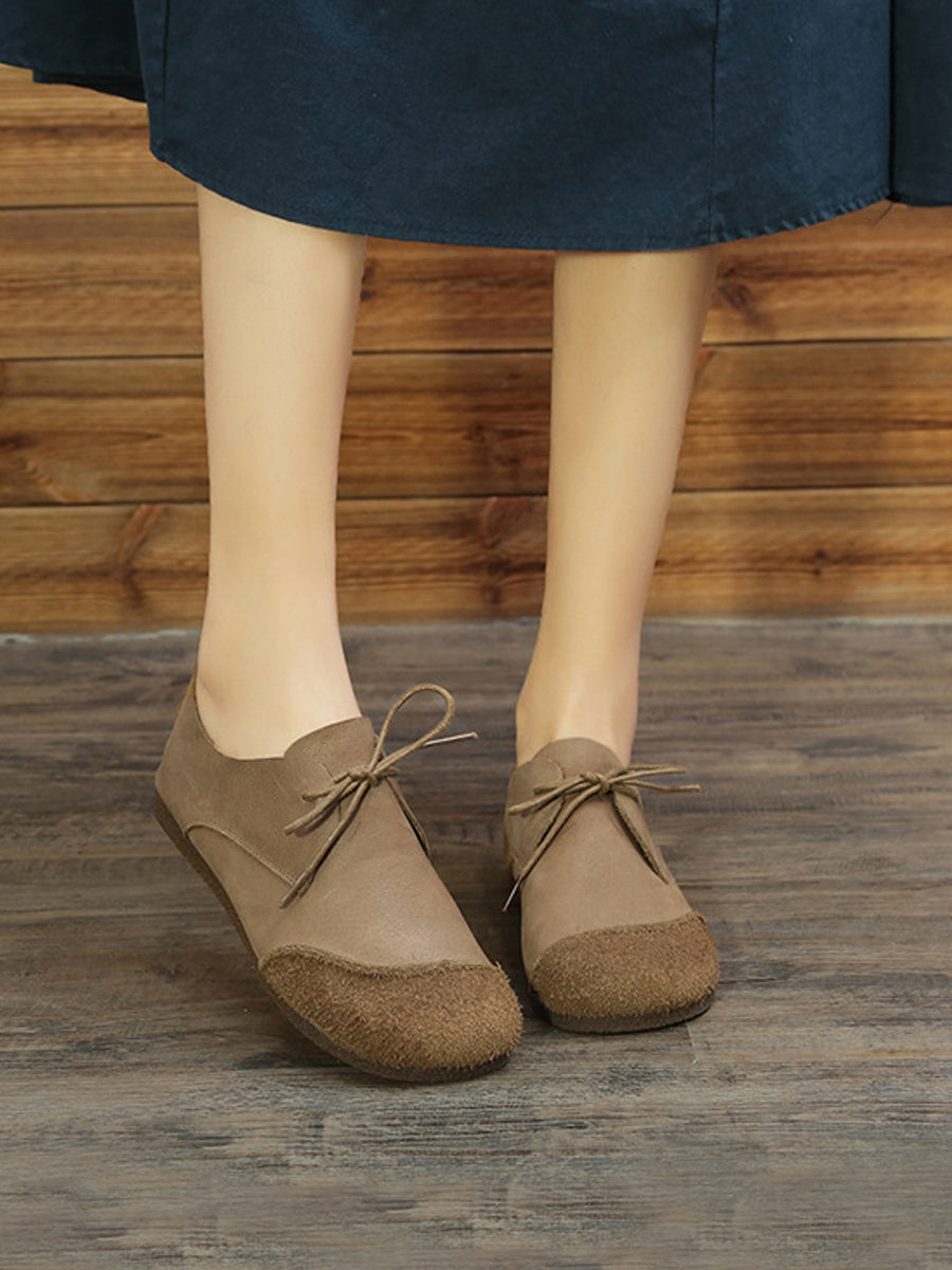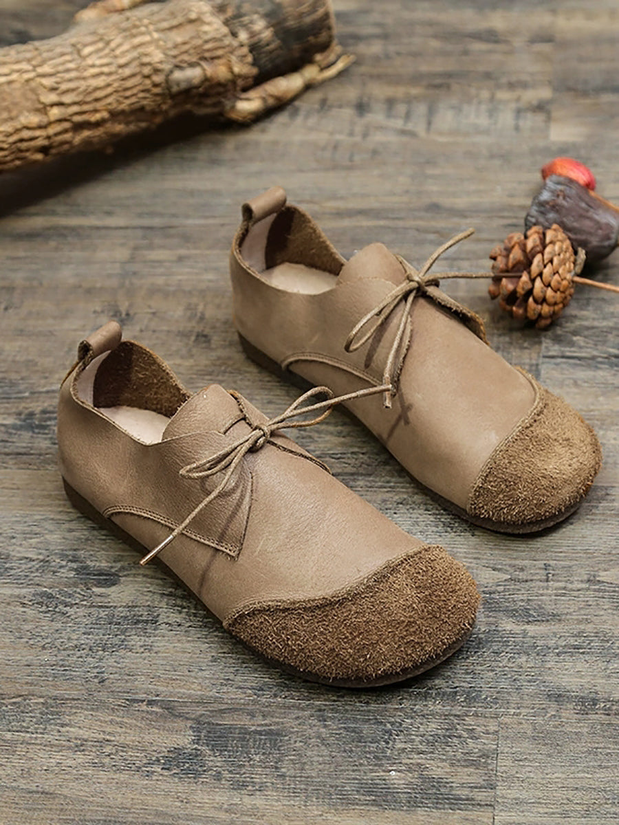 Women Retro Genuine Leather Spliced Flat Shoes