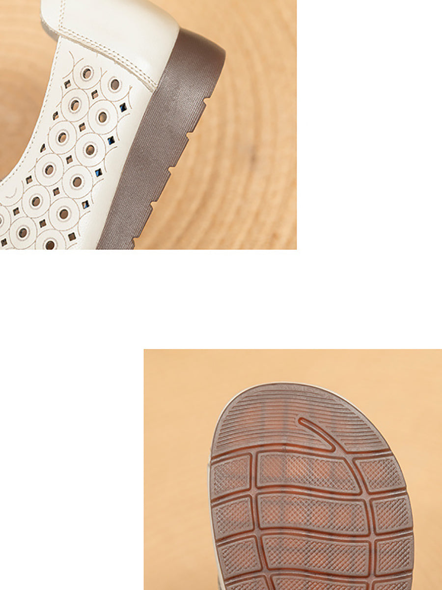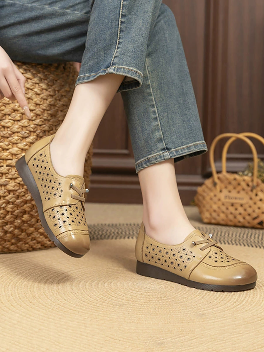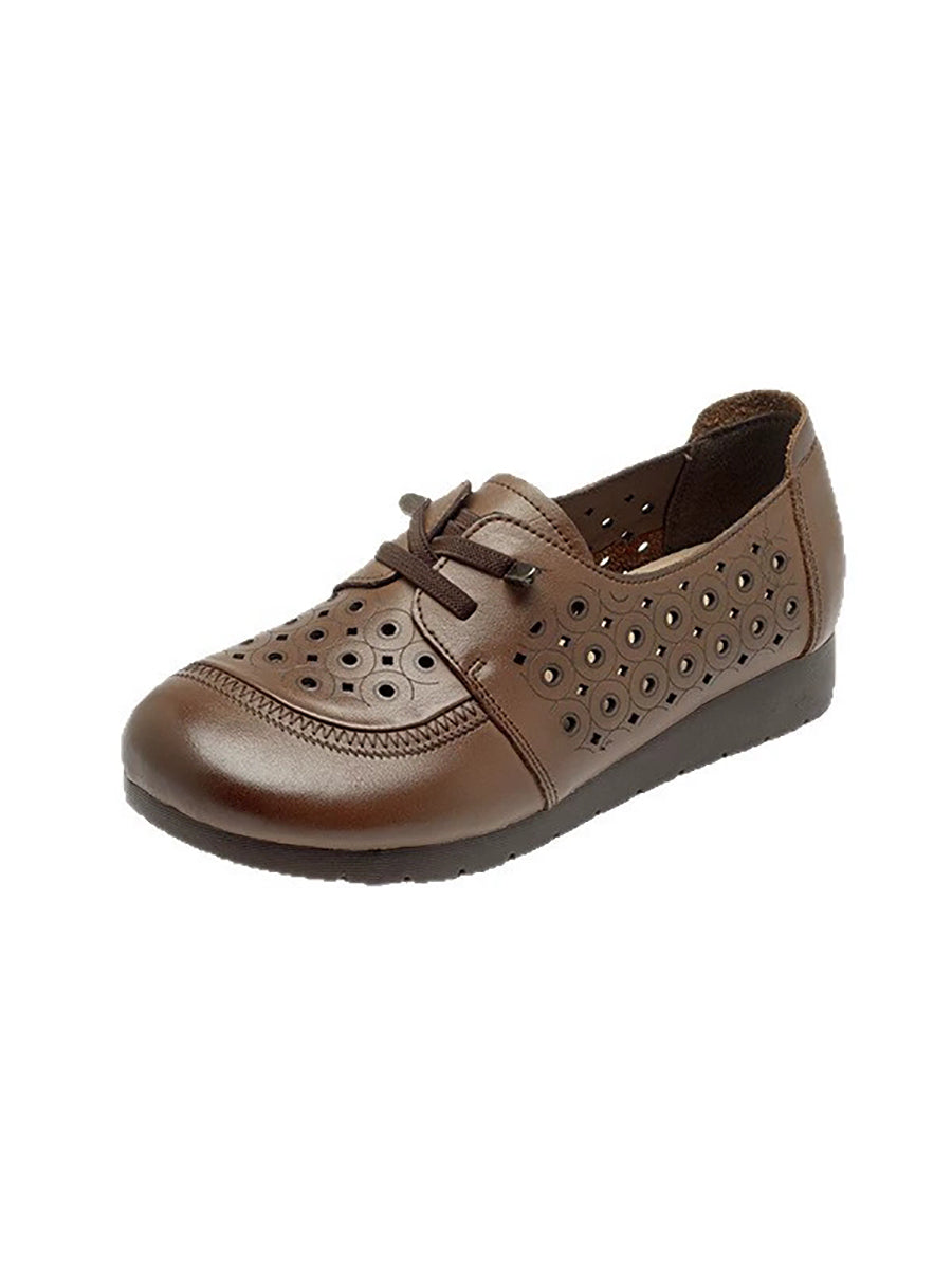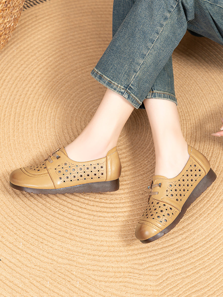 Women Retro Hole Genuine Leather Flat Shoes