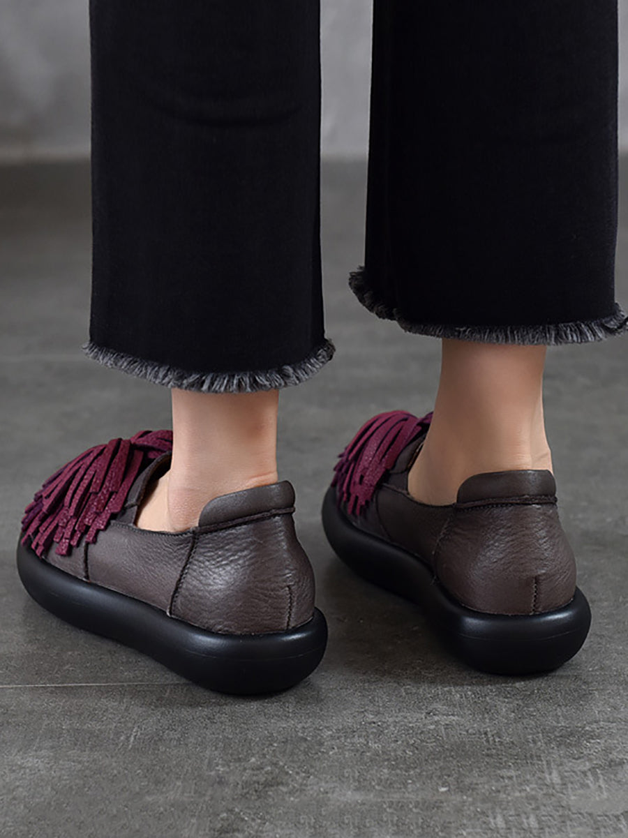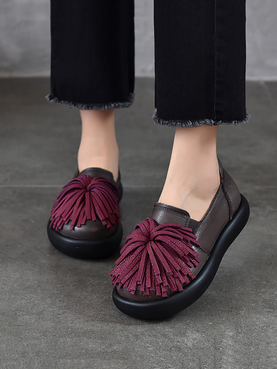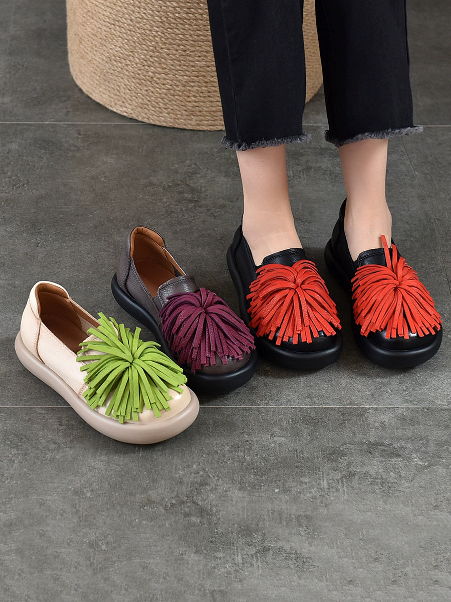 Women Spring Casual Genuine Leather Tassel Flat Shoes