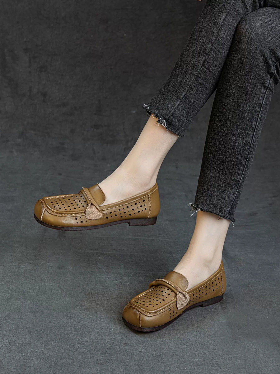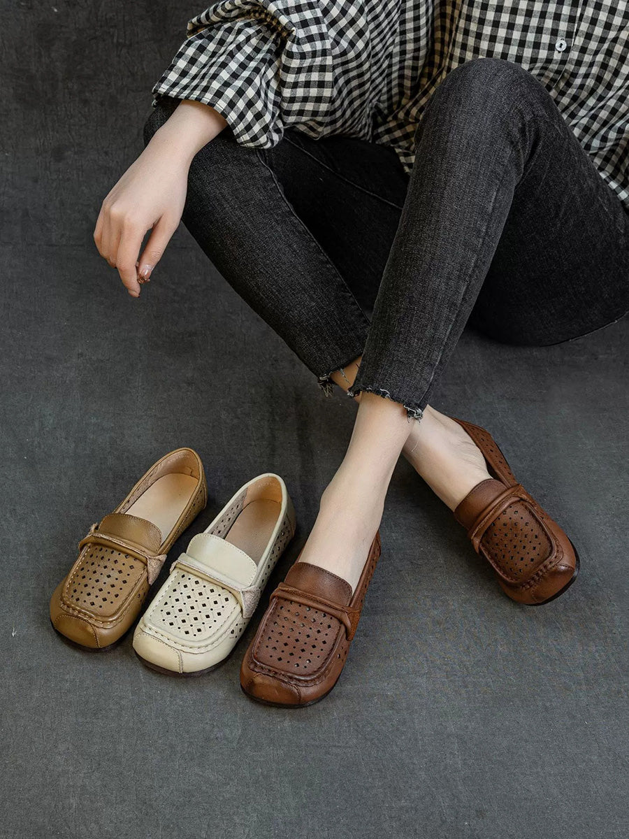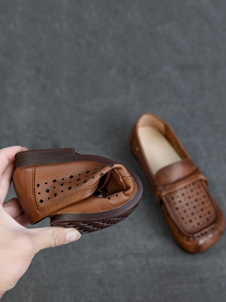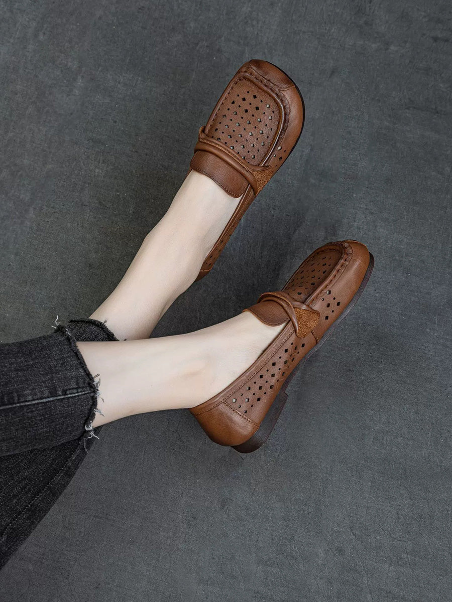 Women Summer Genuine Leather Hollow Out Shoes