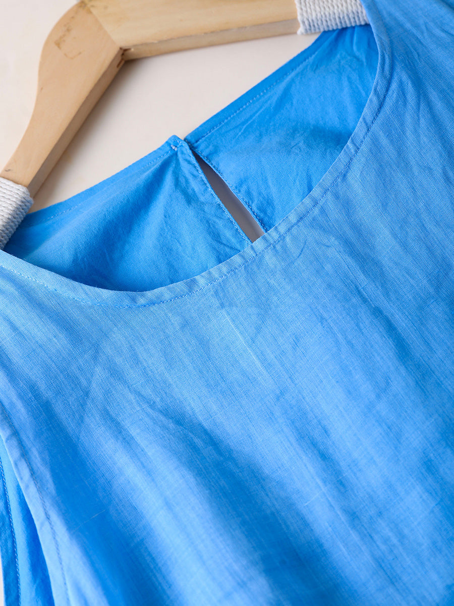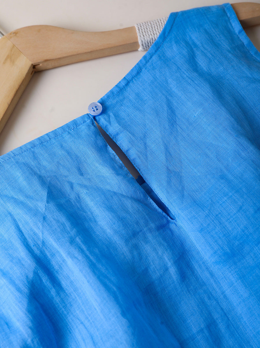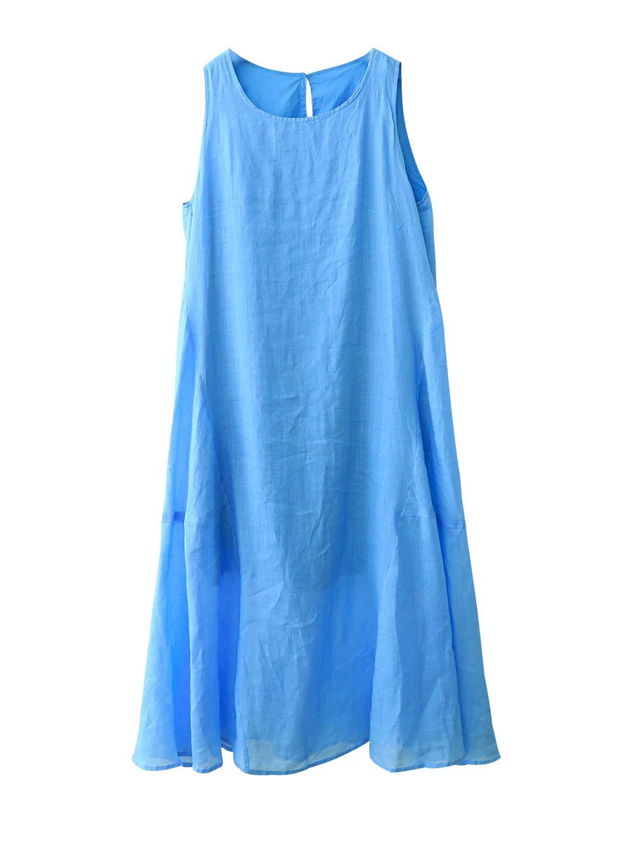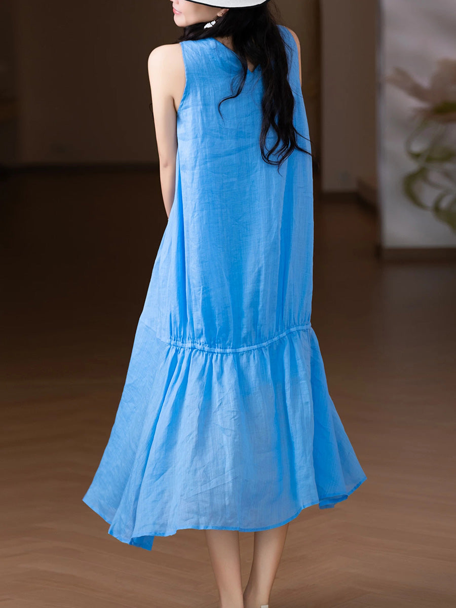 Women Summer Artsy Pure Color 100%Ramie Vest Dress
