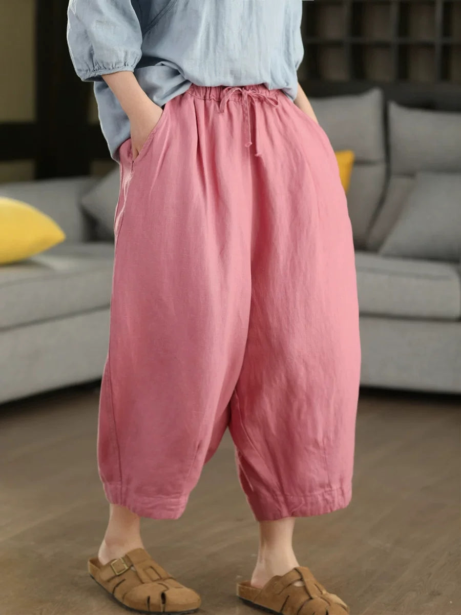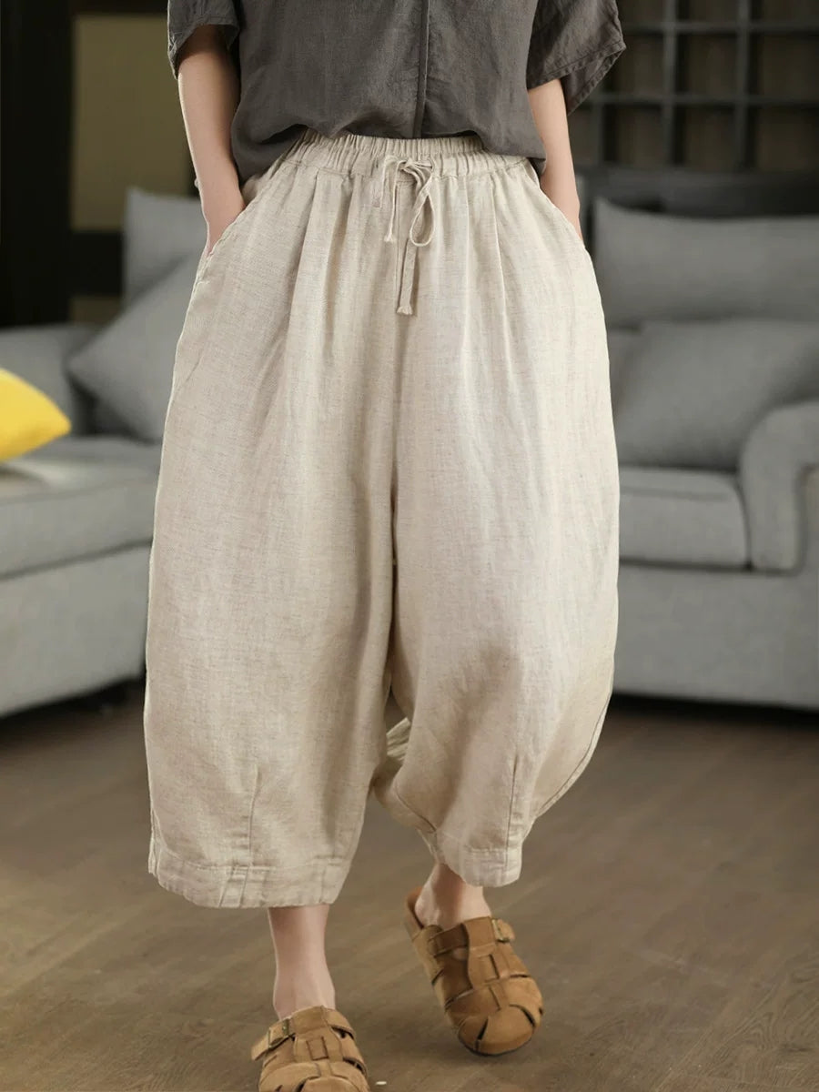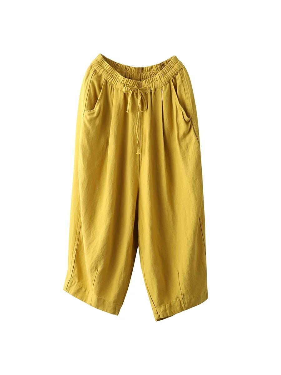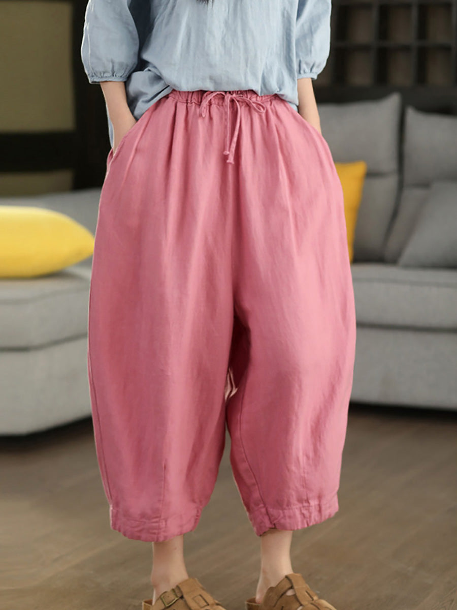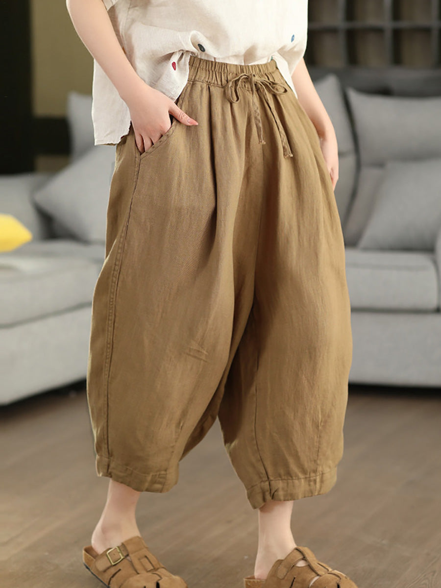 Women Summer Retro Pure Color 100%Linen Harem Pants