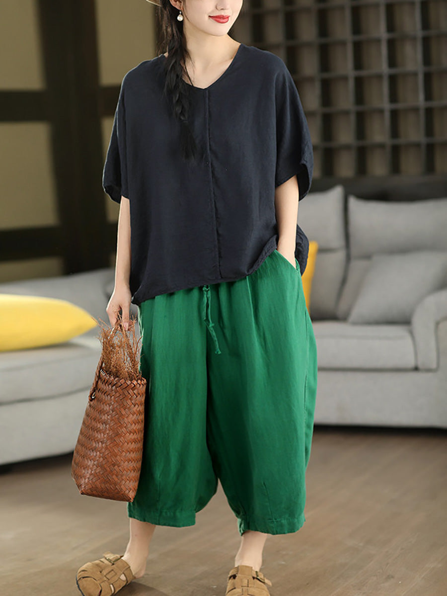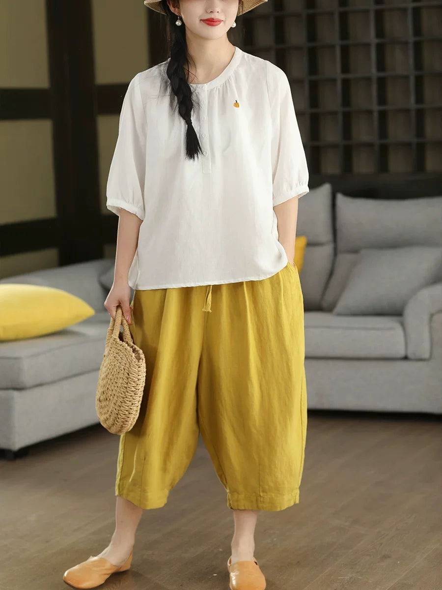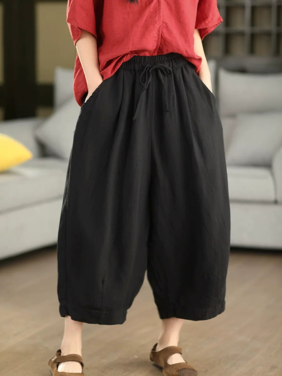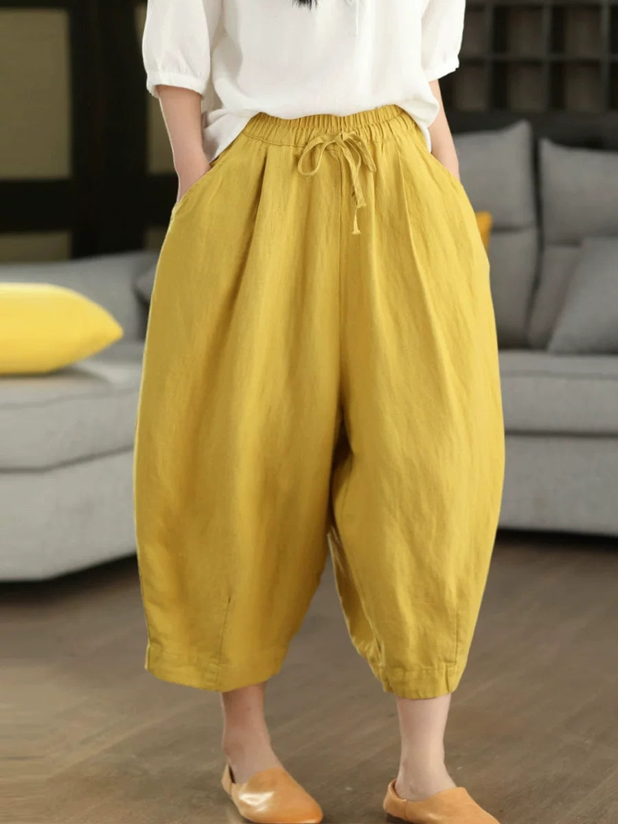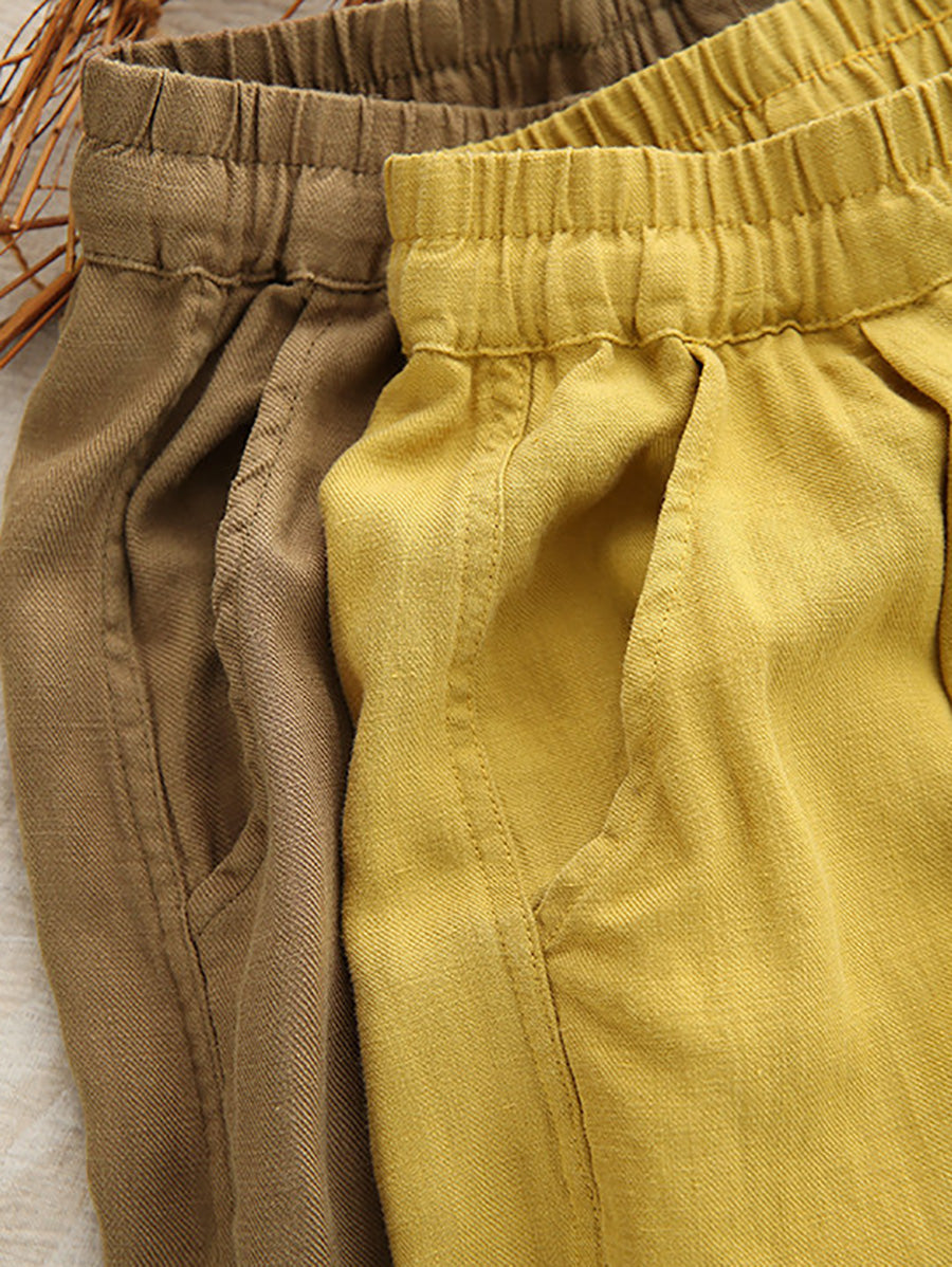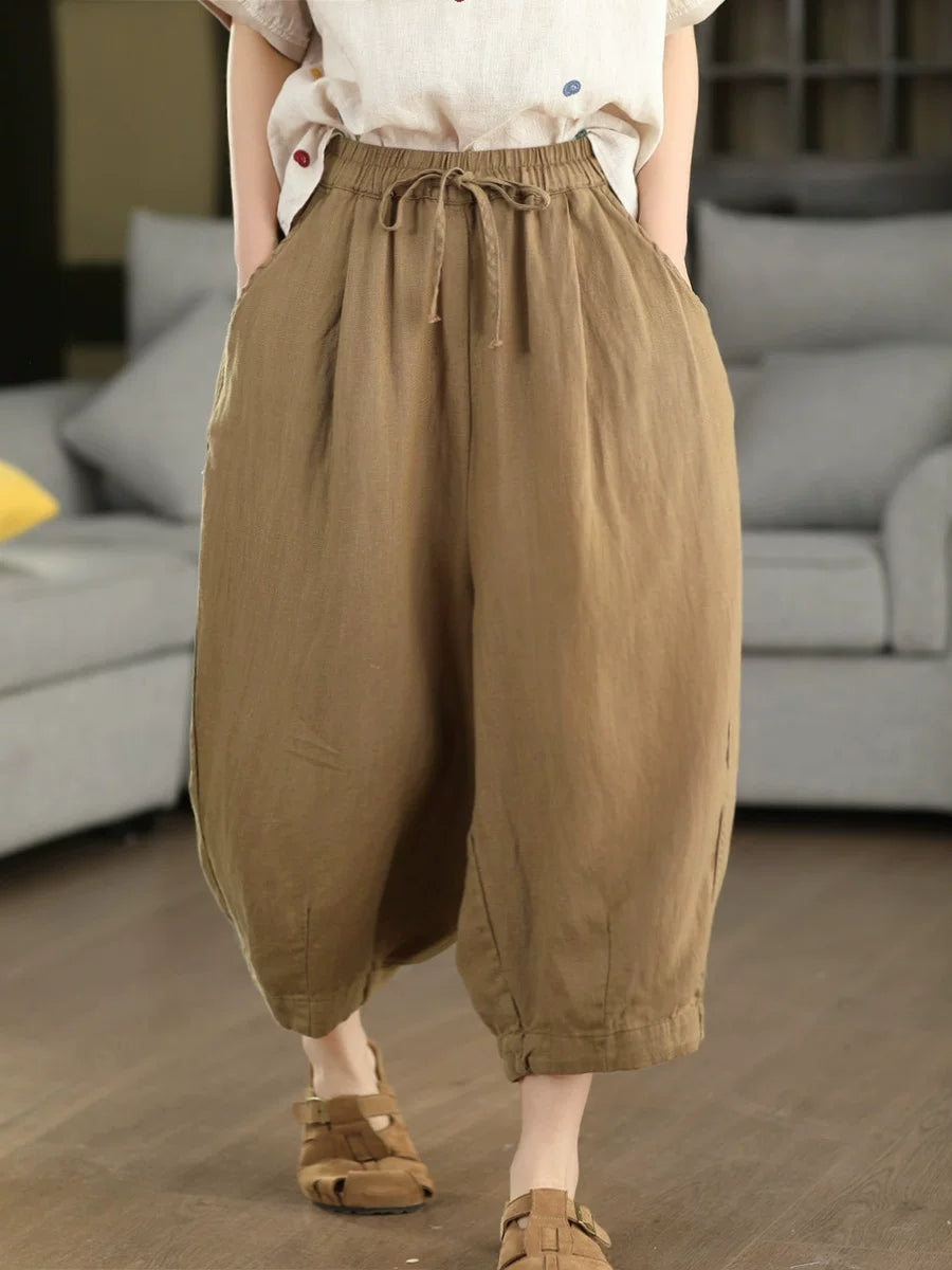 Women Summer Retro Pure Color 100%Linen Harem Pants