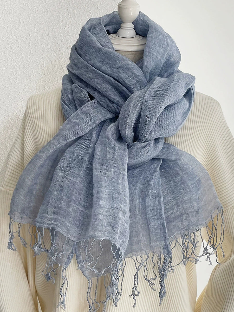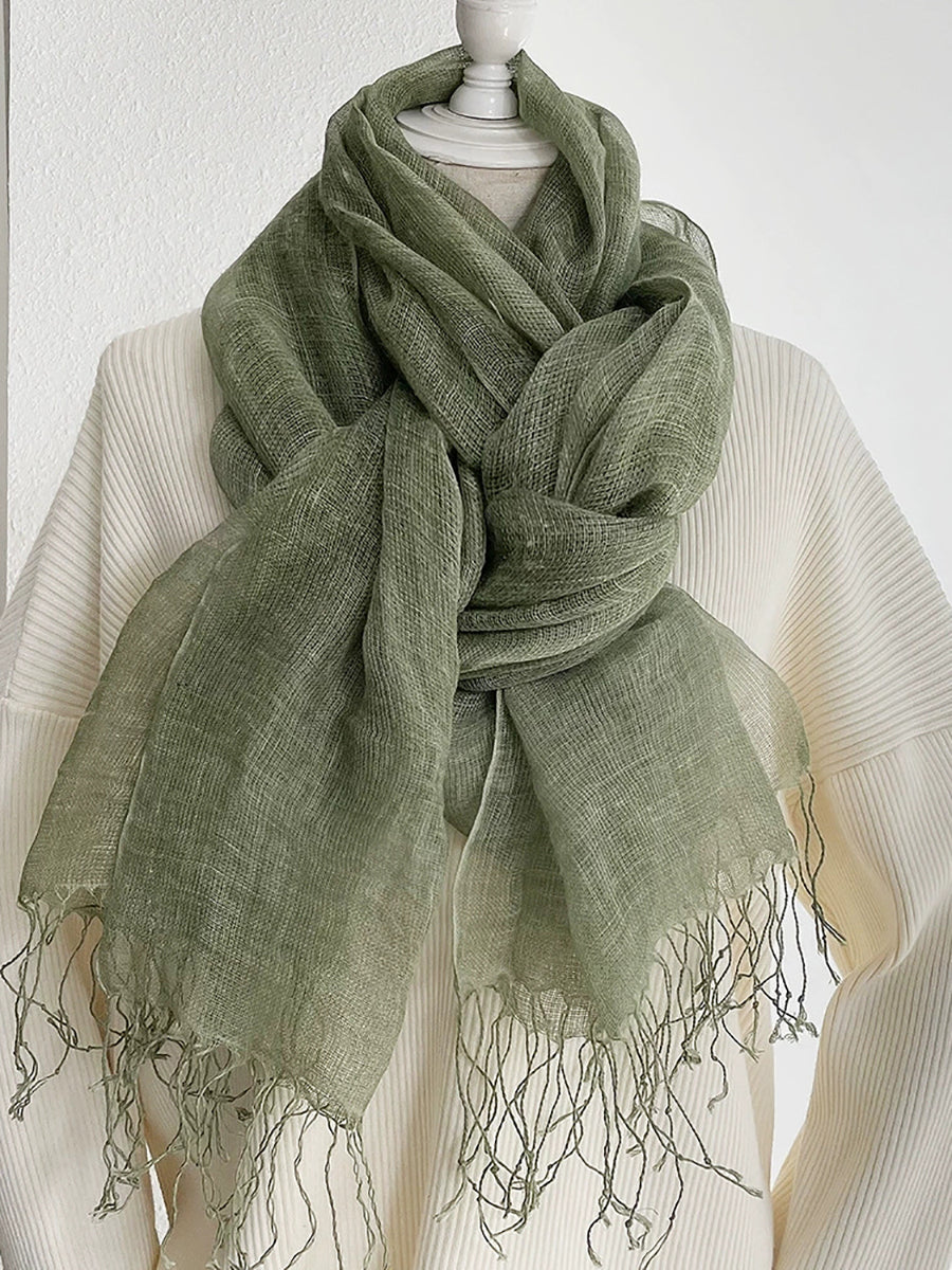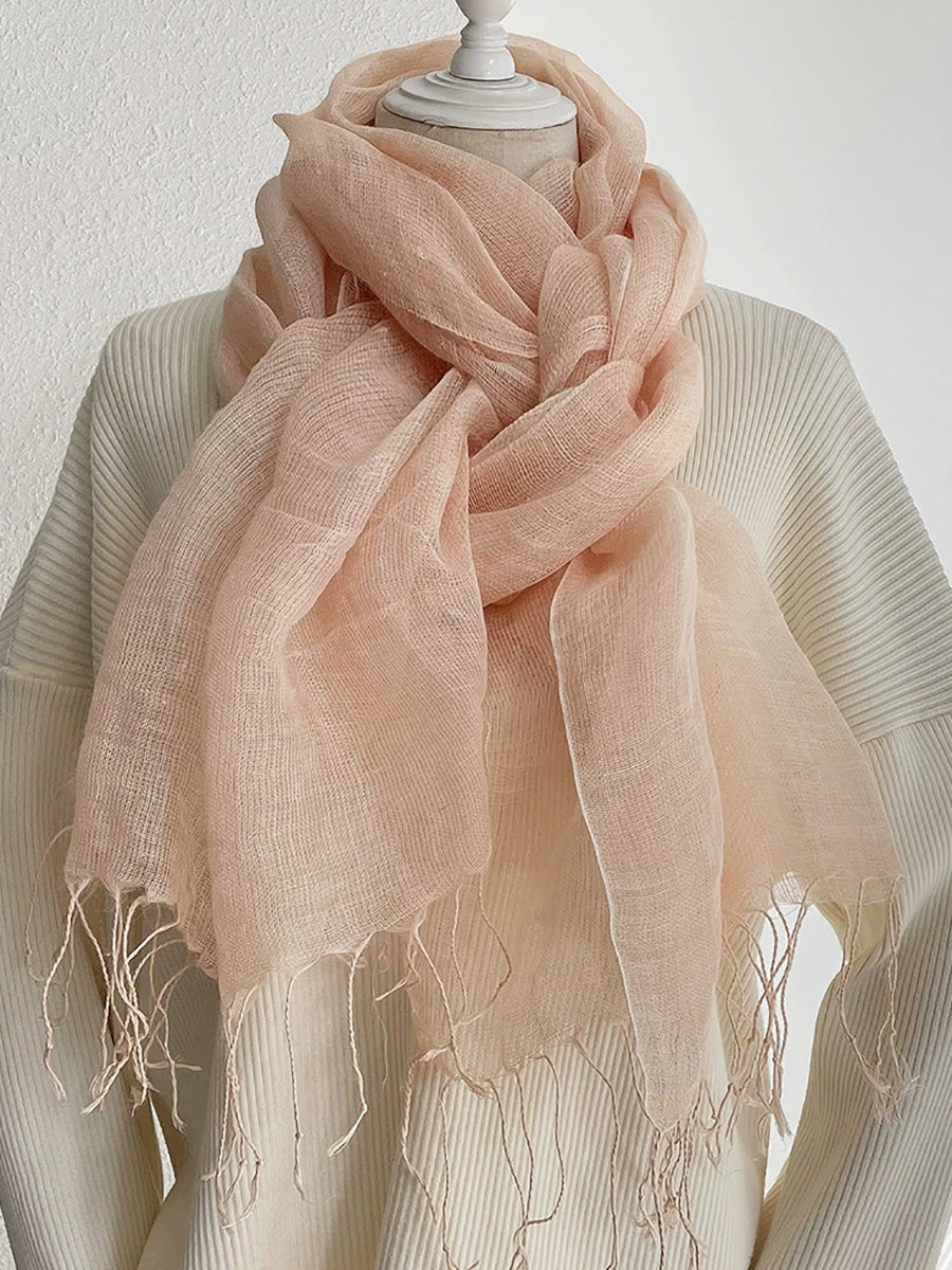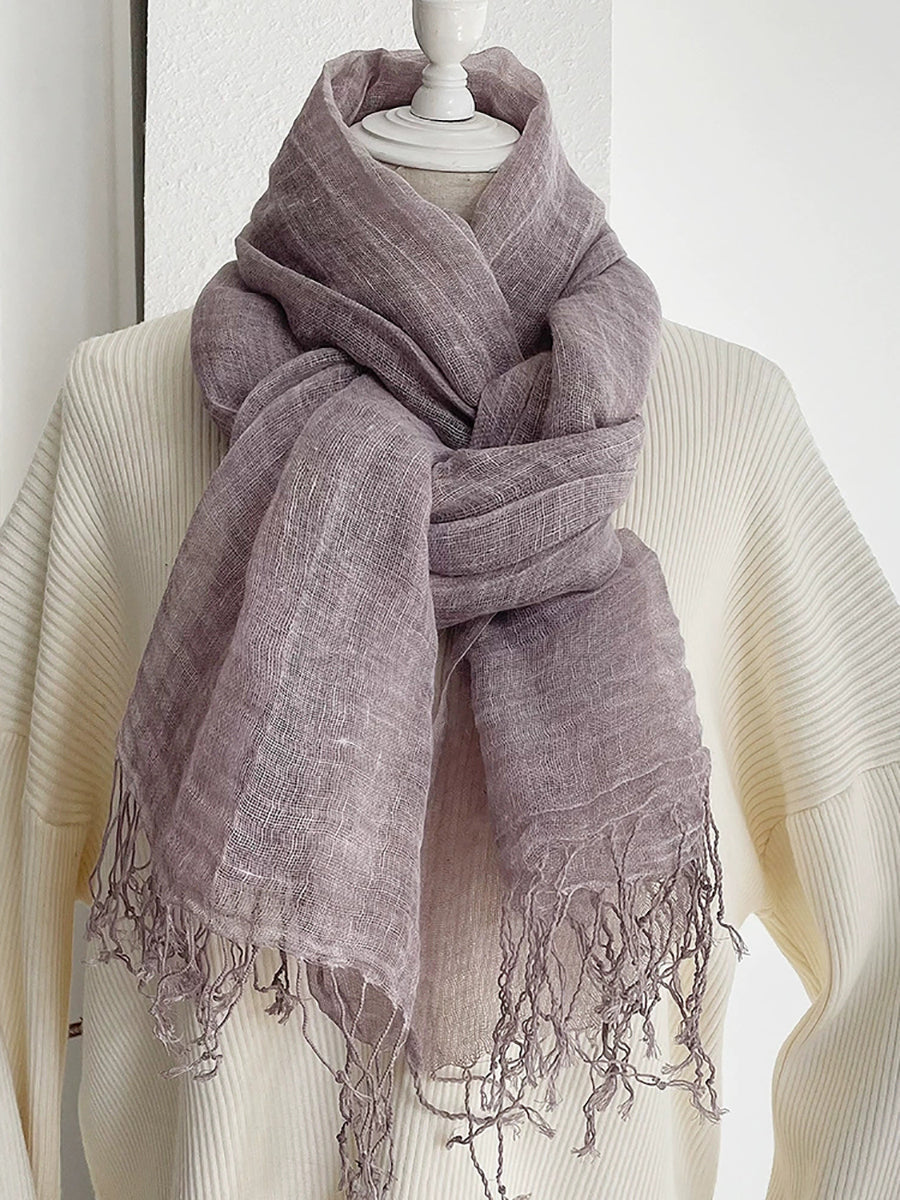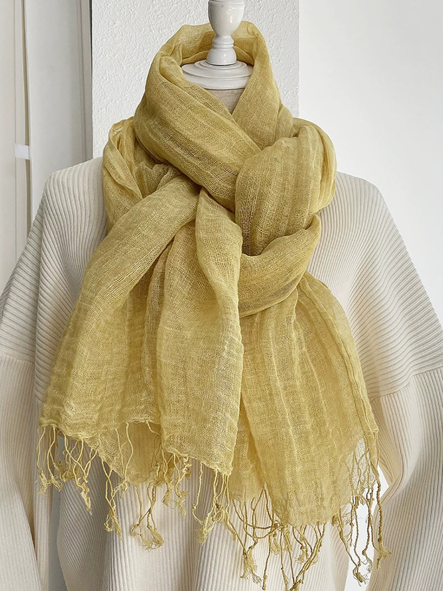 Women Thin Pure Color Tassel Shawl Scarf