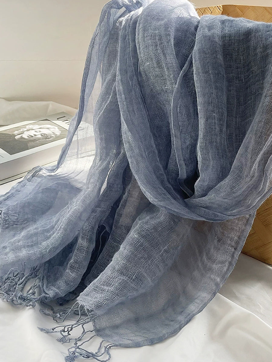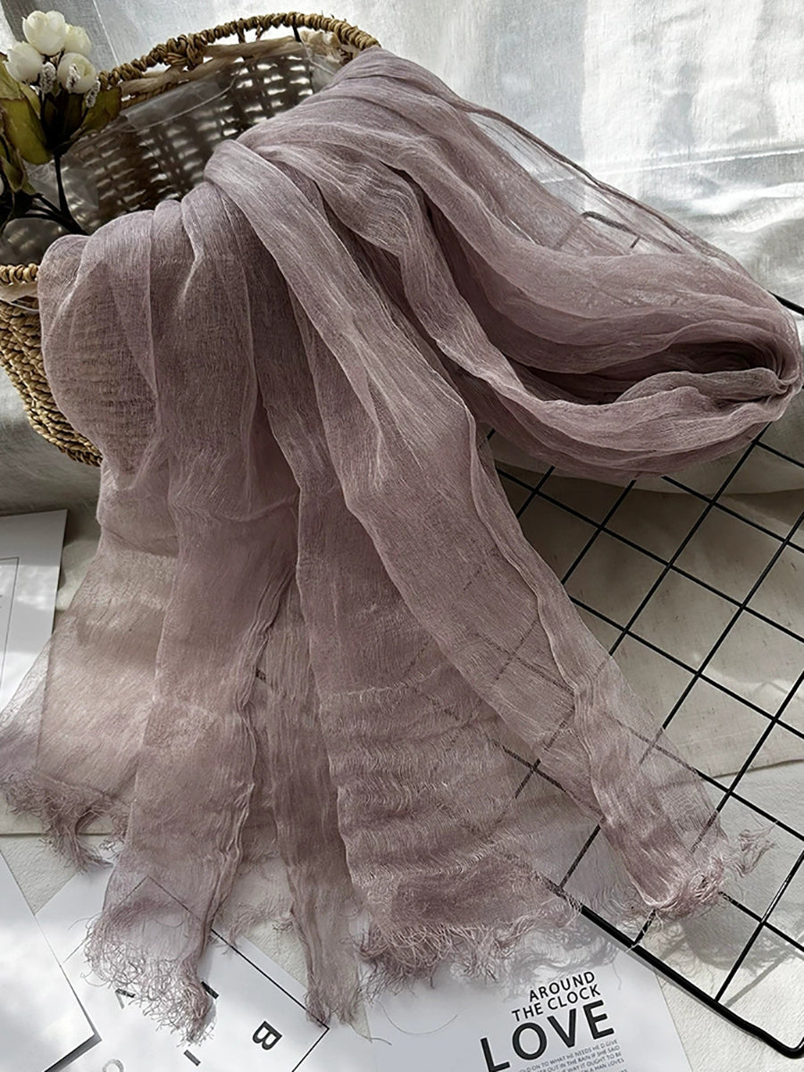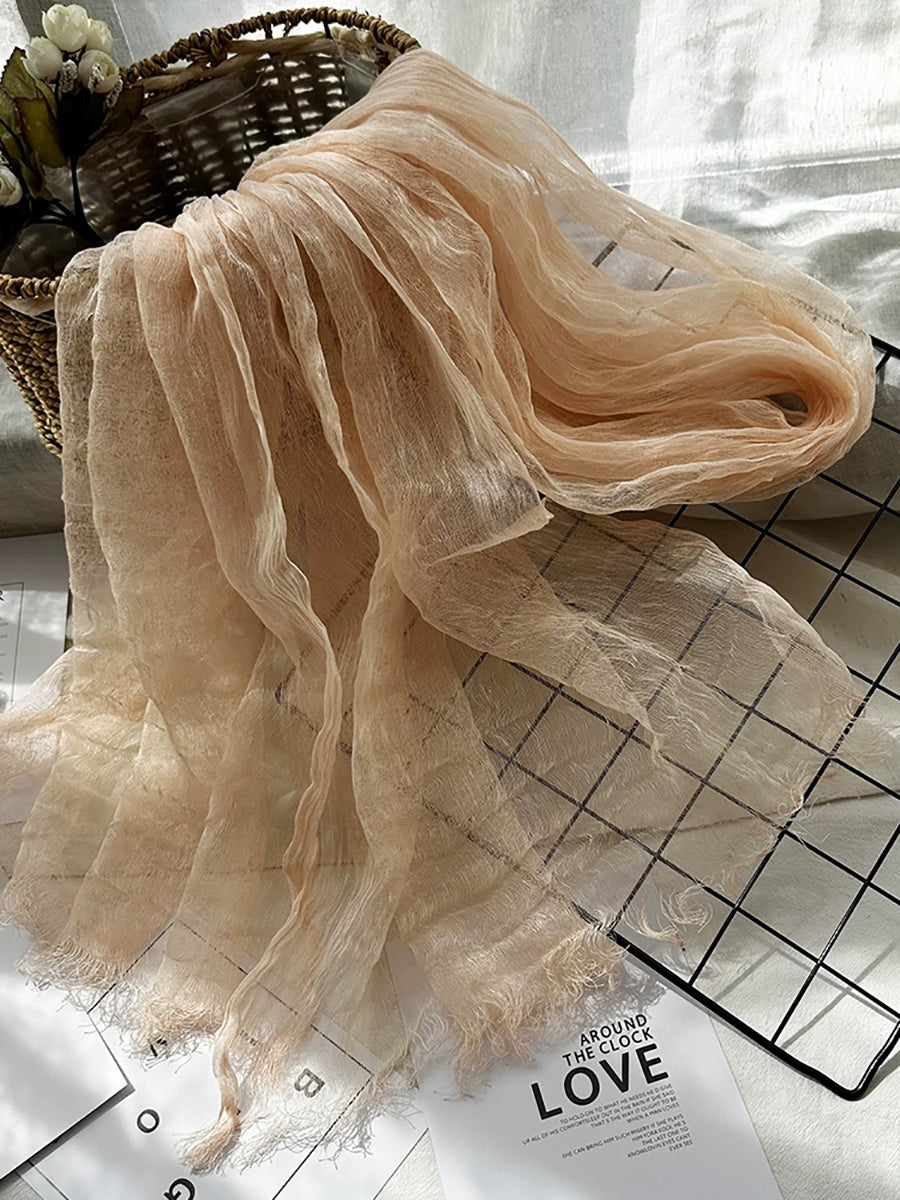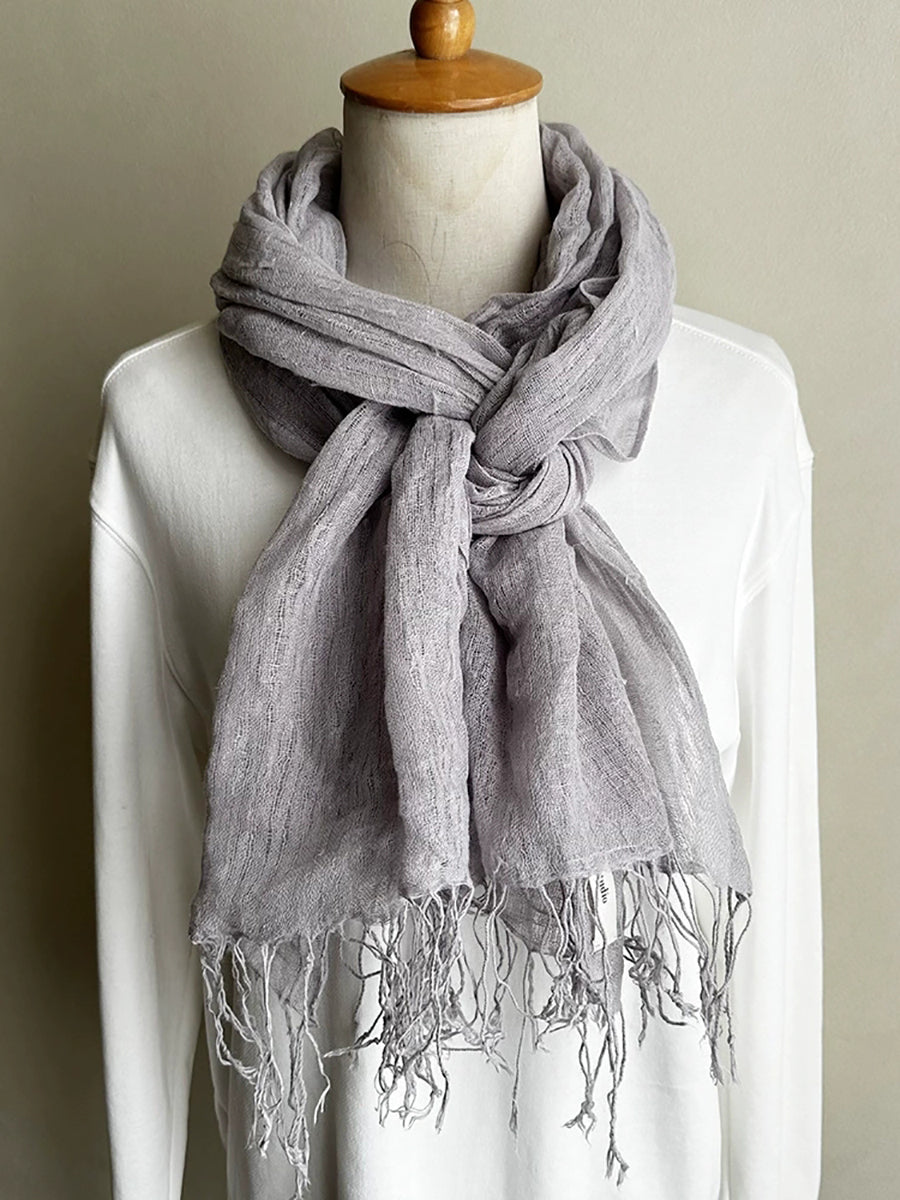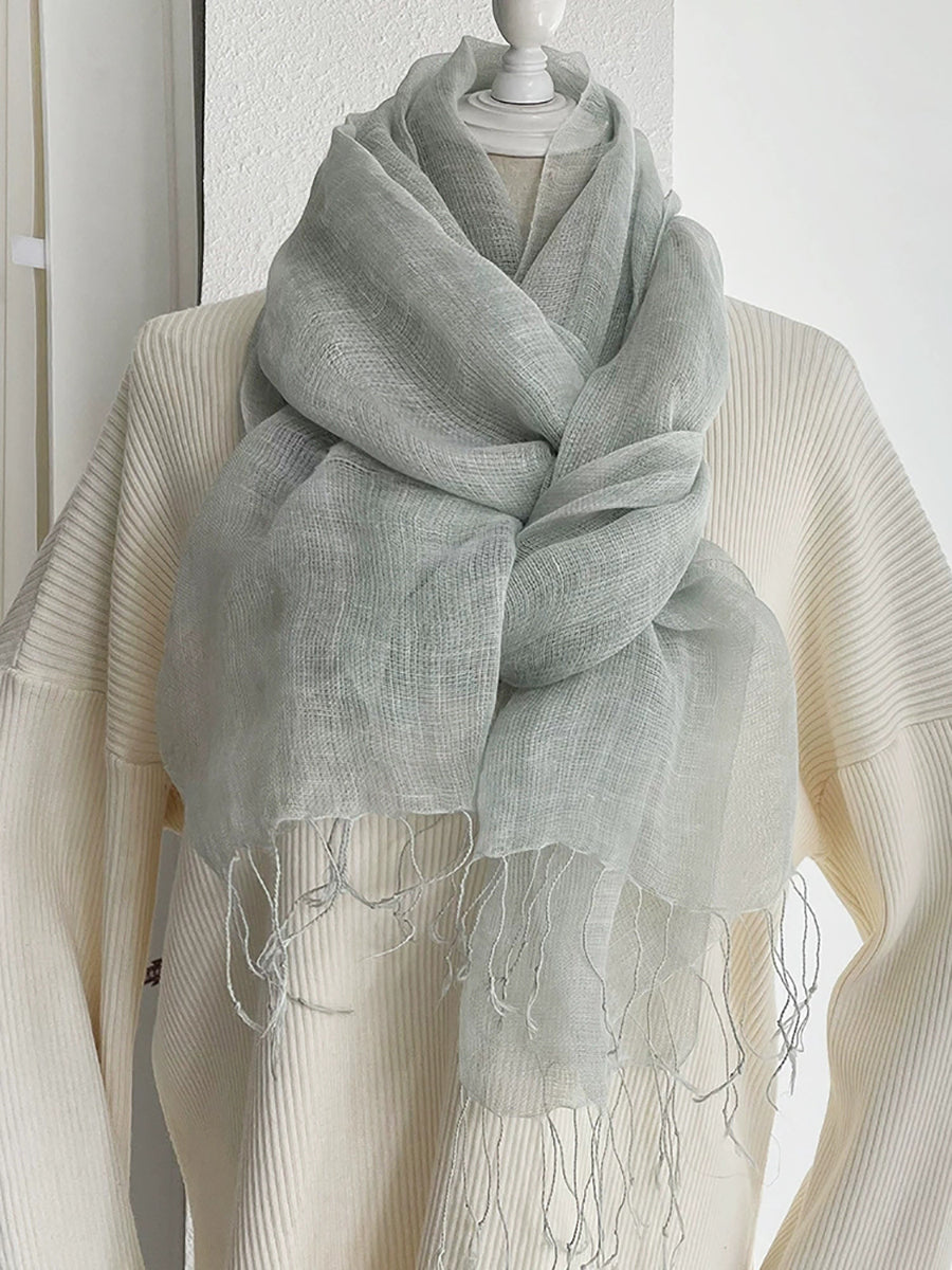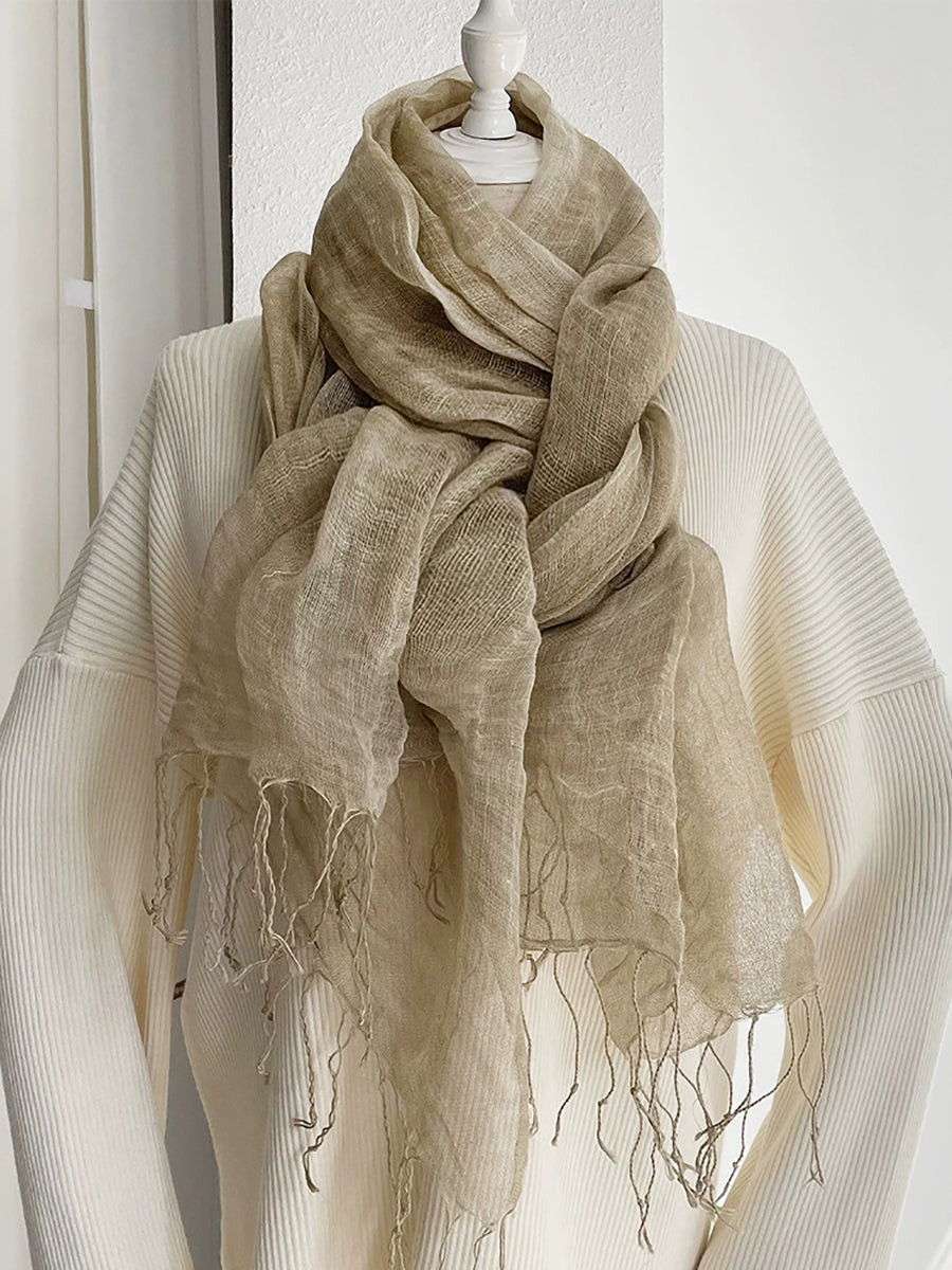 Women Thin Pure Color Tassel Shawl Scarf