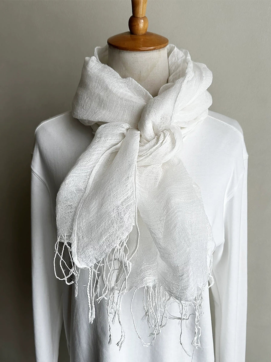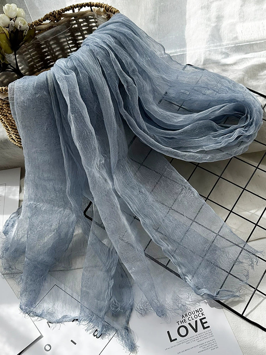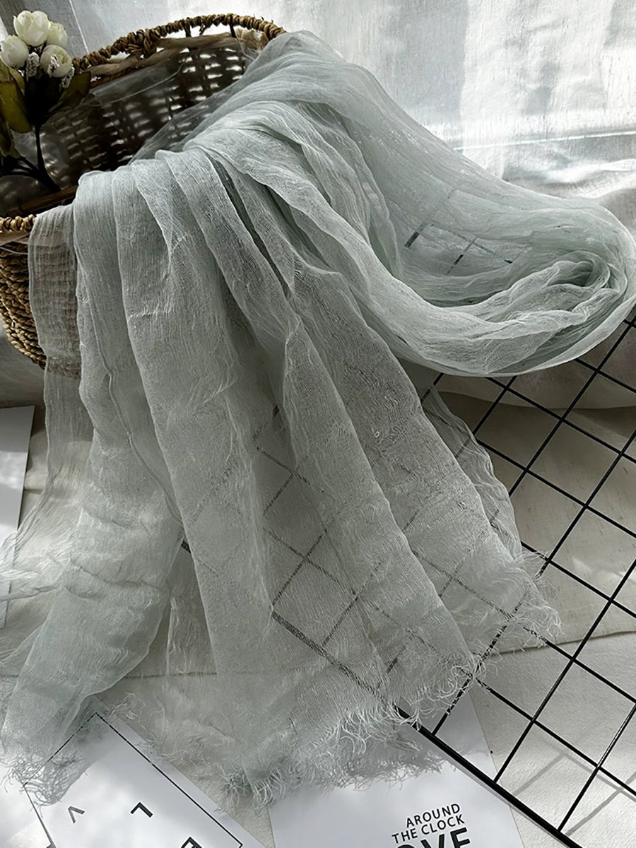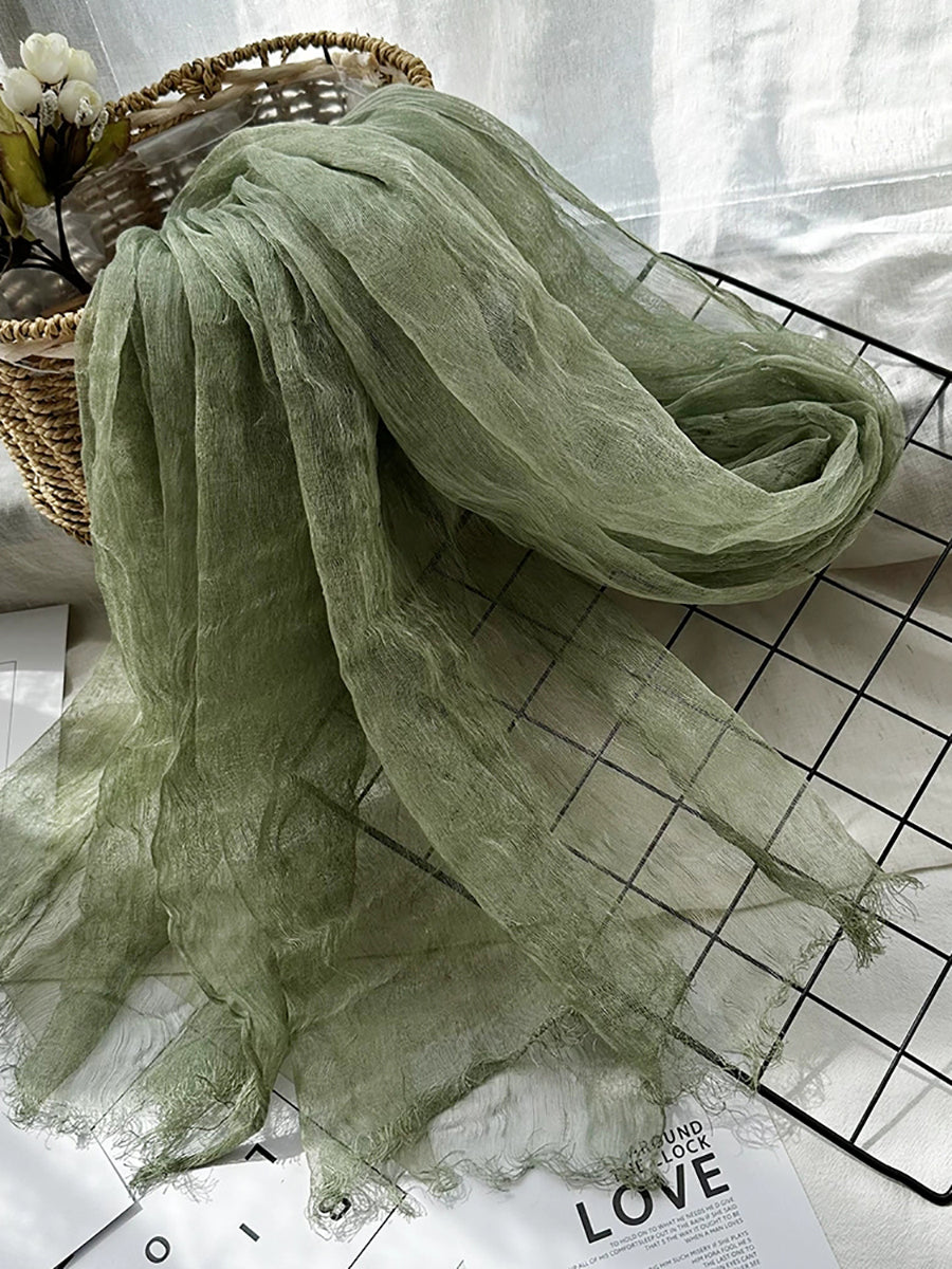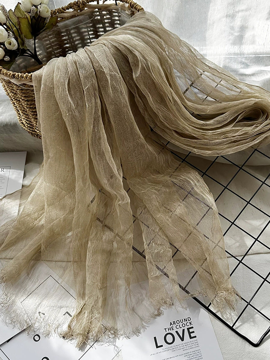 Women Thin Pure Color Tassel Shawl Scarf