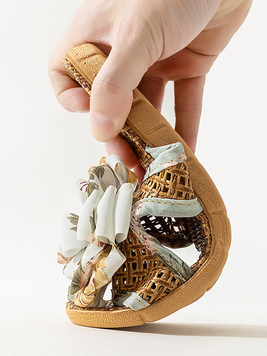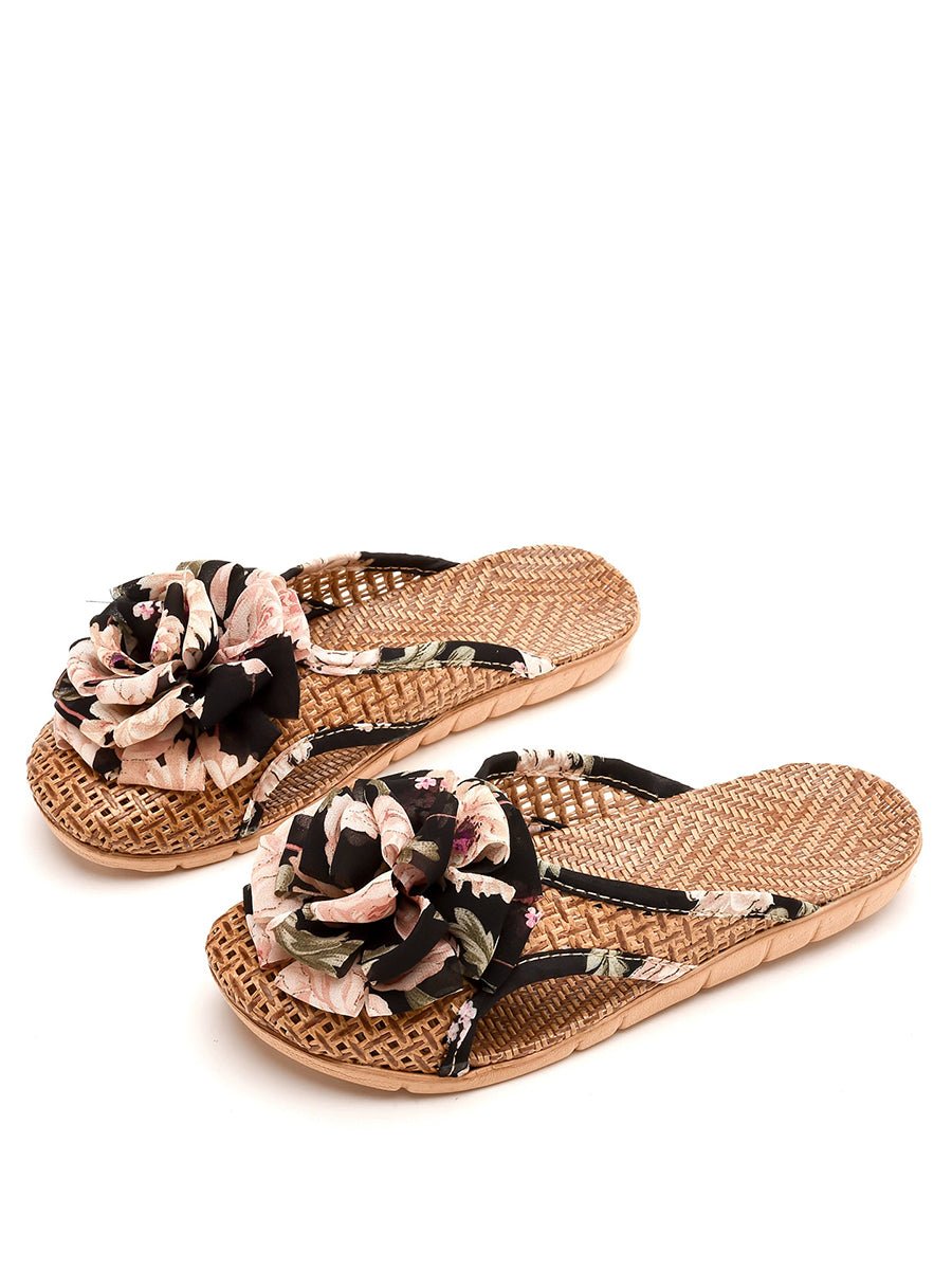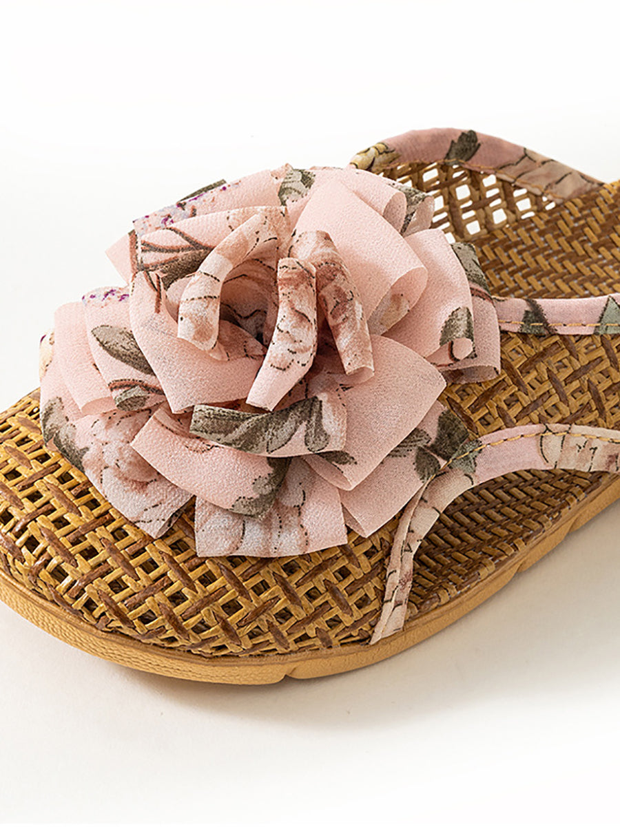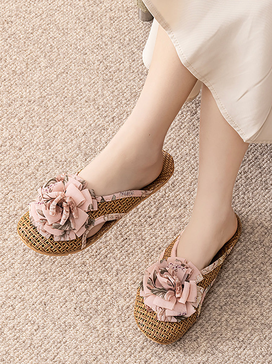 Women Summer Artsy Straw Weave Flower Slippers