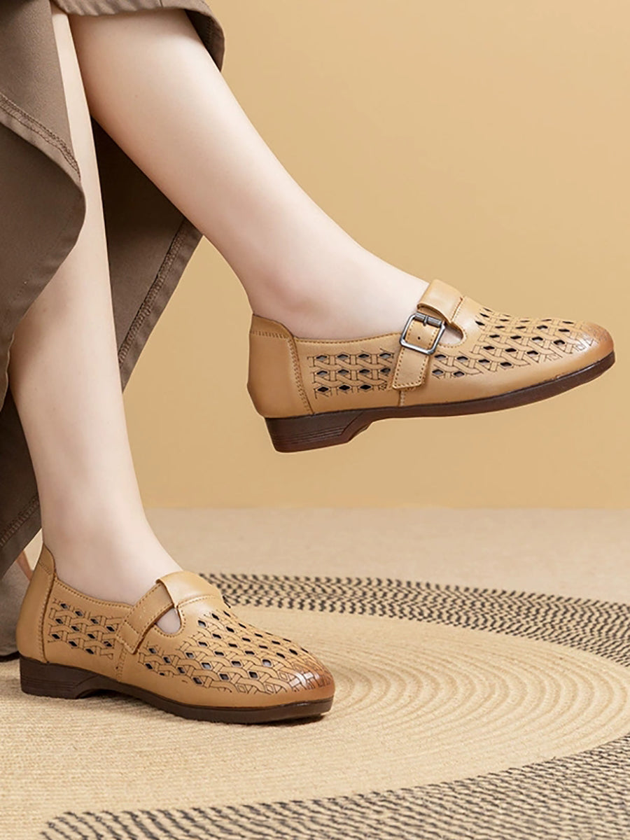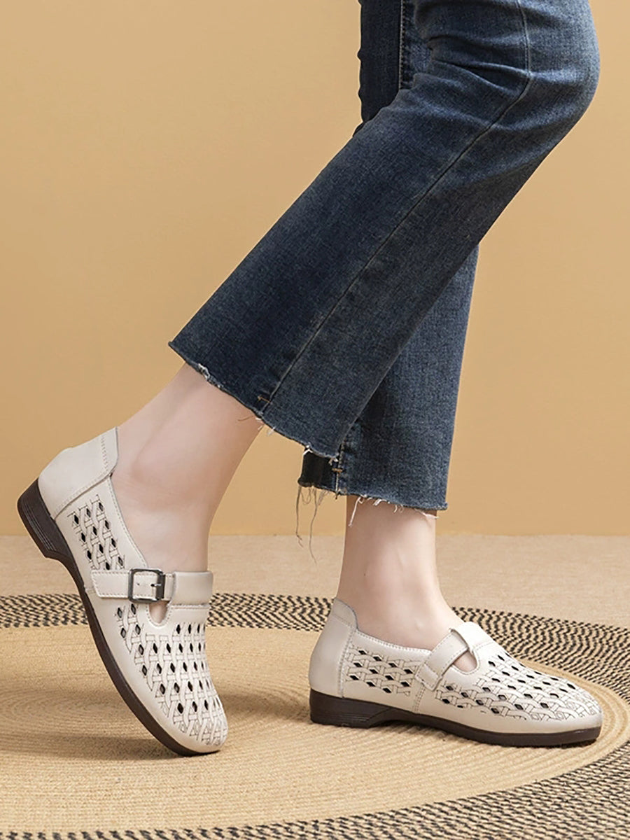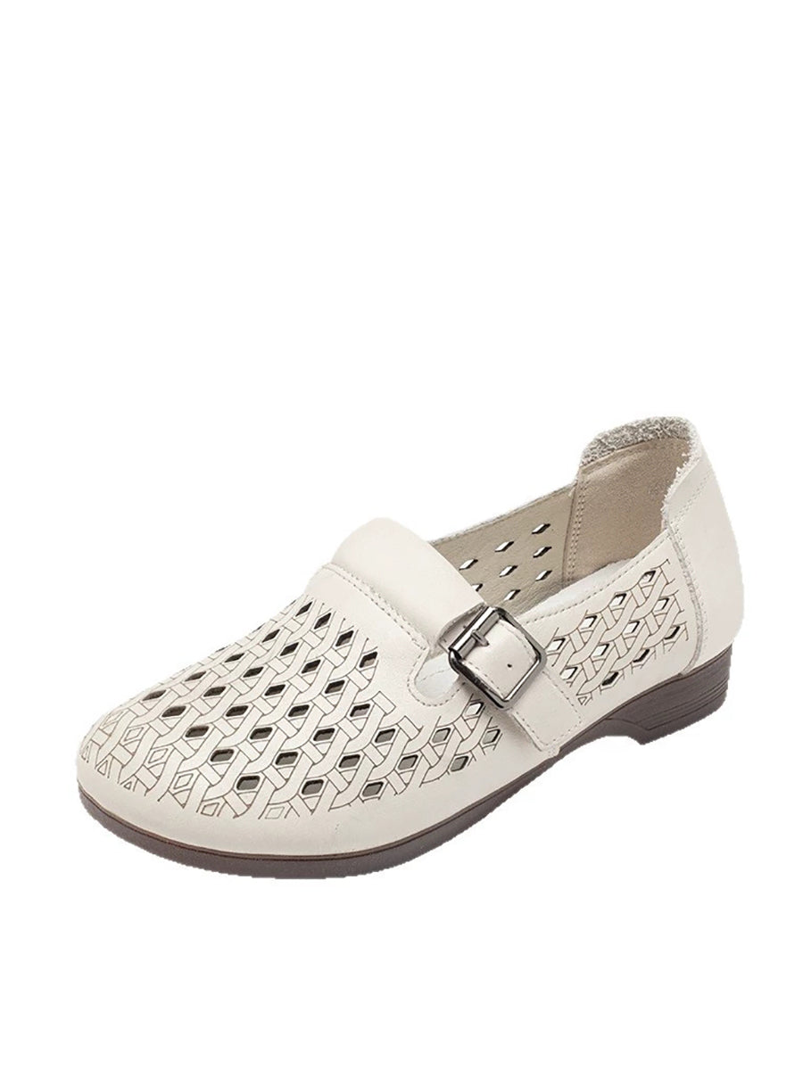 Women Summer Genuine Leather Hollow Out Shoes