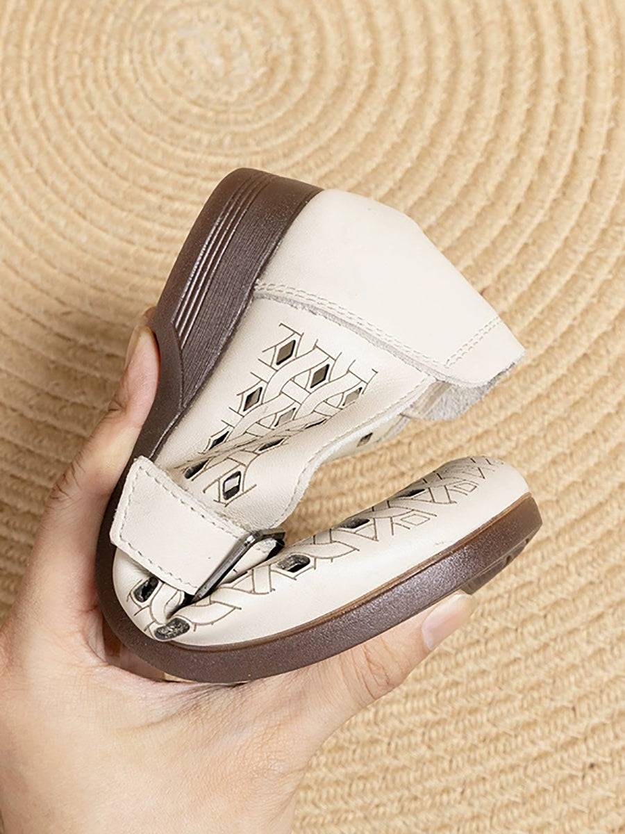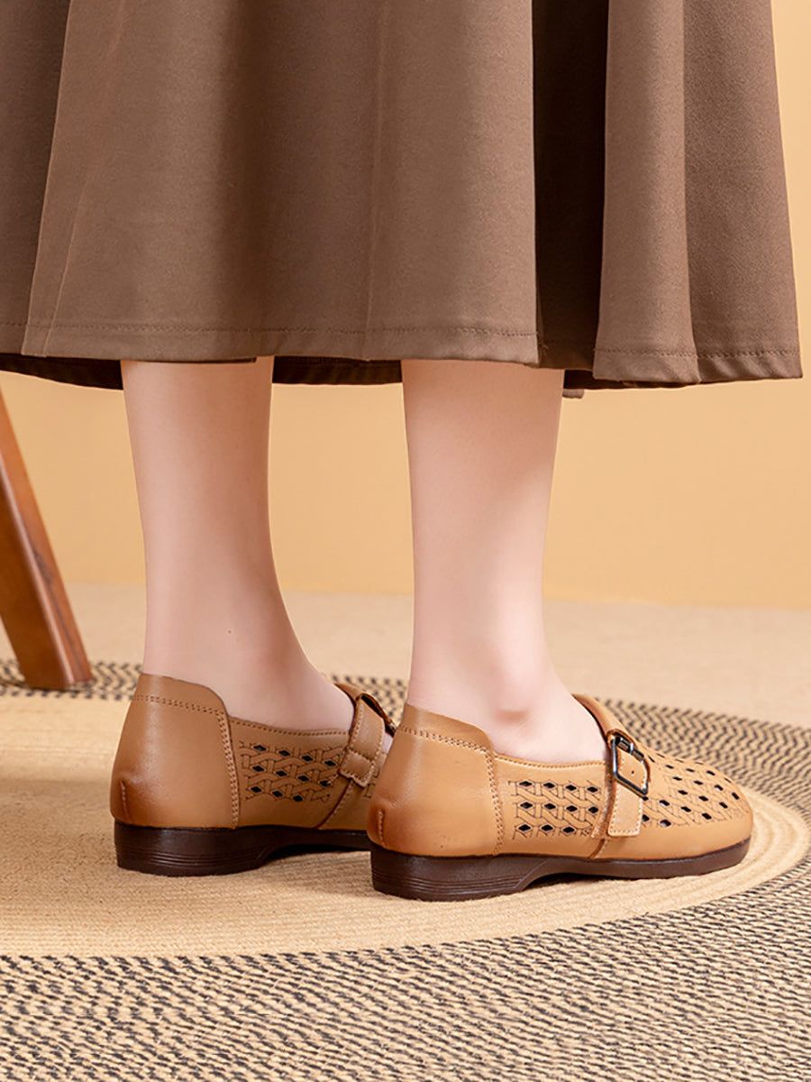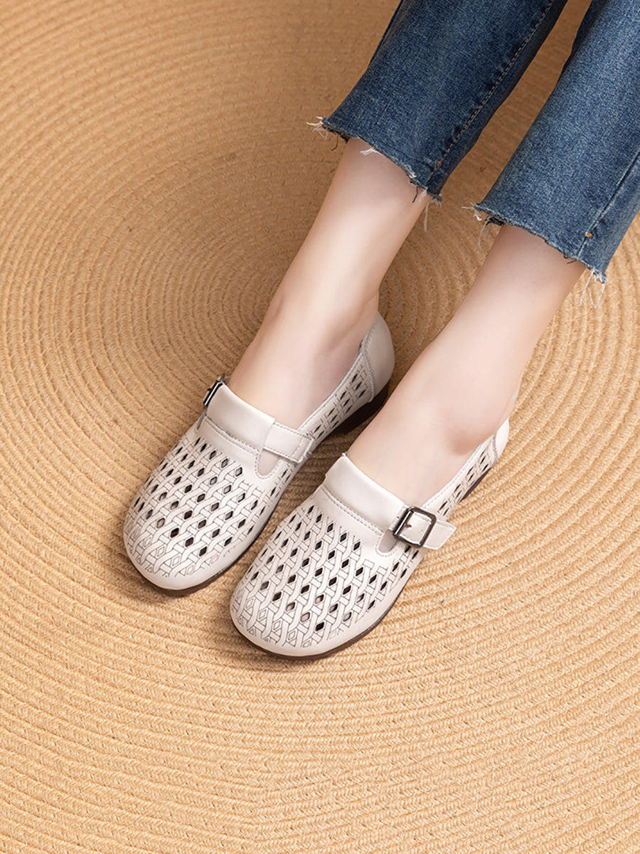 Women Summer Genuine Leather Hollow Out Shoes