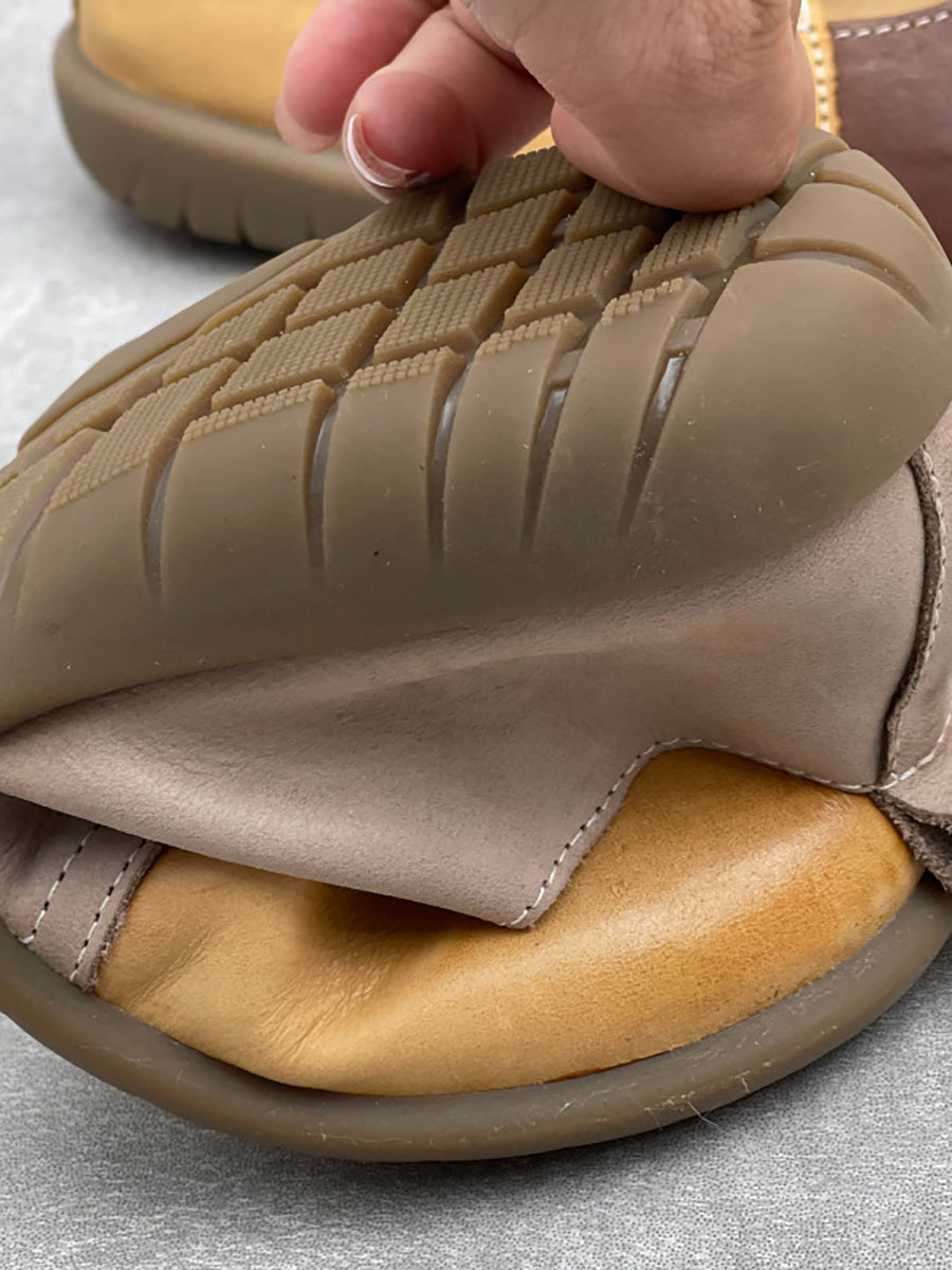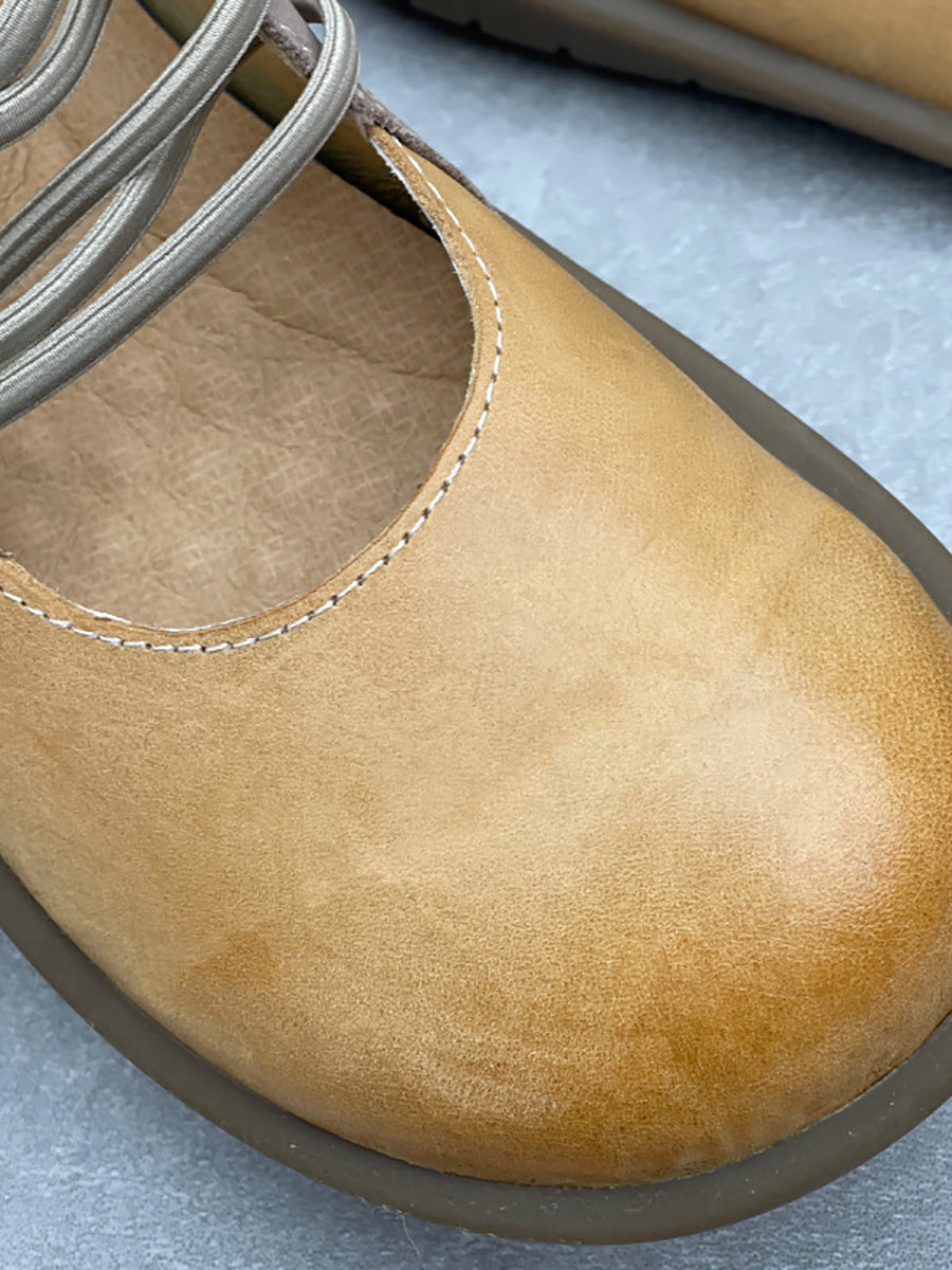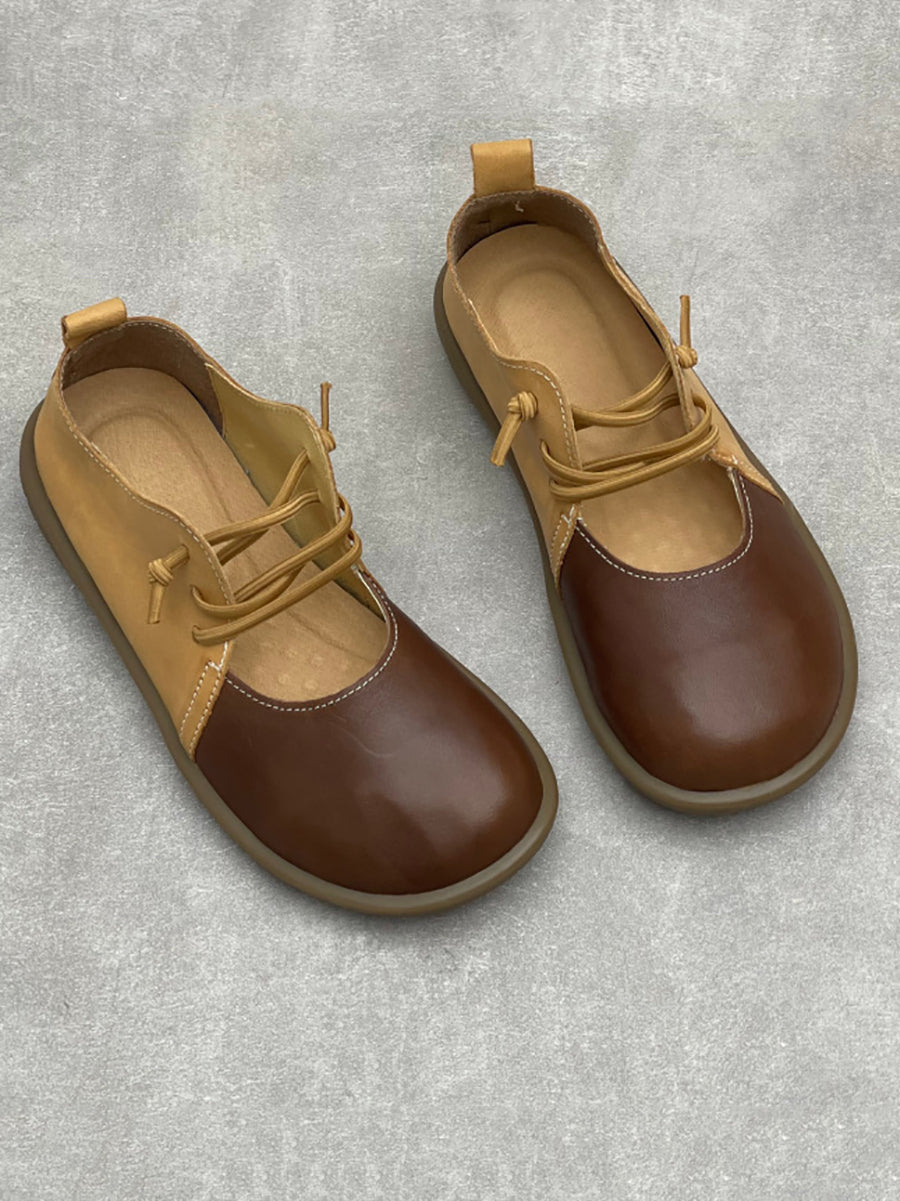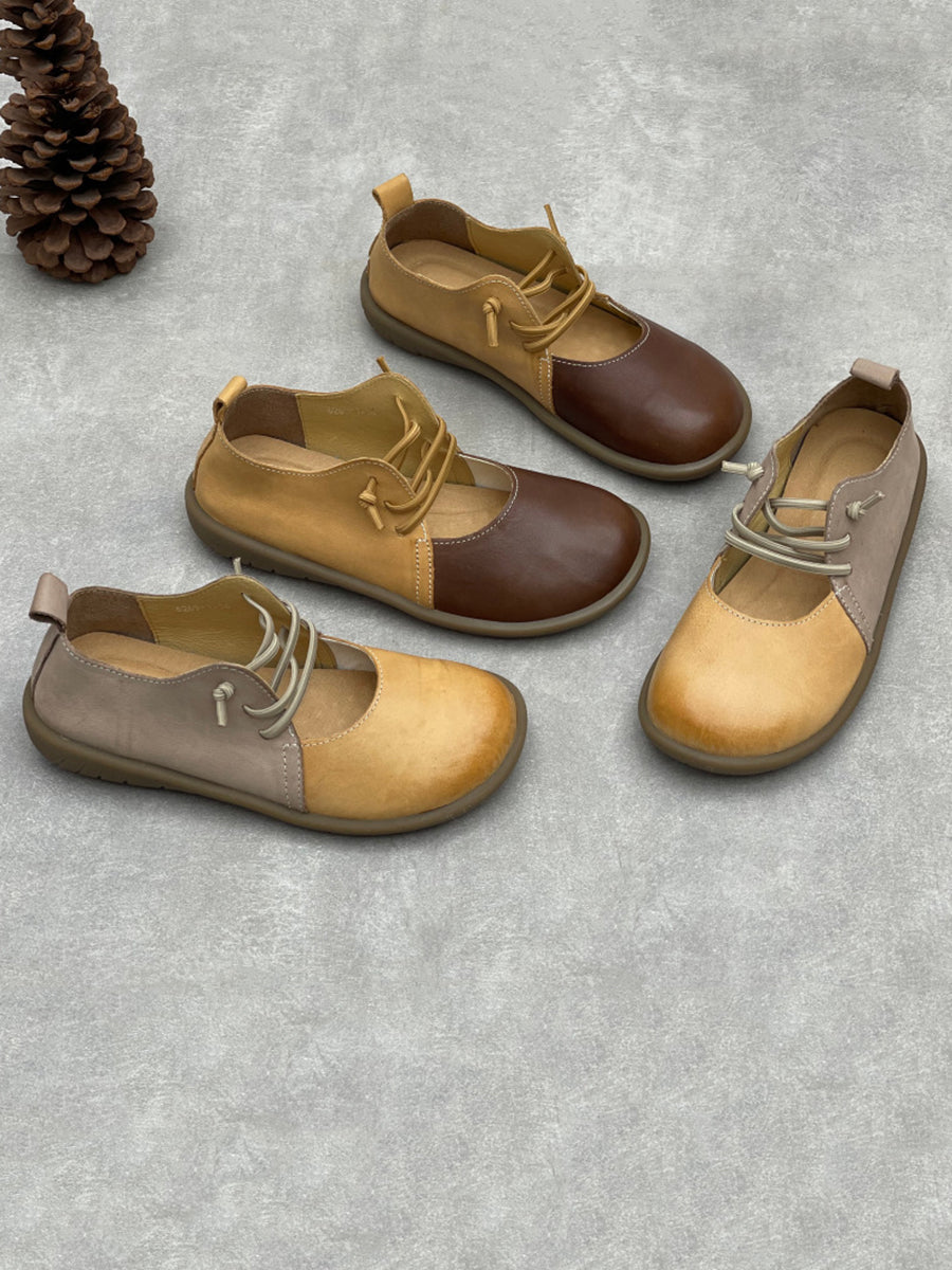 Women Casual Colorblock Leather Flat Shoes