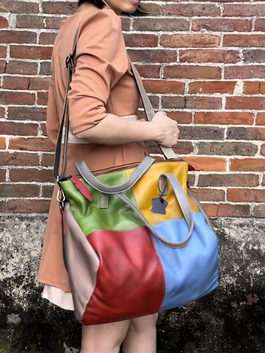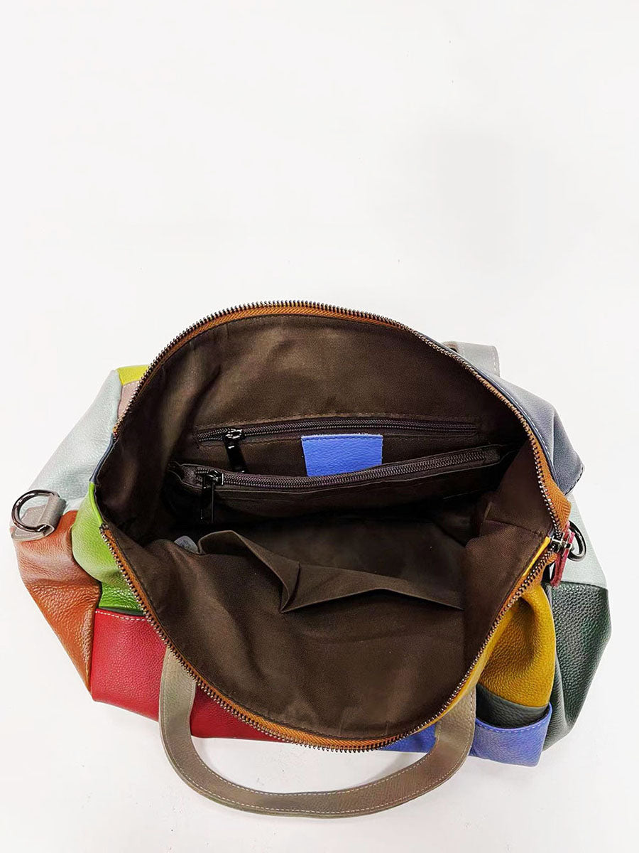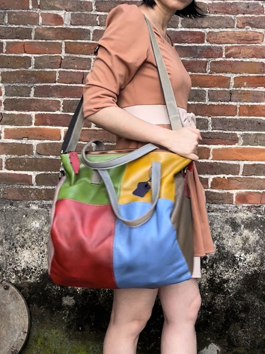 Retro Leather Colorblock Spliced Large Capacity Crossbody Bag