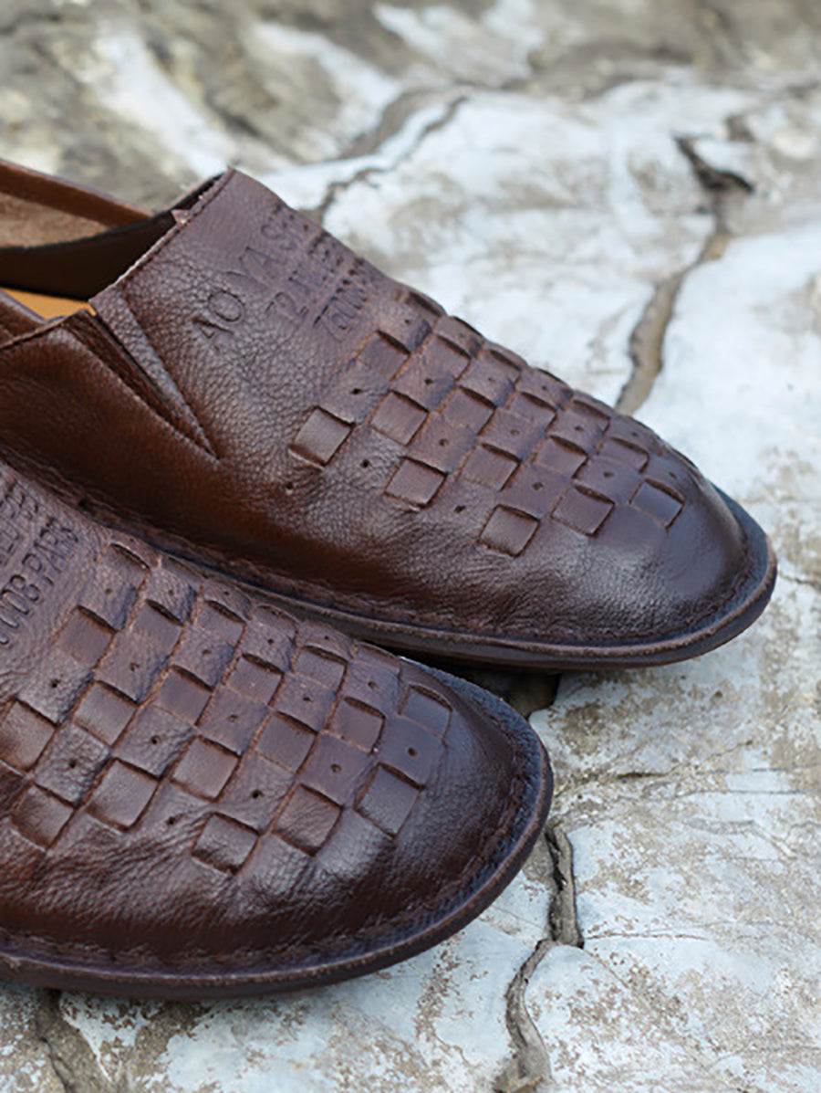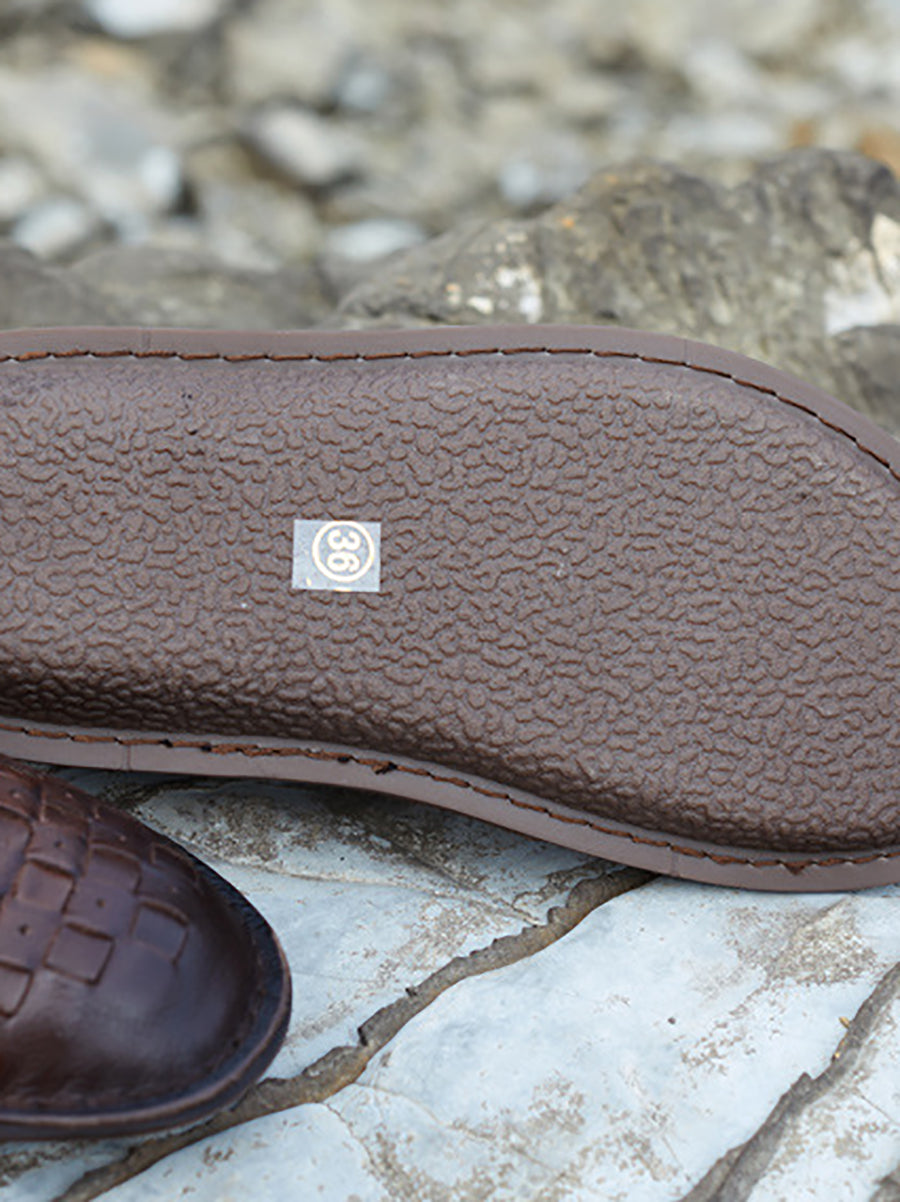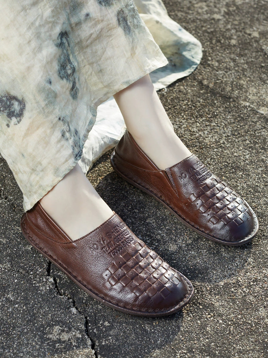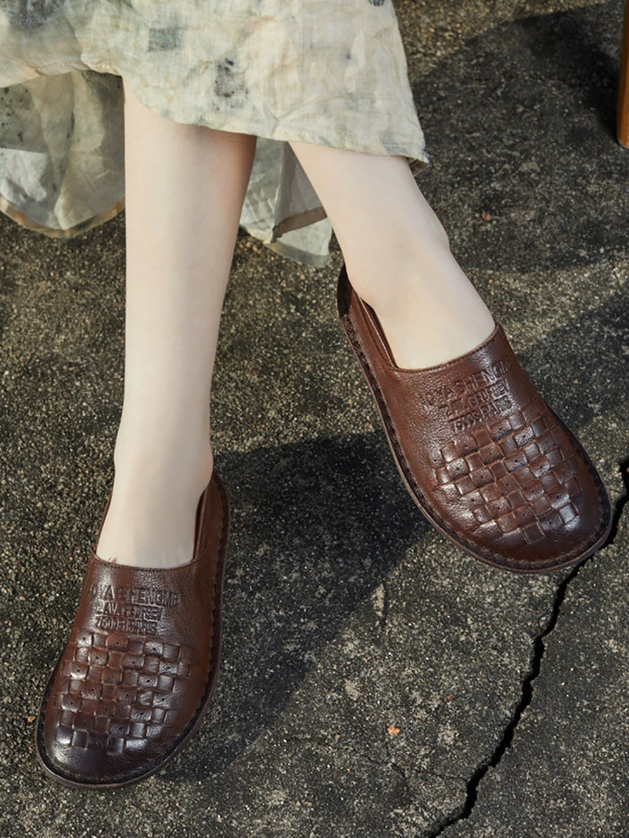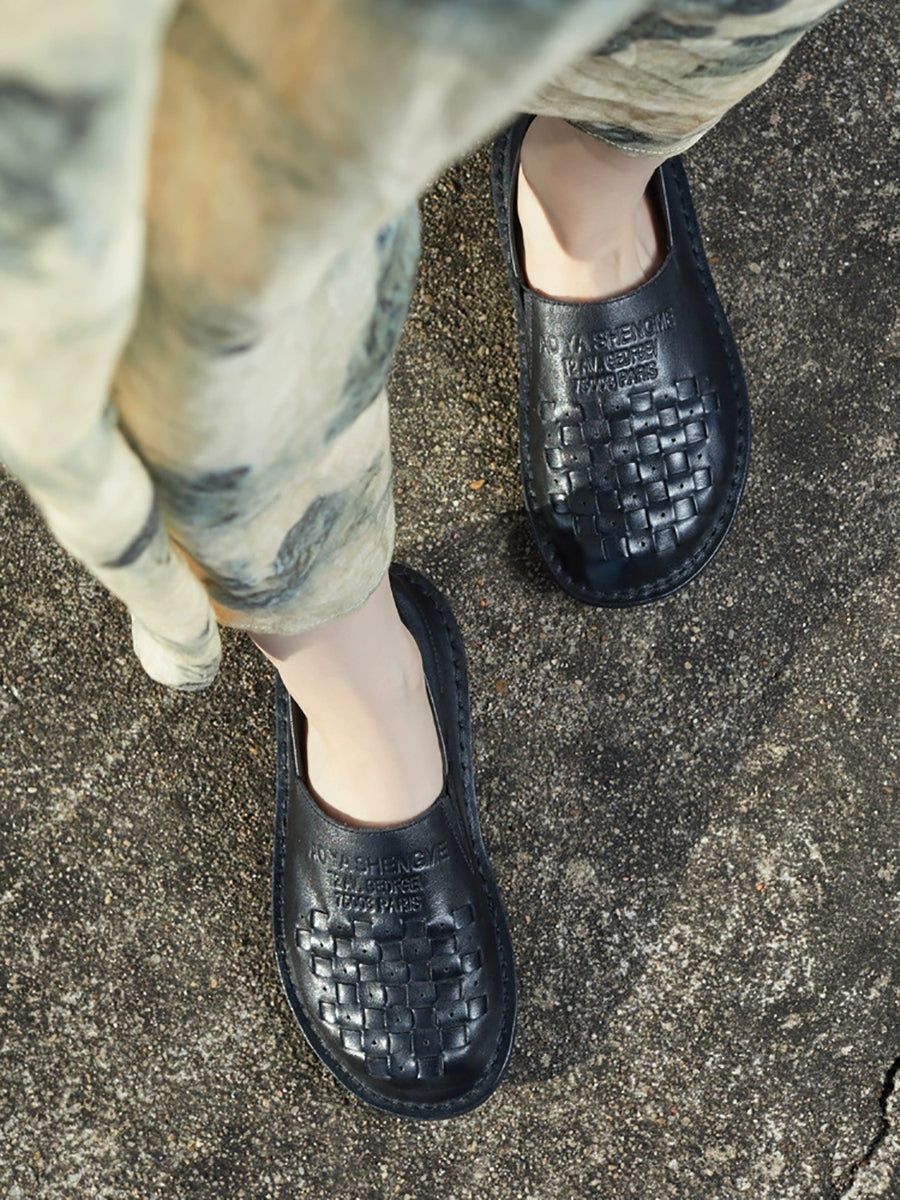 Women Summer Genuine Leather Weave Flat Shoes