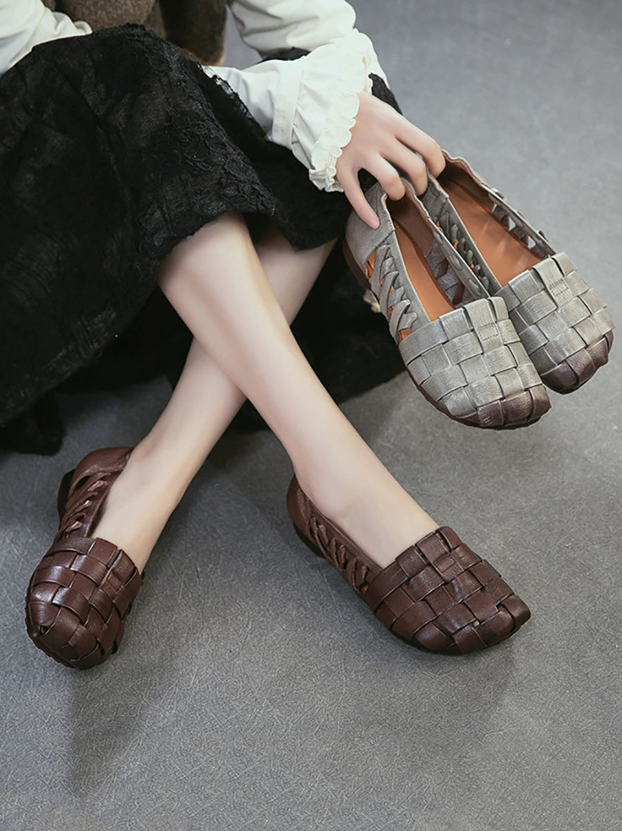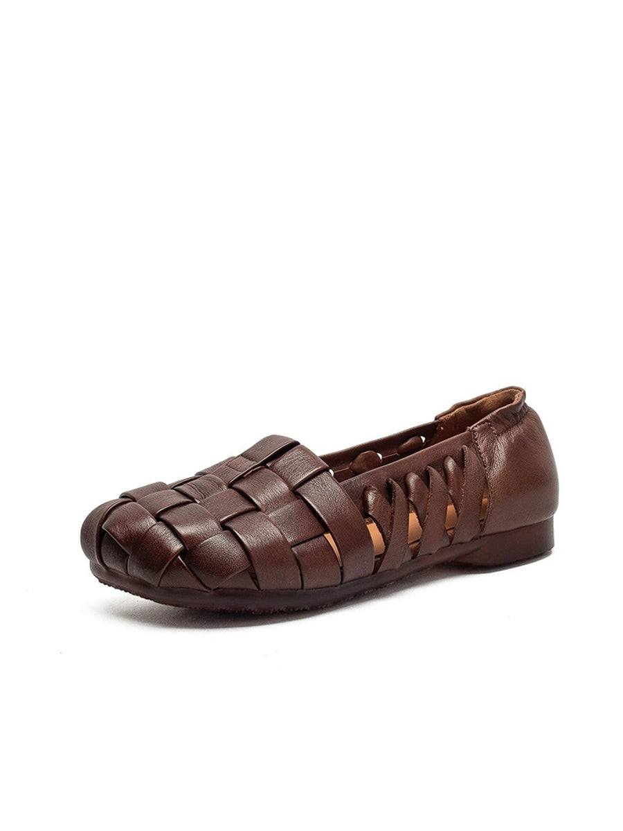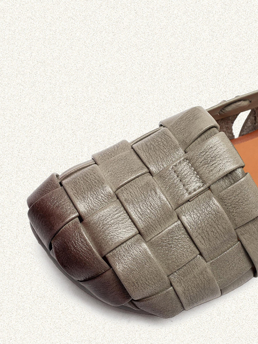 Women Casual Genuine Leather Weave Low Heel Sandals