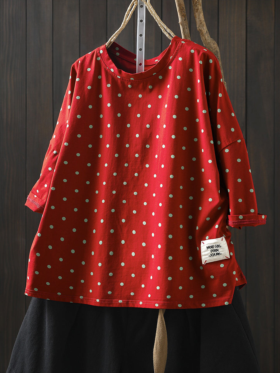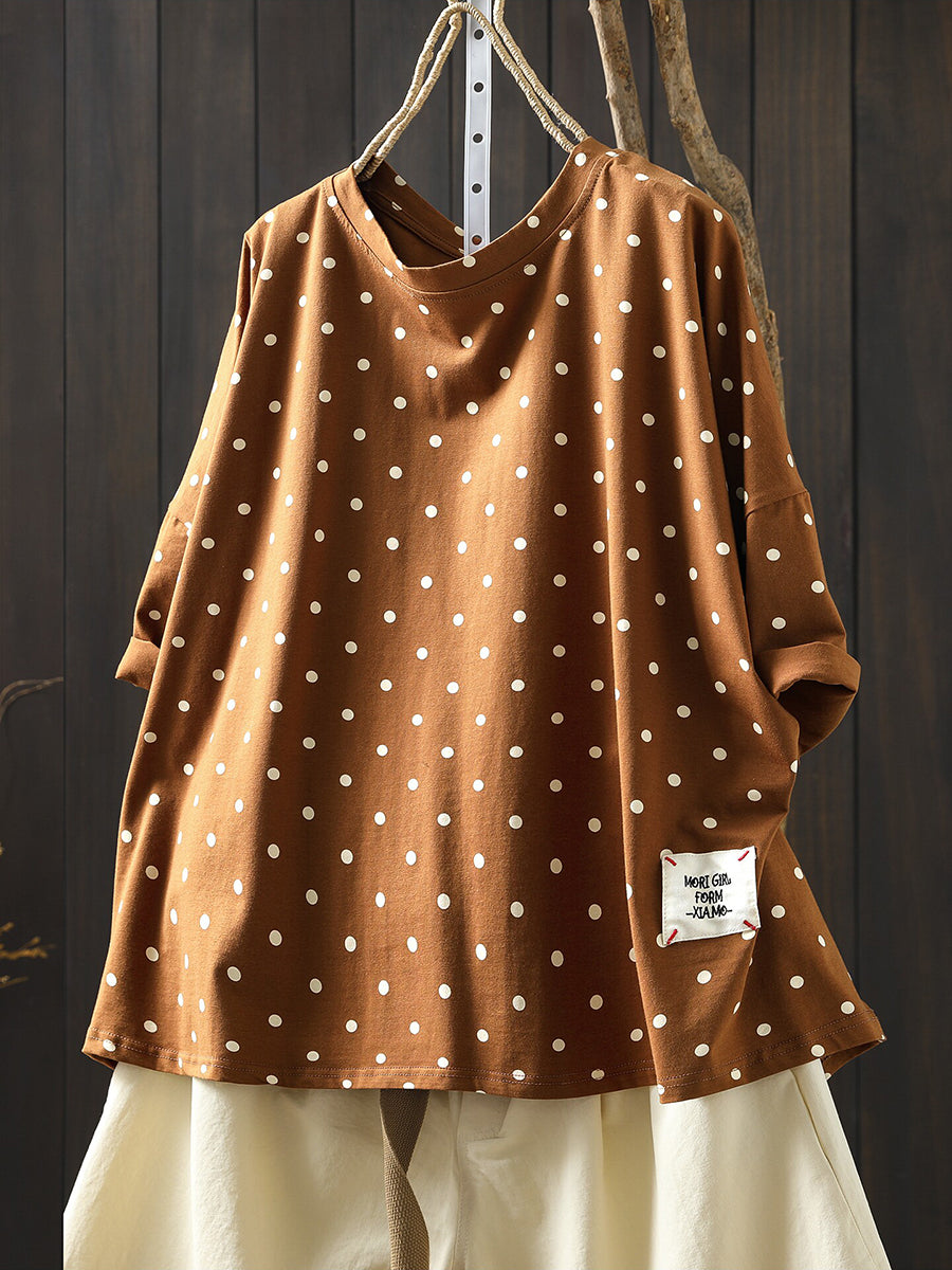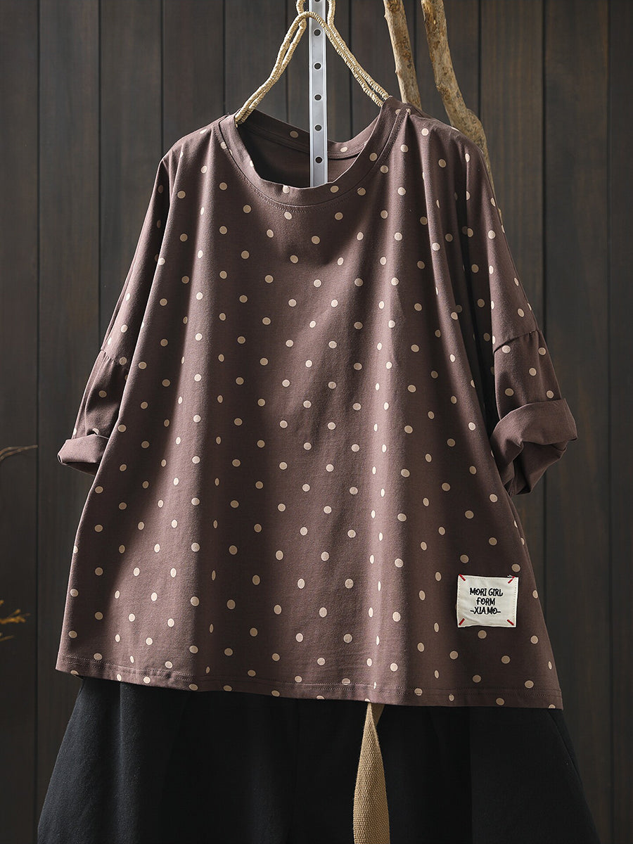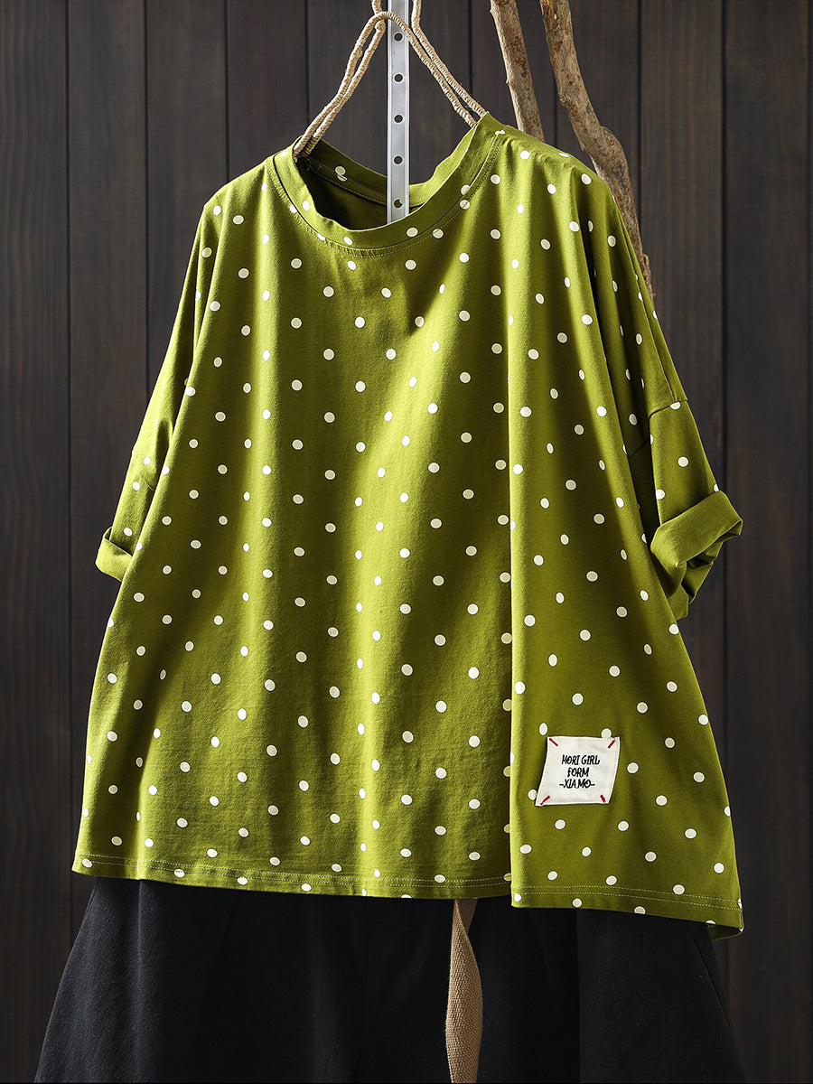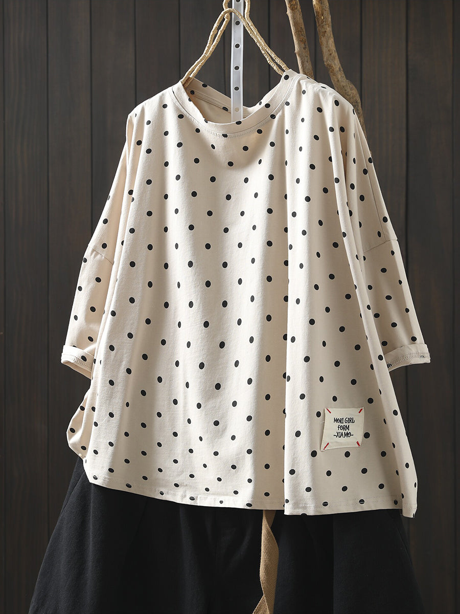 Women Summer Casual Dot Cotton O-Neck Blouse