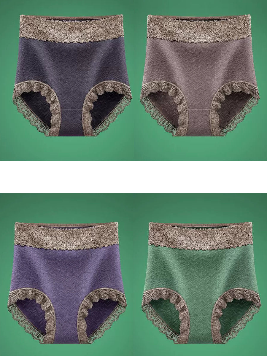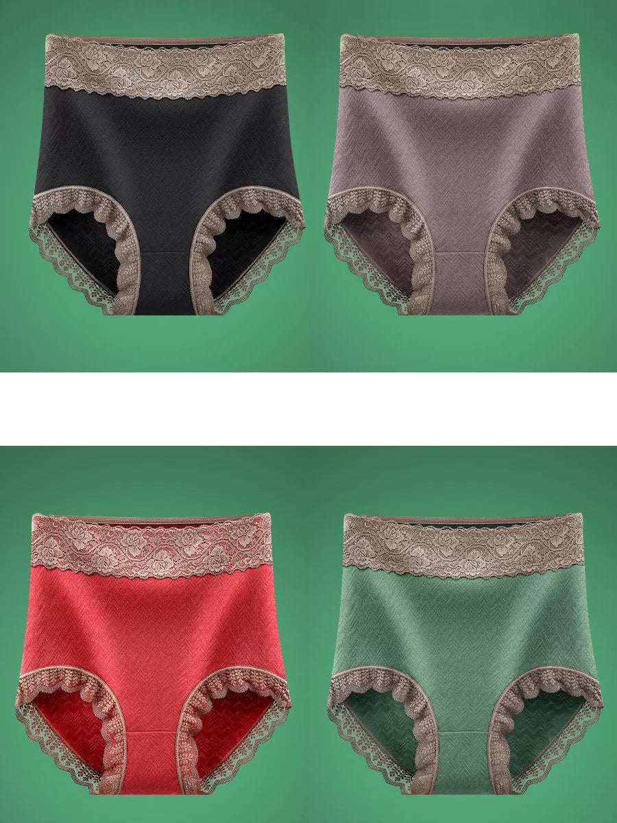 4 Pieces Women Artsy Lace Spliced High Waist Underwear
