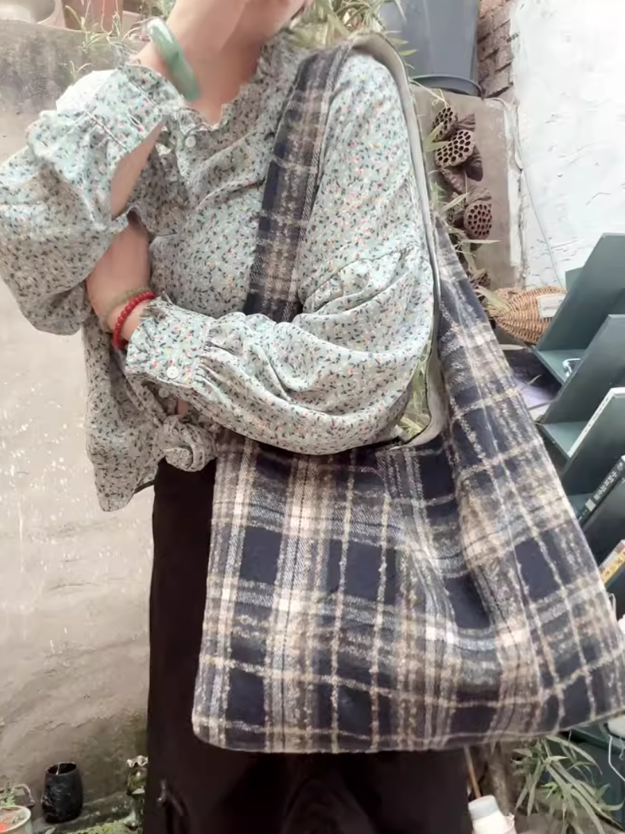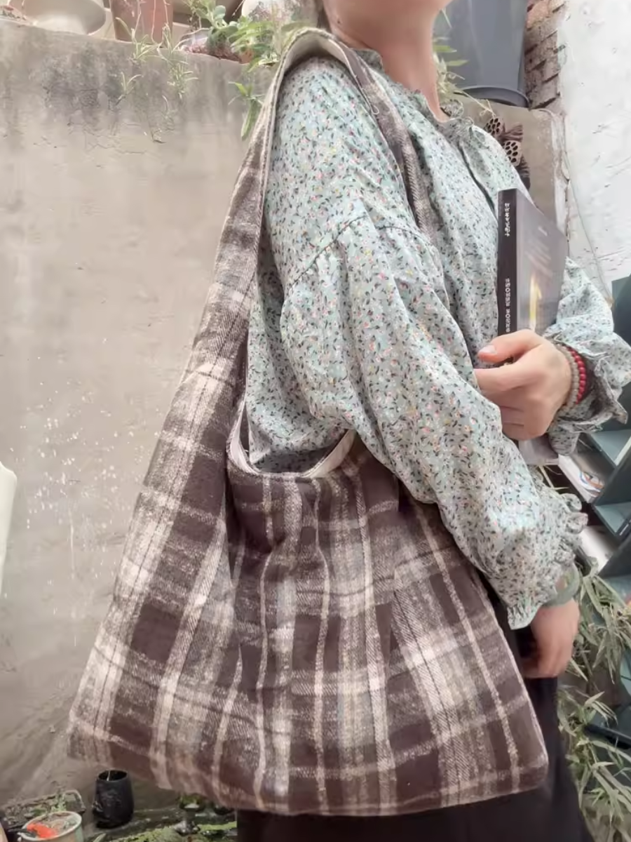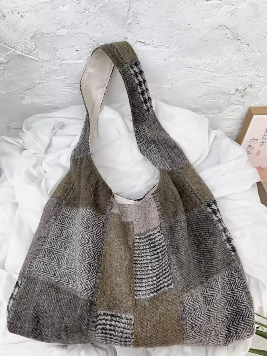 Retro Spliced Plaid Shoulder Bag
