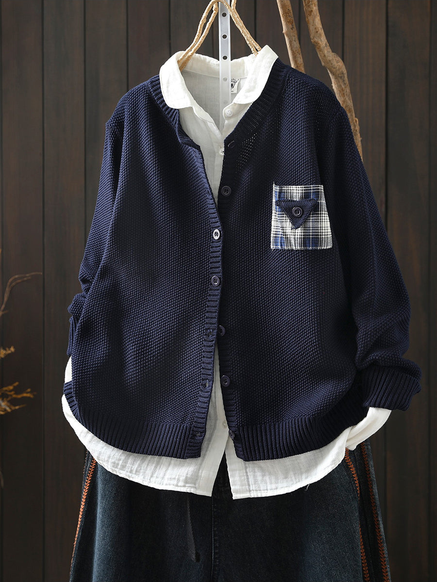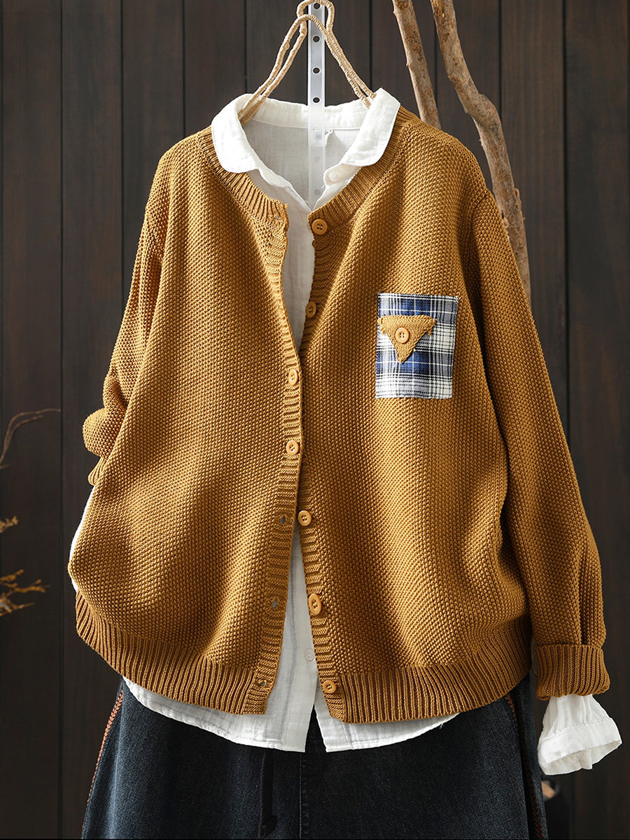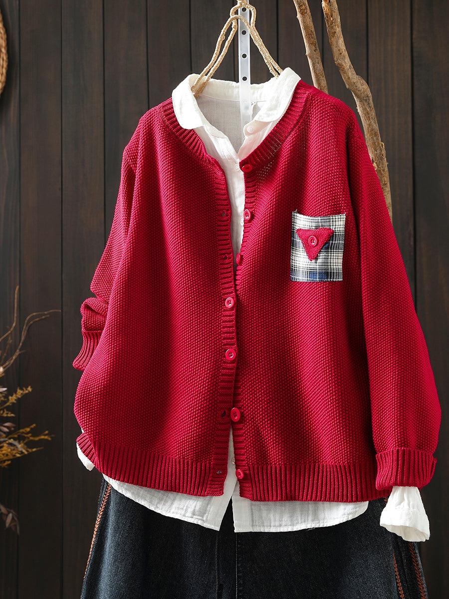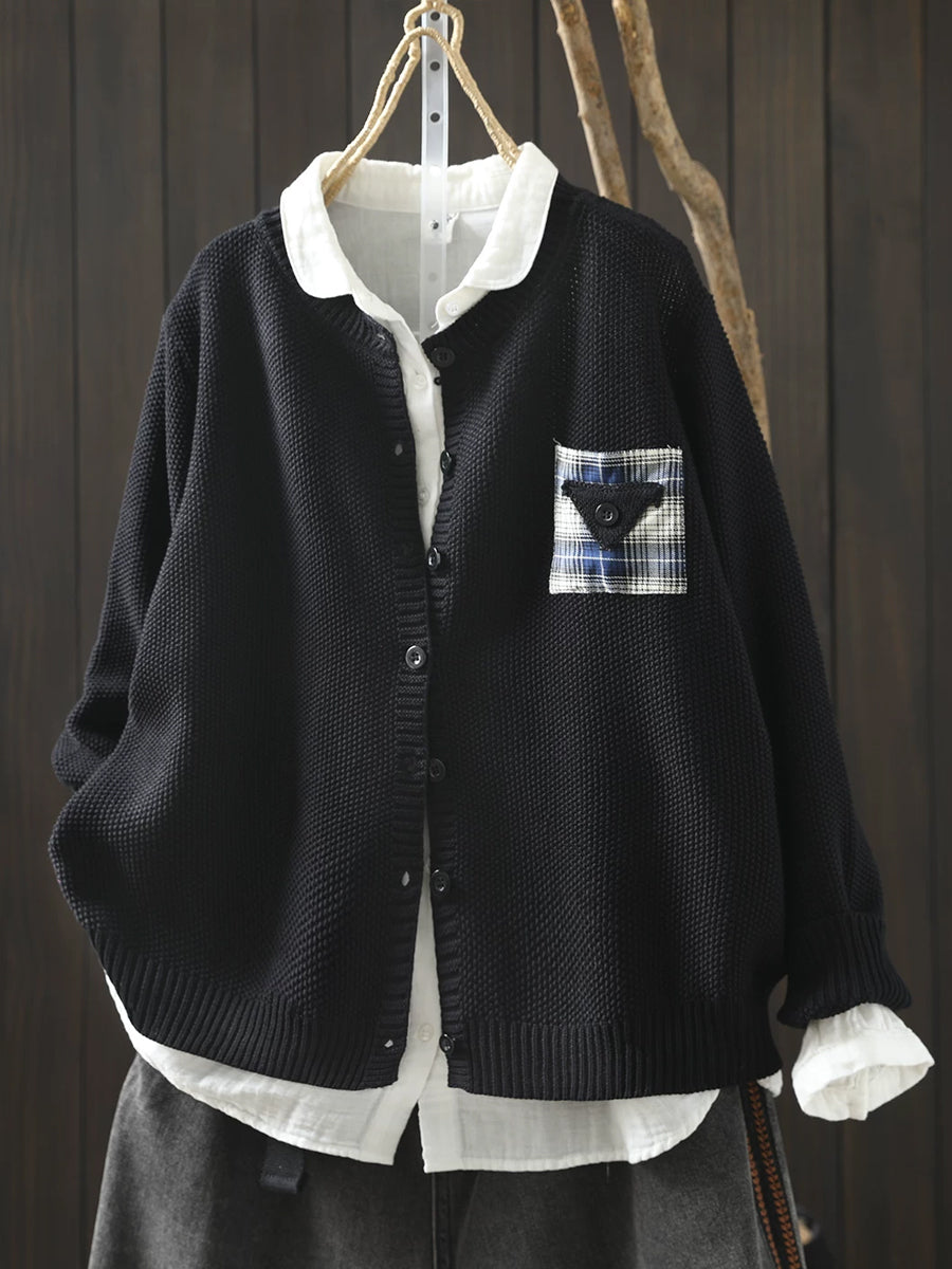 Women Artsy Spring Patch O-Neck Cardigan Sweater