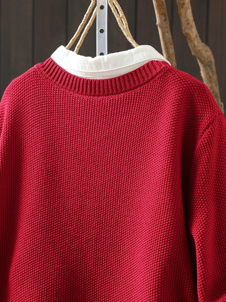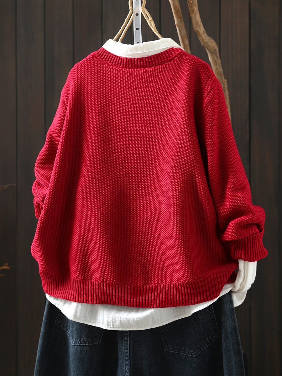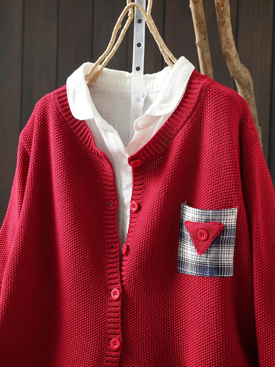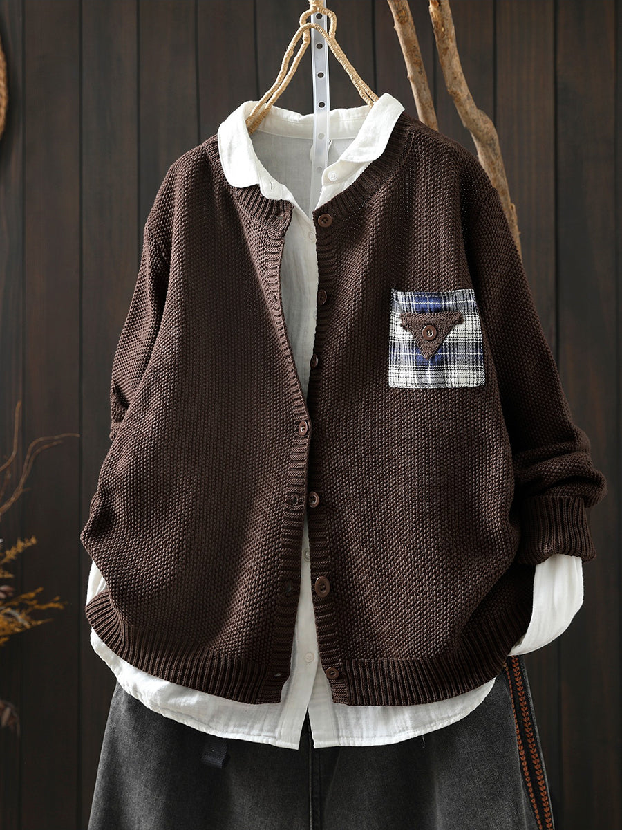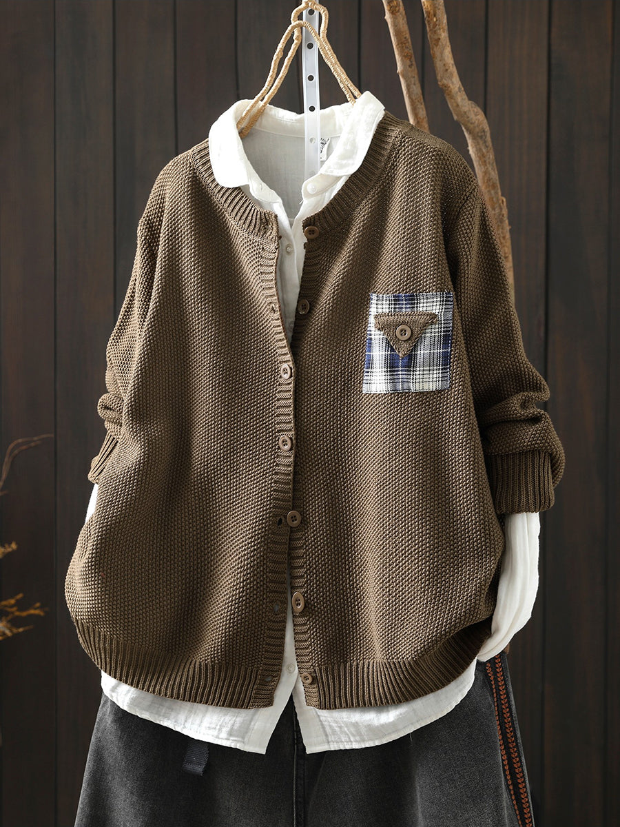 Women Artsy Spring Patch O-Neck Cardigan Sweater